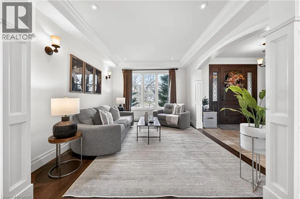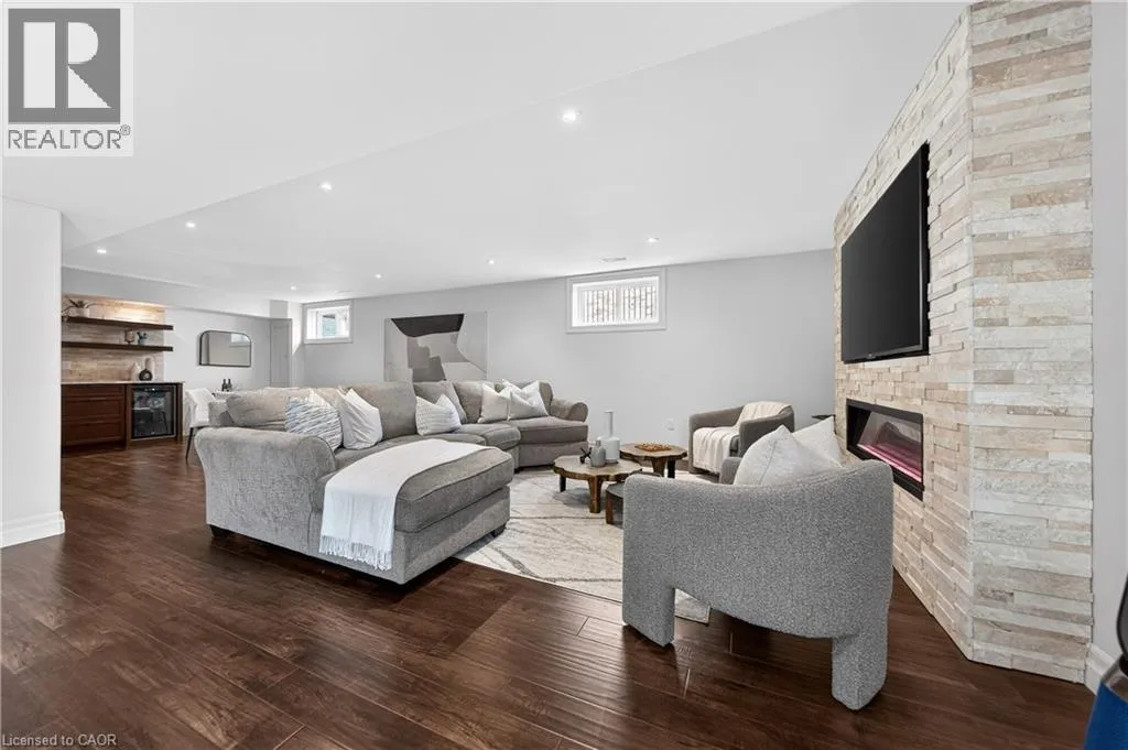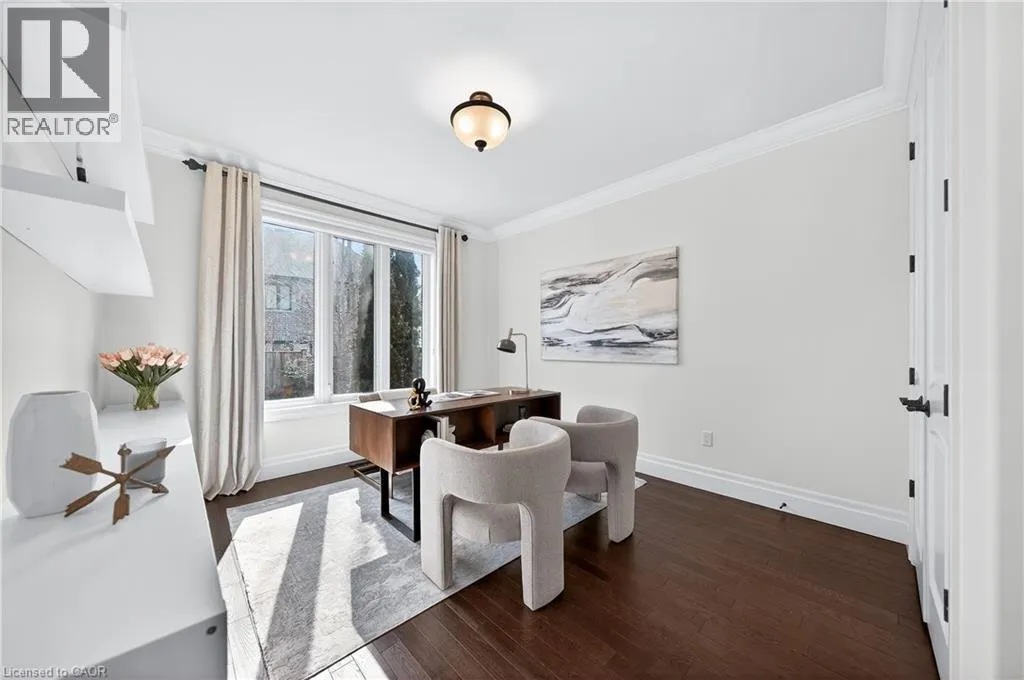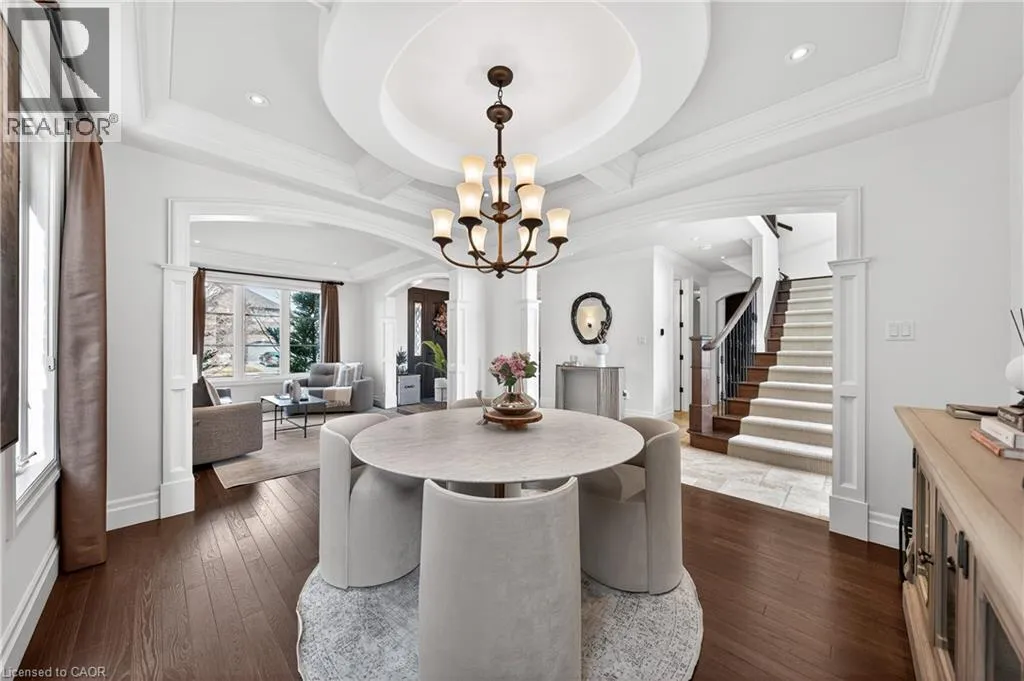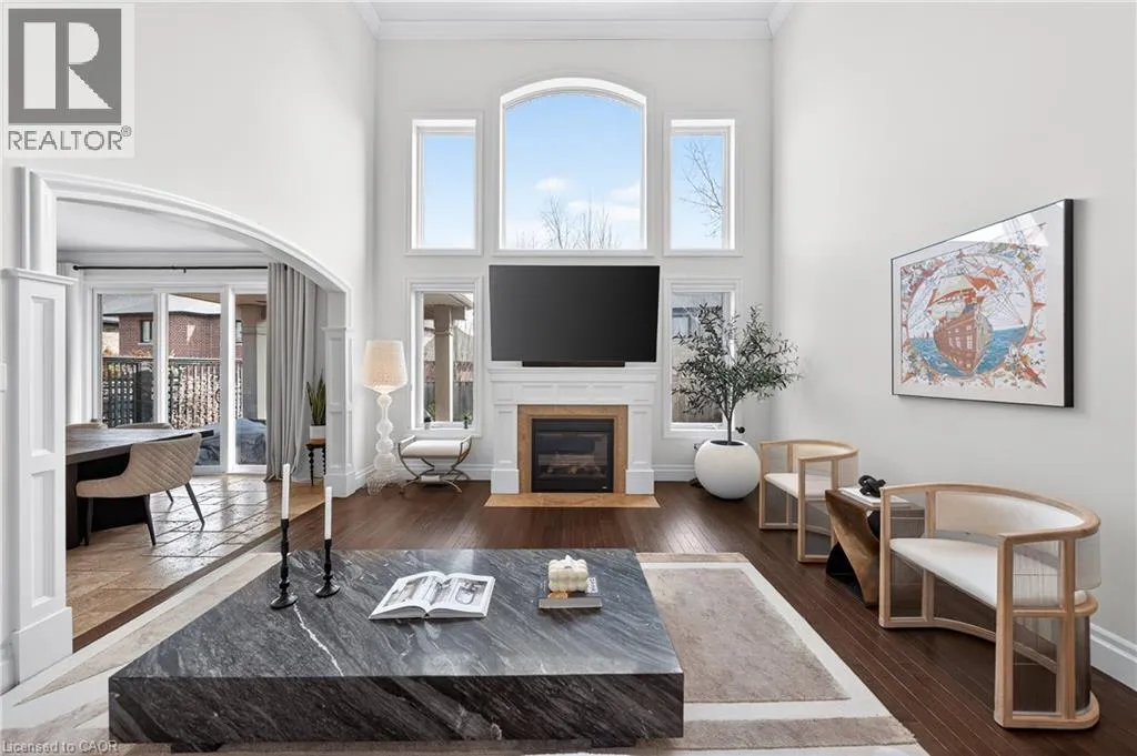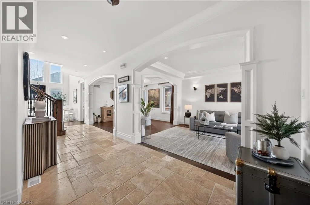 MILLENNIUM BLVD TO OAK PARK DRIVE, THEN DEERFOOT TRAIL. This is your Carriage Crossing dream home. Welcome to 325 Deerfoot Trail, located in one of Waterlooâs most sought-after communities. This custom Klondike-built home offers 5,300+ SF of beautifully finished living space, with 4+1 bedrms & 4 bathrms, thoughtfully designed with quality craftsmanship, timeless finishes, & functional family living. Step inside the grand entry opening to formal living & dining rms with coffered ceilings & detailed millwork. The home is anchored by a stunning 2-storey great rm with gas fireplace & oversized windows flooding the space with natural light. The well-appointed Chervin kitchen features a lrg centre island, granite counters, premium appliances, under-cabinet lighting, backsplash, & a bright breakfast area with walkout to the backyard & covered back porch. The main flr also offers a private office/potential 6th bedrm, mudrm/laundry rm, & powder rm. Upstairs offers 4 spacious bedrms, including an expansive primary retreat with tray ceiling, feature wall with linear electric fireplace, sitting area, walk-in closet with built-ins, additional dual closets, & a 5-pce ensuite with dual vanities, tiled glass shower, & jacuzzi tub. 3 additional sizable bedrms & a 5-pce main bathrm complete the upper level. The fully finished lower level features a lrg rec rm with electric fireplace, additional bedrm, 3-pce bathrm, wet bar (in-law potential), & ample storage. Hardwood & natural stone flring, custom ceiling treatments, crown moulding, curated millwork, & custom window coverings throughout. Set on a professionally landscaped lot with interlocking driveway, covered back porch, expansive patio, & fully fenced private backyard with mature trees, hardscaping, & perennial gardens. Located just mins to top-rated schools, U of W & Wilfrid Laurier University, RIM Park, Grey Silo Golf Club, trails, St. Jacobs Market, & major commuter routes. A rare opportunity to own a beautifully finished home in one of Waterlooâs most desirable neighbourhoods. (id:27476)