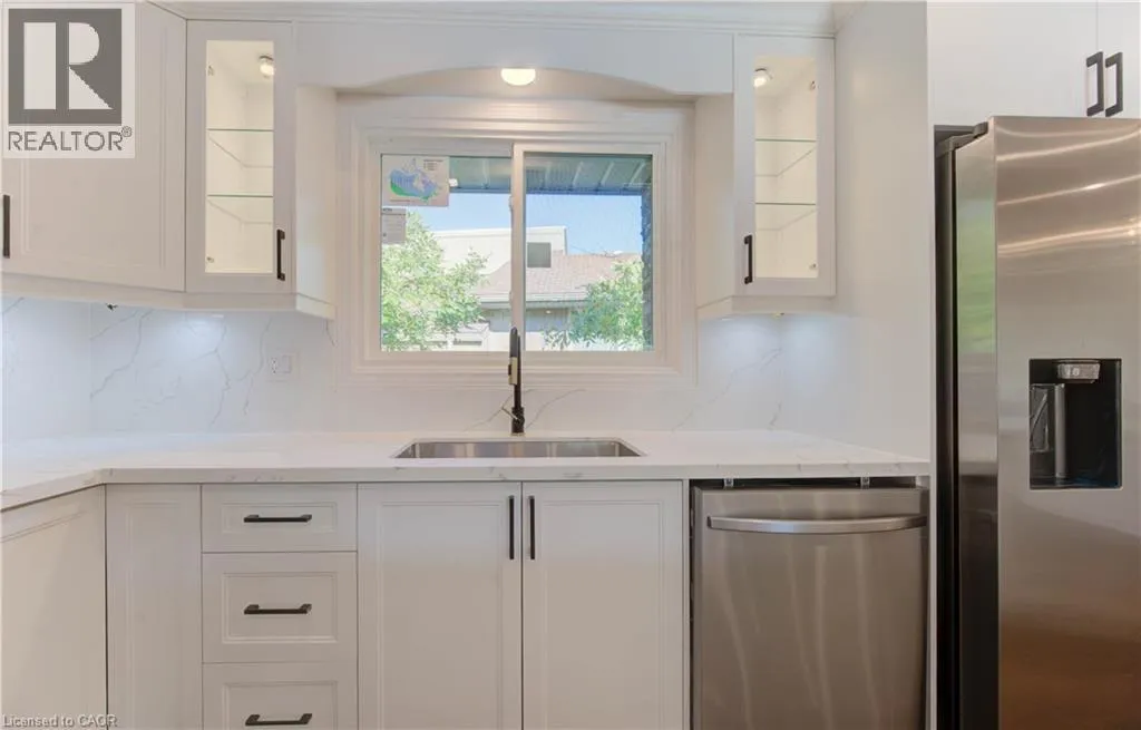 Erb Street to Mulberry Lane to 90 Culpepper Drive Welcome to 90 Culpepper Drive, located in the prestigious Maple Hills neighbourhoodâan area known for its sense of community and distinctive character. This highly sought-after address offers exceptional convenience with easy access to T&T Supermarket, coffee shops, restaurants, Costco, Rona, Waterloo Park, Westmount Golf & Country Club, University of Waterloo, and Wilfrid Laurier University. This beautifully renovated home has been thoughtfully updated from top to bottom. Freshly painted throughout, it features a front entrance door with a Wi-Fiâenabled smart lock and handle, brand-new windows, hardwood stairs, and durable vinyl flooring. The modern open-concept kitchen is the heart of the home, boasting all-new cabinetry, Cabinet molding, a stylish island with waterfall, quartz countertops and backsplash, plus a suite of new appliances including a Samsung smart fridge with Wi-Fi control, a Samsung 5-burner electric range, dishwasher and over-the-range microwave. Main floor, youâll also find bright living room with large windows, three comfortable bedrooms and one upgraded bathrooms with spa-style shower heads, sleek glass doors and marble finish floors. The finished basement offers a bright, large recreation space with a cozy gas fireplace and three piece bathroom. The bathroom is upgraded with spa-style showerheads, sleek glass doors, and a new Samsung washer/dryer set with Wi-Fi control. Outdoor living is equally impressive with a large deck featuring new flooring, perfect for entertaining or relaxing. Recent mechanical upgrades include a new furnace and heat pump (2023) and new attic insulation (2024), ensuring comfort and efficiency. This move-in-ready home combines modern style, smart features, and a prime locationâan exceptional opportunity in Maple Hills! (id:27476)