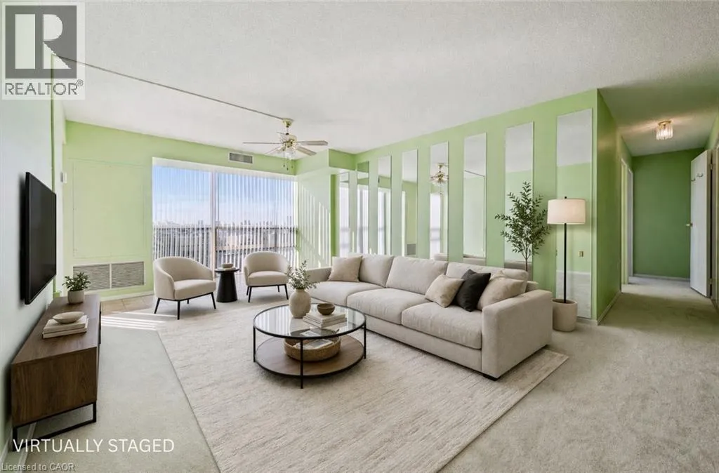 King St N to Blue Springs Dr, turn right into ""The Atriums"", visitor parking is above the parking garage (stay right). Welcome to The Atriums at 55 Blue Springs Drive in Waterloo. This spacious 1100 sq.ft. unit is located on the sixth floor and features two bedrooms, 2 full bathrooms and in suite laundry. This unit also has a separate storage locker and one owned underground parking space. This great building offers fantastic amenities, on site Manager, guest suite, party room, library, workshop, secured entrance, plenty of visitor parking and much more. Conveniently located near shopping, schools and quick access to the highway. Book your showing today! (id:27476)