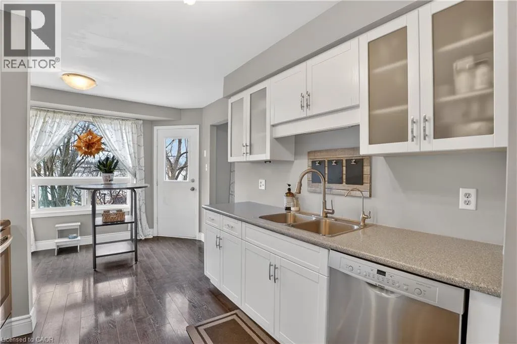 Welcome to this beautifully updated 3-bedroom, 3-bathroom townhome tucked into a small, well-managed complex in one of Waterlooâs most connected locations. With a single-car garage and a family-friendly setting complete with a playground and space for kids to ride their bikes, this home offers both comfort and community. Step inside to a bright and spacious main floor featuring a generous living and dining areaâperfect for everyday living and entertaining. The updated kitchen offers both style and function, while the refreshed bathrooms upstairs add a modern touch. The primary bedroom is a true retreat, offering plenty of space for a cozy reading nook or even a small workout area. With convenient cheater access to the main bath, this space blends comfort with practicality. One of the standout features of this home is the walkout basement, offering incredible flexibility. Whether you're looking to create an in-law suite, a private space for a university student, or simply want extra living space, the possibilities here are endless. Step outside and enjoy your morning coffee with a peaceful, tree-lined backdrop as you overlook the nearby trailâperfect for birdwatching and unwinding after a long day. Located just steps from the Laurel Trail, youâll love the easy access to Uptown Waterloo, the Spur Line Trail, and Downtown Kitchener. With the University nearby, this is an ideal location for families, investors, or anyone looking to enjoy a walkable, connected lifestyle. This is more than just a homeâitâs a lifestyle youâll love. (id:27476)
