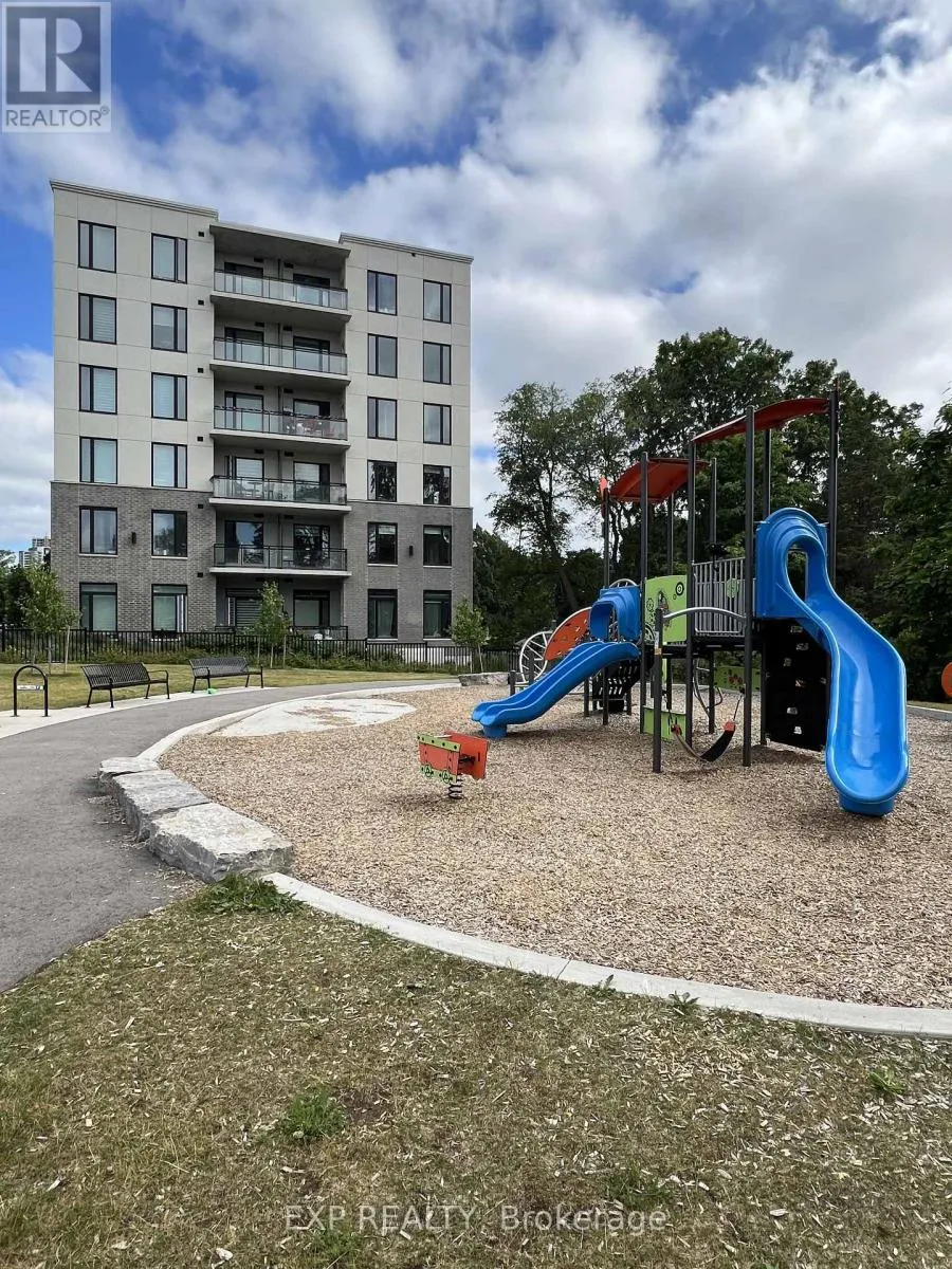 Rogers St. & Moore Ave. Stunning 2-bedroom corner unit condo facing a peaceful children's park in the heart of Waterloo! This bright and spacious unit features an open-concept layout with luxury vinyl plank flooring, 9-foot ceilings, and large windows that flood the space with natural light. Enjoy a modern kitchen with quartz countertops, stainless steel appliances, and ample cabinet space, along with two generous bedrooms featuring walk-in closets. The large balcony offers serene park views, and underground parking is included. Ideally located just minutes from the GO Station, Google office, University of Waterloo, Wilfrid Laurier University, Grand River Hospital, and all major amenities. (id:27476)