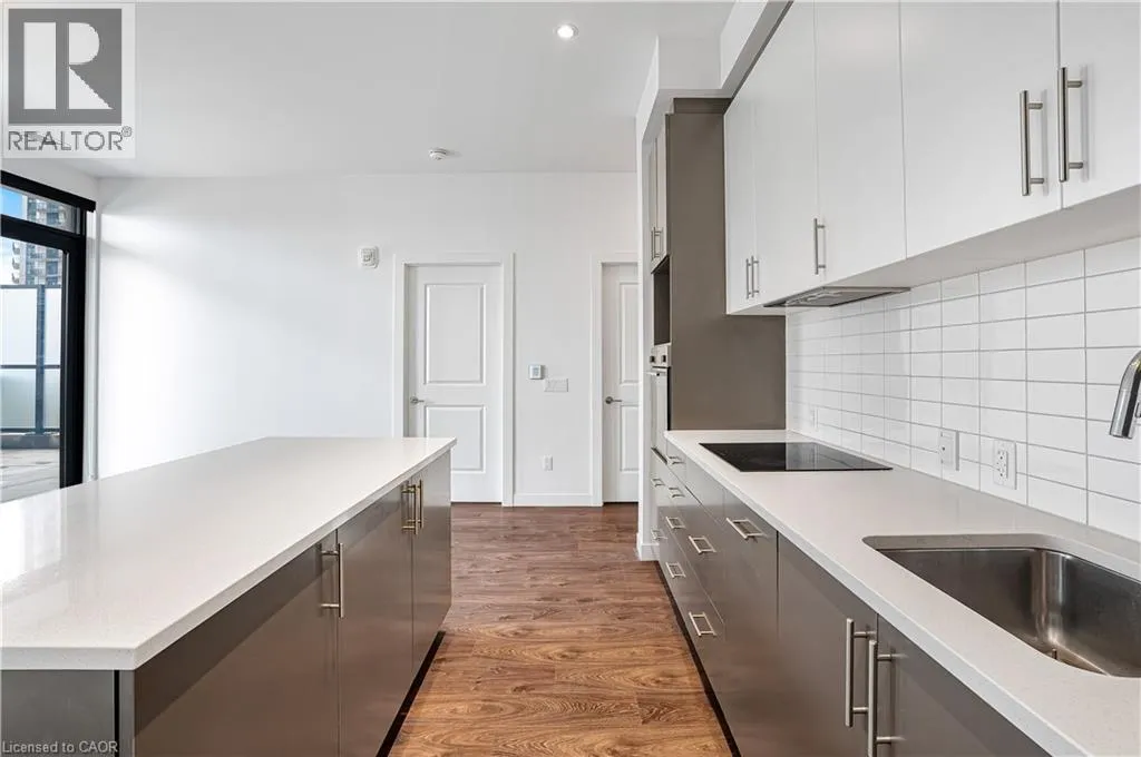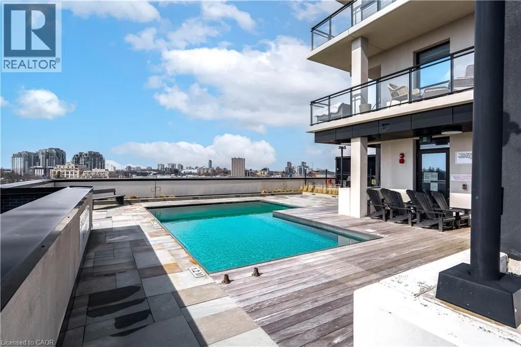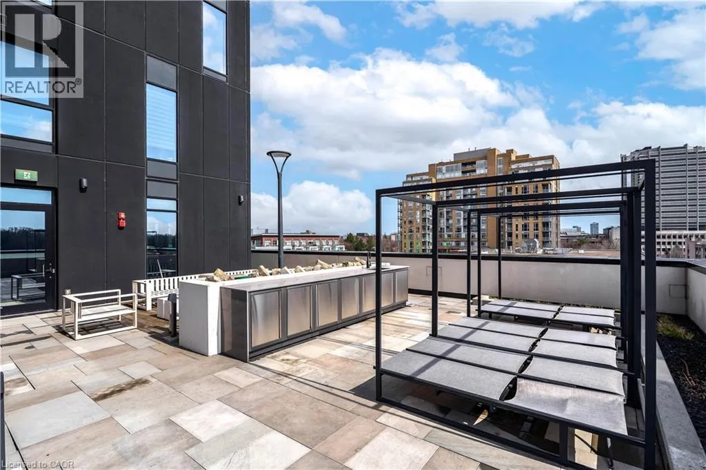 Entrances from King St & Caroline Looking for a well-designed condo with a rare 400+ square foot private outdoor terrace and immediate access to top-tier amenities? Welcome to Suite 606 at Circa 1877 in Uptown Waterloo. This bright 1 bedroom, 1 bathroom suite features floor to ceiling windows, high ceilings, and a modern open concept layout with upscale finishes throughout with in-suite laundry and storage locker included. The kitchen offers quartz countertops, a built-in panel fridge, wall oven, cooktop and a large island. The bedroom features built-in closets for efficient storage and priority access to the 3-piece bathroom. The unique 400+ square foot private terrace provides an exceptional outdoor living space for relaxing or entertaining. The suite is ideally located on the amenity floor with immediate access to the rooftop pool, terrace, BBQ area, gym, yoga studio, and lounge spaces. Steps to shops, restaurants, Vincenzoâs, ION LRT, and the hospital. Call to schedule your private showing today! (id:27476)