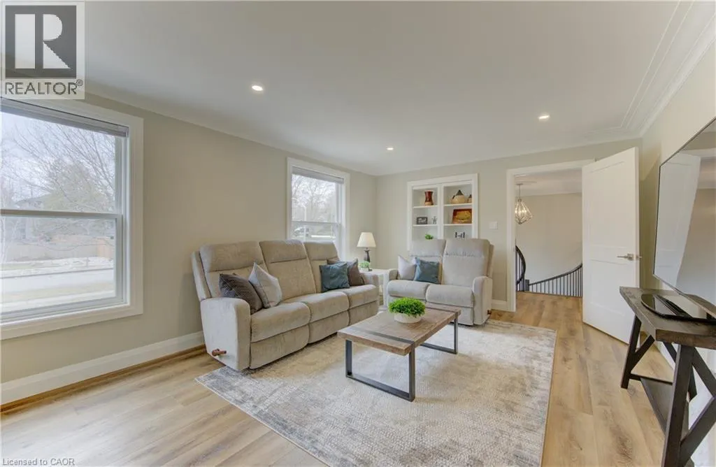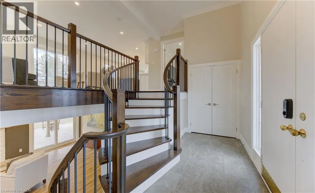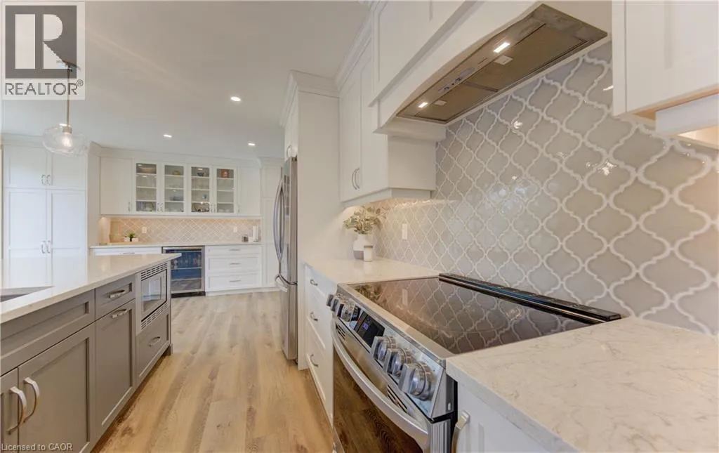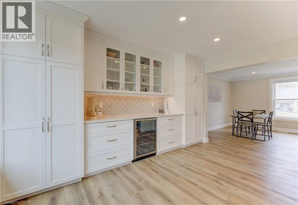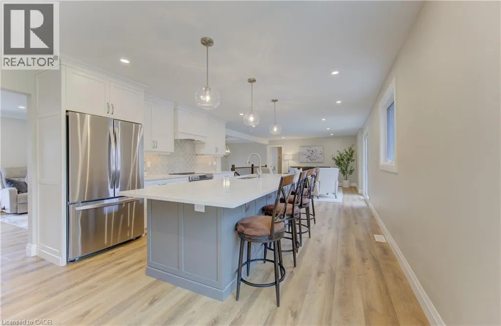Fischer-Hallman Road to Warrington Drive Welcome to 395 Warrington Drive in Waterloo â a beautifully renovated raised bungalow set on an exceptional 1/2+ acre lot, an incredibly rare offering in the heart of the city. Lots of this size are almost unheard of within city limits, offering unmatched space, privacy, and long-term potential while still being close to everyday amenities. From the moment you arrive, the craftsmanship is evident. A formal foyer and custom handmade banister lead into a fully reimagined main level, taken back to the studs to create a bright, open-concept living space with large windows that flood the home with natural light. The stunning kitchen is designed for both daily living and entertaining, featuring a large island, stainless steel appliances, wine fridge, stylish backsplash, and ample storage. New sliding doors open to a deck overlooking the expansive backyard â a private outdoor retreat with endless possibilities. Luxury vinyl flooring runs throughout, complementing the thoughtfully redesigned primary suite with a walk-in closet and enlarged 3-piece ensuite. Two additional bedrooms and a beautifully updated 5-piece bath complete the main level, with all bathrooms fully remodeled! The fully renovated walk-out basement continues the quality with a 3-piece bath, additional bedroom, fireplace, laundry, and garage access. Major updates include roof with blown-in insulation, new gutters and fascia, updated windows, furnace, ducting, A/C (2021), and ERV (2025). The attached double car garage with its brand new garage doors (2026) and expansive driveway offer parking for up to 8 vehicles. Ideally located backing onto to public tennis courts â which convert to an ice rink in winter â and with a school bus stop conveniently located right out front. This move-in-ready home combines modern upgrades with an unbeatable location close to universities and Uptown Waterloo â a rare opportunity in Waterloo. (id:27476)