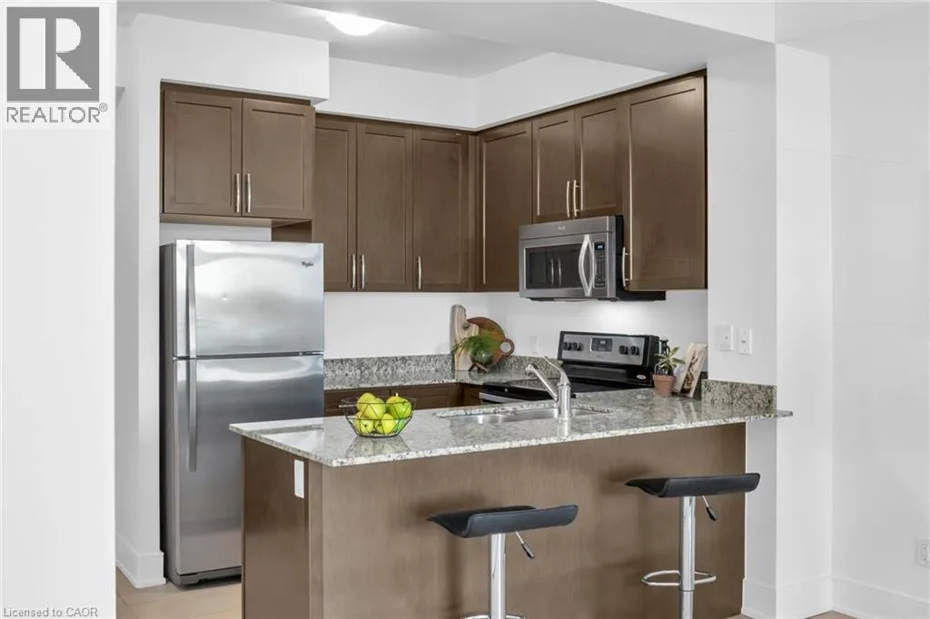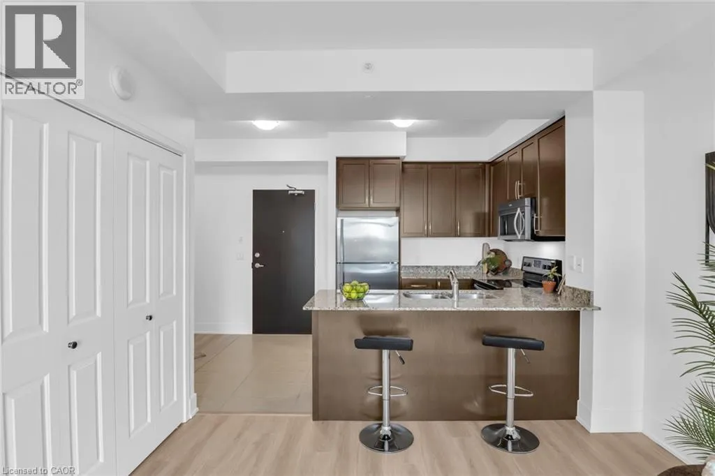 Allen Location and lifestyle come together here! This bright and welcoming 1-bedroom + den suite offers a smart design with no wasted space and great views over the Westmount area. The unit has been freshly painted and has updated flooring, creating a bright and modern feel throughout. Features include 9 ft ceilings, granite countertops, stainless steel appliances, and in-suite washer and dryer. Indoor parking and a storage locker are included. Step outside and enjoy one of Waterloo's most convenient neighbourhoods with Waterloo Town Square, Vincenzo's, Bauer Kitchen, Belmont Village, Grand River Hospital, parks, trails, grocery stores, LCBO, restaurants and shops all just moments away. Public transit is one block away with the future LRT stop nearby, making commuting simple. Building amenities include concierge, fitness centre, guest suite, theatre room, party room with direct access to the 4th floor terrace with BBQs and outdoor seating, car wash bay and bicycle storage. Ideal for homeowners or investors seeking location, lifestyle and convenience. (id:27476)