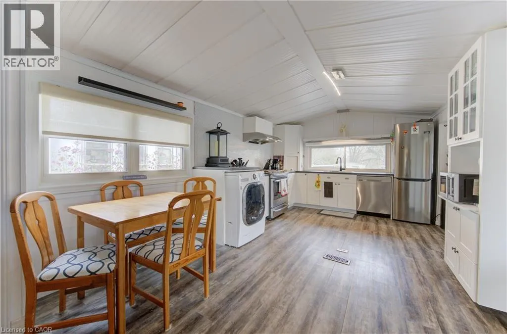 FROM NORTHFIELD EXIT-WEST ON NORTHFIELD DR., NORTH ON WESTMOUNT RD N. WEST ON CONSERVATION DR., Welcome to Unit 11 in one of Waterloo's most established and beautifully maintained land-lease communities Green Acres Park! This beautifully designed modular double-wide home offers a spacious and inviting layout, perfect for modern living. At the heart of the home is a large open-concept living area that seamlessly connects the kitchen, dining, and living spacesâideal for entertaining or enjoying everyday comfort. The thoughtfully designed floor plan includes a versatile den, perfect for a home office, media room, or cozy retreat. The expansive primary bedroom serves as a private sanctuary, featuring generous proportions and ample closet space. With its wide layout, abundant natural light, and flexible living spaces, this home combines functionality and style, making it an excellent choice for families, downsizers, or anyone seeking comfort without compromise. Green Acre Park features a community swimming pool, a games room, a catch and release fishing pond for plenty of outdoor activities. Enjoy resort-style amenities, peaceful surroundings, and low yearly carrying costs. Annual Park fees approx. $9,800-$11,200 + HST includes water & taxes (park closed Jan & Feb). Park approval required for all purchasers. Enjoy the comforts of 10-month seasonal living (park closed Jan and Feb) with a turnkey home, surrounded by nature, old growth trees and a spacious lot. Call and book your appointment today!! (id:27476)