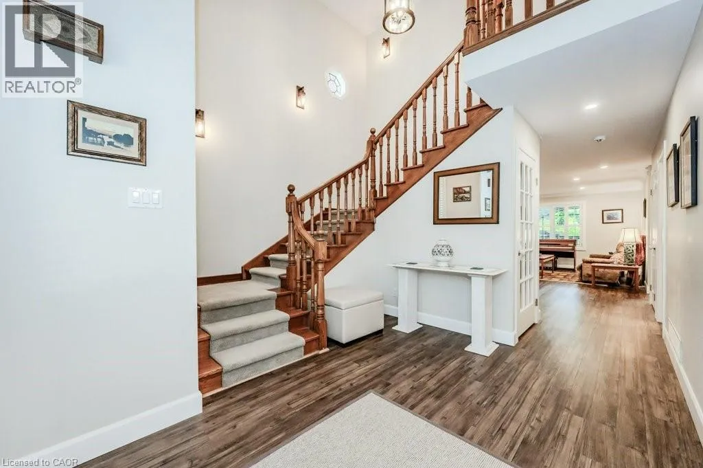 Bearinger Road to Corrie Crescent Tucked away on a peaceful, tree-lined street, this custom-built home offers a beautiful balance of classic design and everyday livability. From the moment you arrive, the impressive curb appeal and striking exterior make a lasting first impression. Step inside to a grand two-storey foyer highlighted by a sweeping oak staircase that sets the tone for the space beyond. The heart of the home is the thoughtfully designed chefâs kitchen, created with both entertaining and daily life in mind. Featuring an oversized island, walk-in pantry, butlerâs pantry, and premium stainless steel appliances, it offers plenty of space to gather and create. Just off the kitchen, the inviting family room with a gas fireplace provides the perfect place to relax with family or host friends. Convenience is built into the design with a stylish main-floor laundry room that offers direct access to the oversized double garage. Upstairs, youâll find four generously sized bedrooms, including a spacious primary retreat complete with a walk-in closet and a spa-inspired ensuite. The fully finished basement expands the living space and offers incredible flexibility â ideal for a home office, fitness area, recreation room, or guest suite. Step outside to discover a deep backyard that backs onto protected greenbelt (zoned OS3 â conservation), creating a rare sense of privacy and a tranquil wooded setting. Enjoy nearby walking trails or take a short trip to Laurel Creek Conservation Area for year-round outdoor adventure. All of this is located just minutes from excellent schools, both universities, shopping, dining, and the cityâs future state-of-the-art hospital. A home that perfectly blends location, space, and lifestyle â come discover everything 219 Corrie Crescent has to offer. (id:27476)