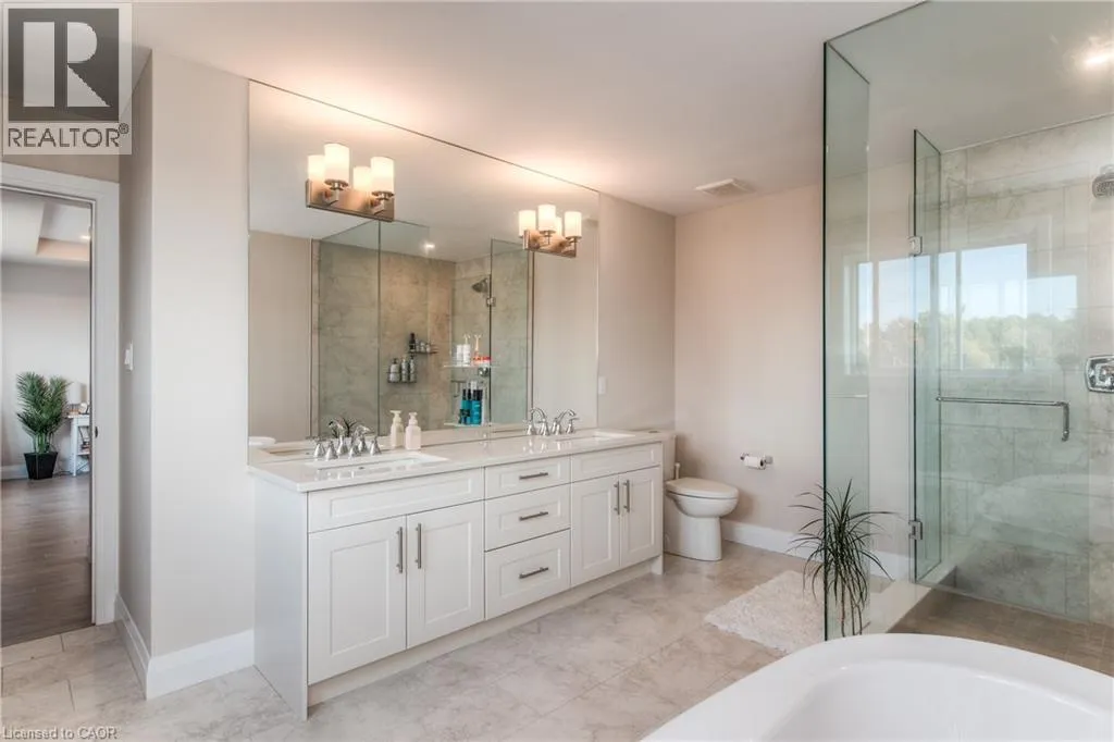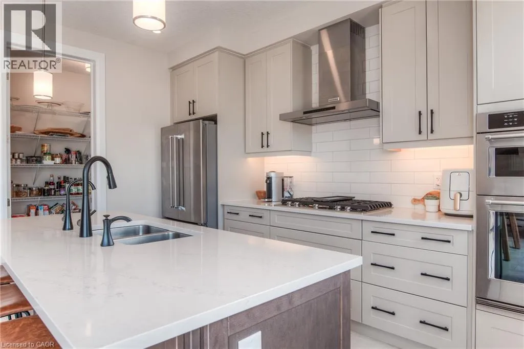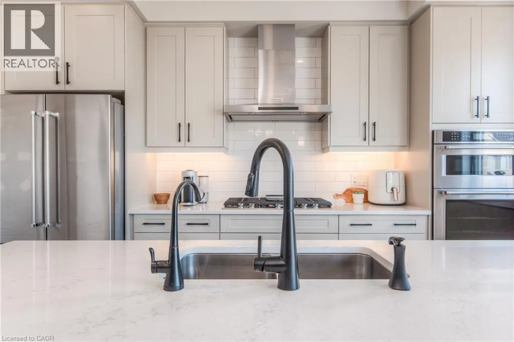 Erbsville Rd/Paradise Cres Executive 2 yr old home with loads of upgrades in the sought after Steeple Chase subdivision by Cook Homes in Upper Beechwood, Waterloo. This double car garage Model boosts open concept layout with luxurious finishes including 9' ceiling, carpet free main level with spacious mud room off the garage, spacious living room with gas fireplace, bright windows & gleaming engineered flooring. The kitchen is equipped with SS appliances including built in Oven/Microwave, gas cooktop, modern range exhaust, double side fridge, large centre island with double sinks, amble cabinets, stunning backsplash & quartz counter tops. Upgraded hardwood staircase with beautiful hardwood banisters & high quality runner leading to 2nd level beautiful family room meant for work from home designated area or late night gathering. The M/bedroom with tray ceiling, large bright & cheerful windows has stunning luxurious ensuite bath with 2-person glass enclosed shower, free stand tub and his & hers sinks with quartz countertop. 2 extra bedrooms with a serving spacious main bath. Laundry is on 2nd level equipped with high quality SS washer/dryer. Basement is a separate unit leased separately Near schools (walking distance to KW Bilingual School), Restaurants, medical centre, shopping, movie theatre & all amenities. Shows AAA and ready for occupancy. (id:27476)