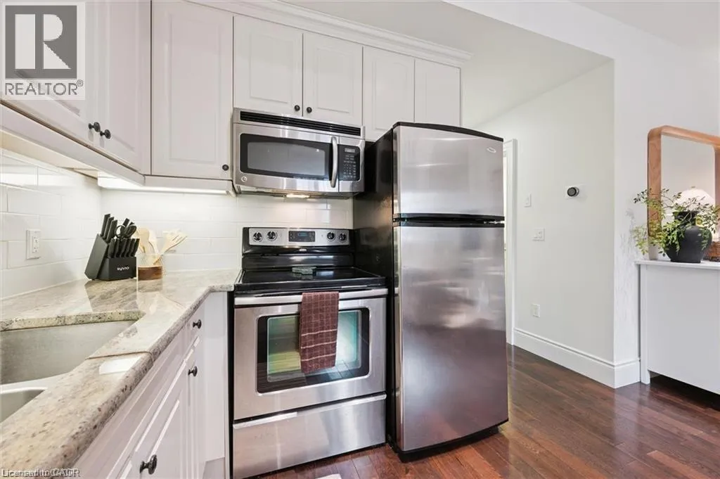 Allen St. W. Welcome to 101-133 Park Street, a bright and well-designed 1-bedroom, 1-bathroom condo in the heart of Uptown Waterloo. This open-concept, high ceiling layout seamlessly connects the living and kitchen areas, creating a comfortable and functional space for everyday living and entertaining. Large windows bring in plenty of natural light, while the spacious bedroom with an en-suite bathroom offers a quiet retreat with ample room to unwind. The unit is complete with in-suite laundry and a clean, well-appointed 4-piece bath. Step outside from the front or the back and find yourself walking to morning coffee at Princess Café, picking up fresh ingredients at Vincenzoâs, or an evening stroll through Waterloo Park, all just minutes from your front door, with the ION LRT close by to keep everything within easy reach. (id:27476)