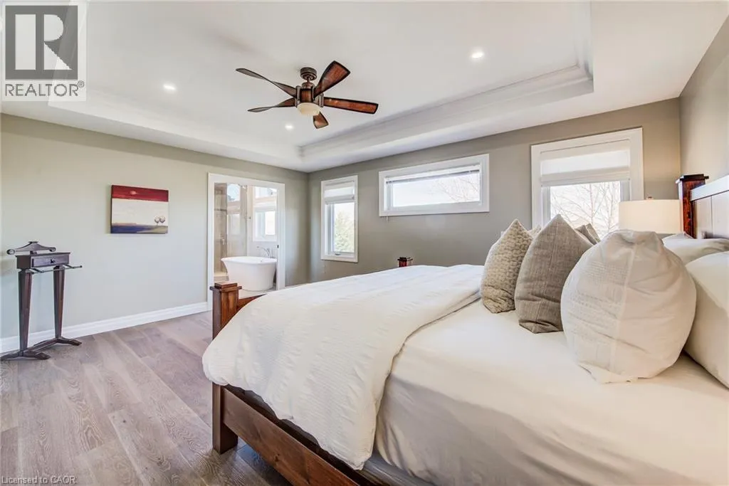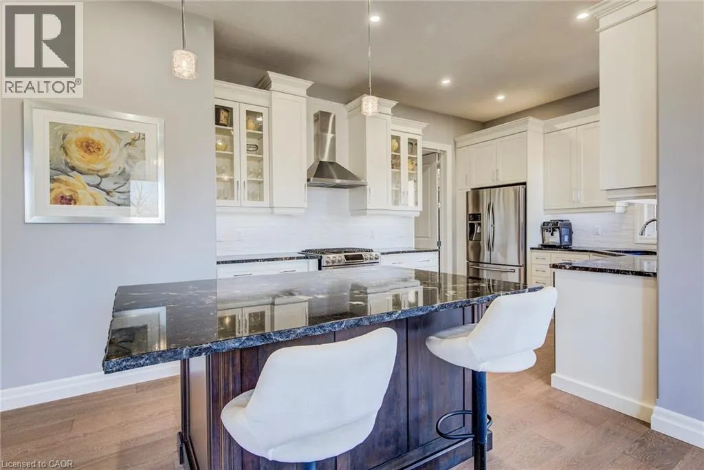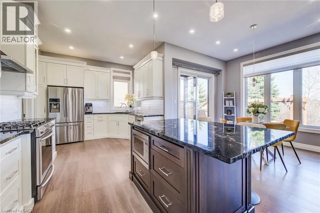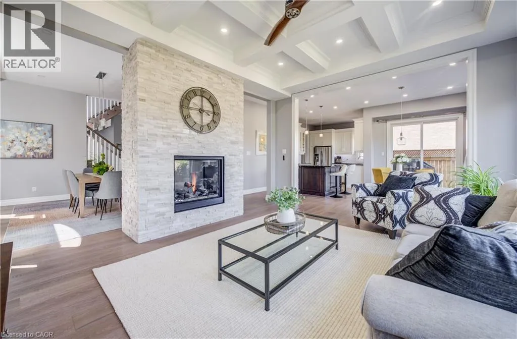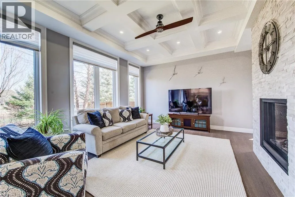 Welcome to this RTS Homes-built executive residence in desirable Carriage Crossing, Waterloo, backing onto a park w/ direct backyard access. Ideal for families seeking space, style and convenience, this bright home offers 4 generous bedrooms and 4 bathrooms (3+1). The main floor features 10â ceilings and hardwood and ceramic flooring. The custom kitchen incl. a centre island, granite countertops, stainless steel appliances, under-cabinet lighting, backsplash and a large walk-through pantry, plus a bright breakfast area w/ walkout to the covered back porch. The large living room has a waffle ceiling and two-way gas fireplace, while the formal dining room is spacious and perfect for entertaining. A main floor office is located just off the foyer. The 2-pc powder room completes the main floor. Upstairs, the master bedroom is a luxurious retreat w/ walk-in closet and 5-pc ensuite featuring in-floor heating, double vanities, soaker tub, glass-enclosed tiled shower and separate water closet. Bedroom 2 has a 3-pc ensuite w/ glass-enclosed tiled shower, while bedrooms 3 and 4 share a 5-pc Jack & Jill bathroom, each w/ walk-in closet. A loft provides a cozy reading or gaming nook, and the second-floor laundry incl. custom cabinetry. The professionally landscaped lot incl. an interlocking stone driveway, covered back porch, stone patio w/ gas fireplace, pergola w/ retractable cover, natural gas BBQ hookup and partially fenced backyard with park access. App-controlled technology incl. garage doors, inside entry, blinds, lights, Nest thermostat, in-floor heating in the master bath and an EV charger. High-end finishes throughout, incl. updated countertops, hardwood flooring, ceramic tile, and many pot lights, make this home impressive for even the most discerning buyer. Minutes from RIM Park, Grey Silo Golf Club, trails, UofW, Wilfrid Laurier University and easy expressway access, this home blends luxury, lifestyle, and convenience in a beautiful park-side setting. (id:27476)