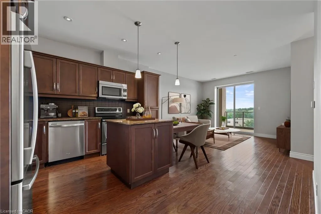 Corner of Erb & Westmount Welcome to this beautifully designed 2 bedroom, 2 bathroom condo that features a spacious eat-in kitchen perfect for both everyday living and entertaining. Boasting an abundance of cabinet space, sleek quartz countertops, and stainless steel appliances, this kitchen is as functional as it is stylish. The open-concept layout flows seamlessly into the bright and inviting living room, where patio doors lead out to your private balconyâ ideal for morning coffee or evening relaxation. Both bedrooms have large windows, allowing in lots of natural light and the main bathroom is complete with a walk-in shower. The large primary bedroom is a true retreat, featuring a convenient walk-through closet and a luxurious 5-piece ensuite complete with a double vanity, soaker tub, and separate shower. The amenities in the Westmount Grand include a rooftop terrace complete with BBQ's, a party room, a library/piano room, a large gym with saunas, and a bike room. Conveniently located beside the mosque (Muslim Society of Waterloo Wellington Counties) and close to restaurants, shops, parks, all amenities, and universities. Donât miss your chance to own this beautiful condoâwhether you're a first-time buyer or looking to downsize, itâs the perfect fit. Schedule your private showing today and see all that this property has to offer! (id:27476)