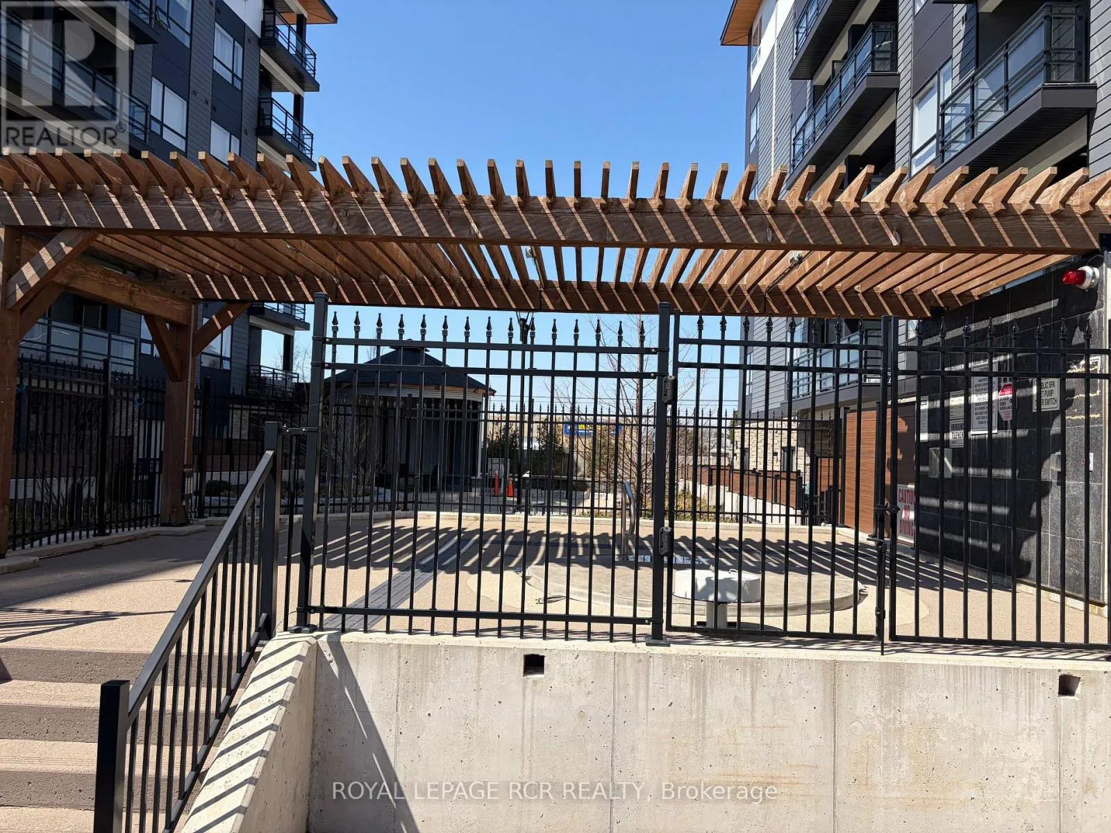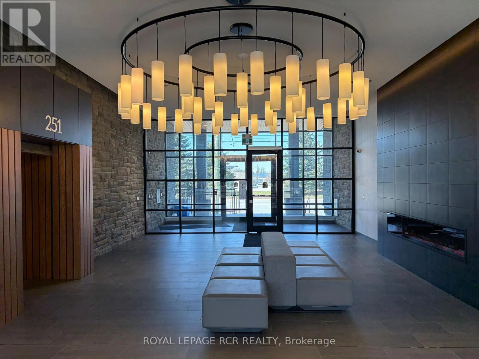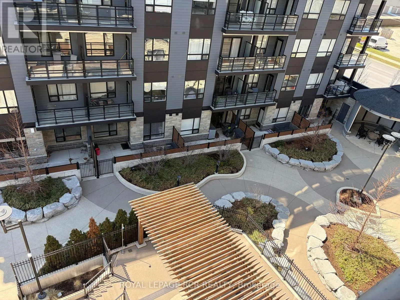 Northfield Dr E &Bridge St W Step into luxurious living at the new Blackstone Condominium at 247 Northfield Drive, where style, comfort, and convenience come together effortlessly. Located just steps from restaurants, everyday amenities, and a major new transit hub, this upgraded Aleksi model on the 5th floor offers an exceptional lifestyle in a prime location. Inside, you'll find a bright and spacious open-concept layout with 9-foot ceilings and upgraded vinyl plank flooring throughout. The modern kitchen is designed to impress, featuring sleek stainless steel appliances, quartz countertops, a classic subway tile backsplash, and elegant pot lighting-perfect for both everyday living and entertaining. The stunning bathroom has been thoughtfully upgraded with marble flooring and a glass walk-in shower, creating a spa-like retreat. The primary bedroom is filled with natural light and includes a generous walk-in closet, offering both comfort and practicality. Ensuite laundry with a new washer and dryer adds everyday convenience. Step outside onto your private balcony, which overlooks a beautifully landscaped courtyard complete with multiple seating areas and BBQs-an ideal space to relax or gather with friends. This unit also includes underground parking and an oversized locker, providing ample storage and ease of access. The building itself features an exquisite main lobby, a spacious modern party room, a fully equipped exercise room, and a shared rooftop terrace for residents to enjoy. With universities just minutes away and shopping and dining right at your doorstep, this home offers the perfect blend of urban living and peaceful retreat. Don't miss your opportunity to own a stunning condo in this sought-after development. (id:27476)
