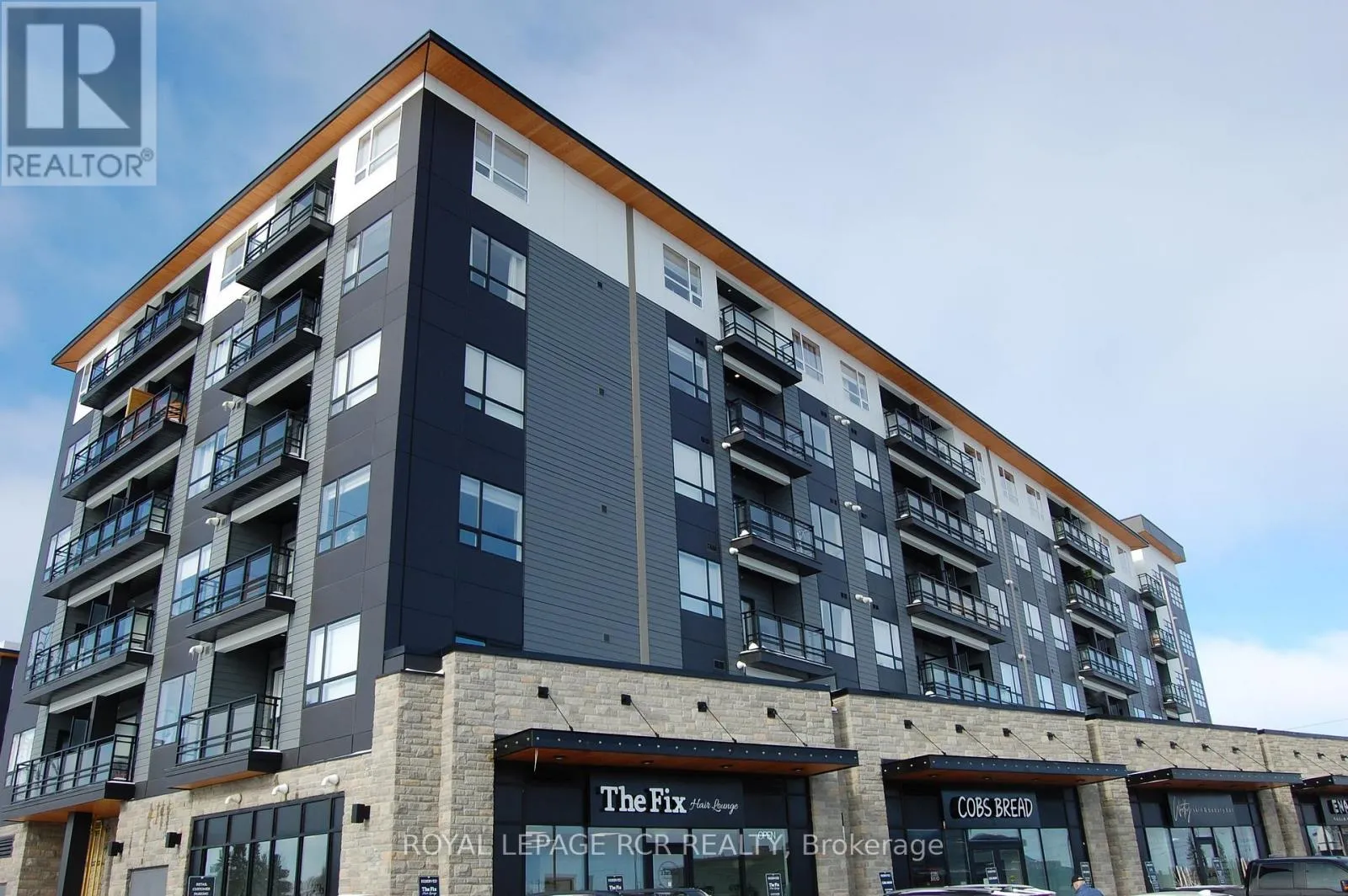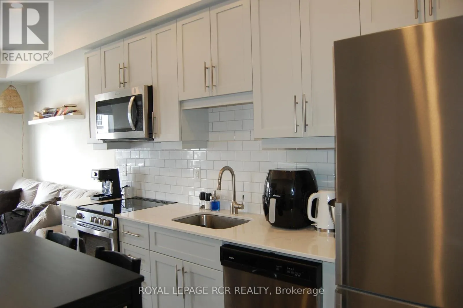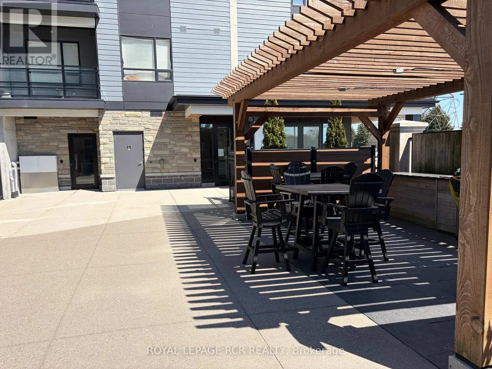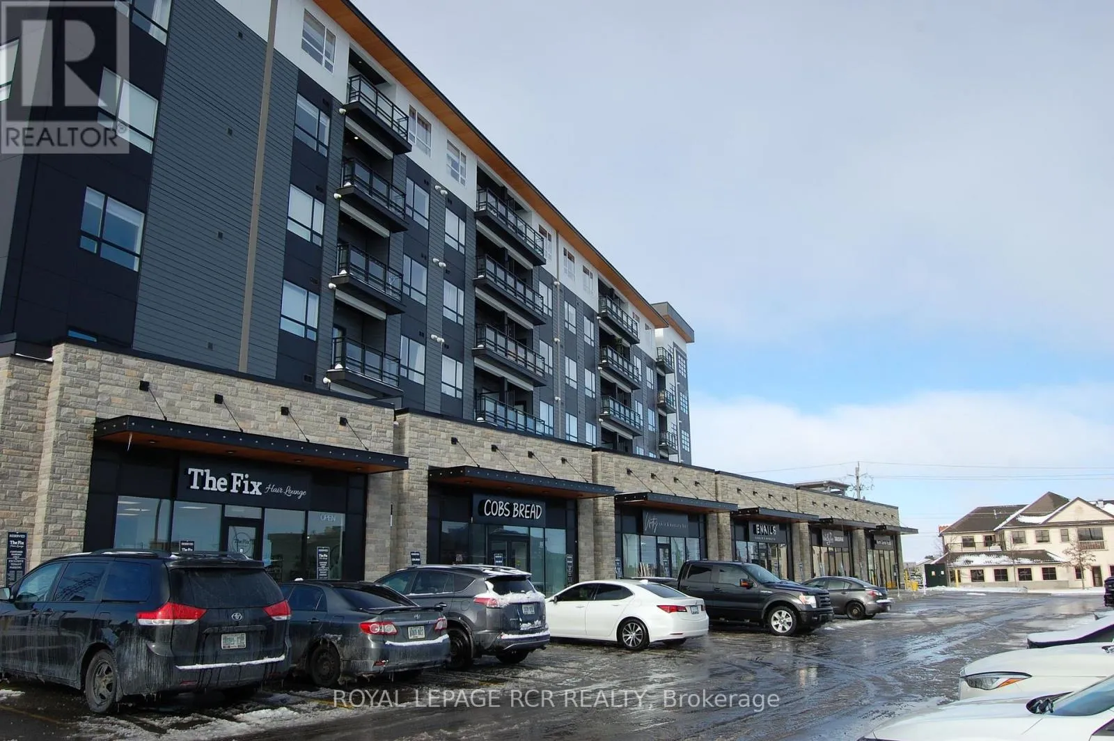Northfield Dr E &Bridge St W Step into luxurious living at the new Blackstone Condominium at 247 Northfield Drive, where style, comfort, and convenience come together effortlessly. Located just steps from restaurants, everyday amenities, and a major new transit hub, this upgraded Aleksi model on the 5th floor offers an exceptional lifestyle in a prime location. Inside, you'll find a bright and spacious open-concept layout with 9-foot ceilings and upgraded vinyl plank flooring throughout. The modern kitchen is designed to impress, featuring sleek stainless steel appliances, quartz countertops, a classic subway tile backsplash, and elegant pot lighting-perfect for both everyday living and entertaining. The stunning bathroom has been thoughtfully upgraded with marble flooring and a glass walk-in shower, creating a spa-like retreat. The primary bedroom is filled with natural light and includes a generous walk-in closet, offering both comfort and practicality. Ensuite laundry with a new washer and dryer adds everyday convenience. Step outside onto your private balcony, which overlooks a beautifully landscaped courtyard complete with multiple seating areas and BBQs-an ideal space to relax or gather with friends. This unit also includes underground parking and an oversized locker, providing ample storage and ease of access. The building itself features an exquisite main lobby, a spacious modern party room, a fully equipped exercise room, and a shared rooftop terrace for residents to enjoy. With universities just minutes away and shopping and dining right at your doorstep, this home offers the perfect blend of urban living and peaceful retreat. Don't miss your opportunity to own a stunning condo in this sought-after development. (id:27476)
