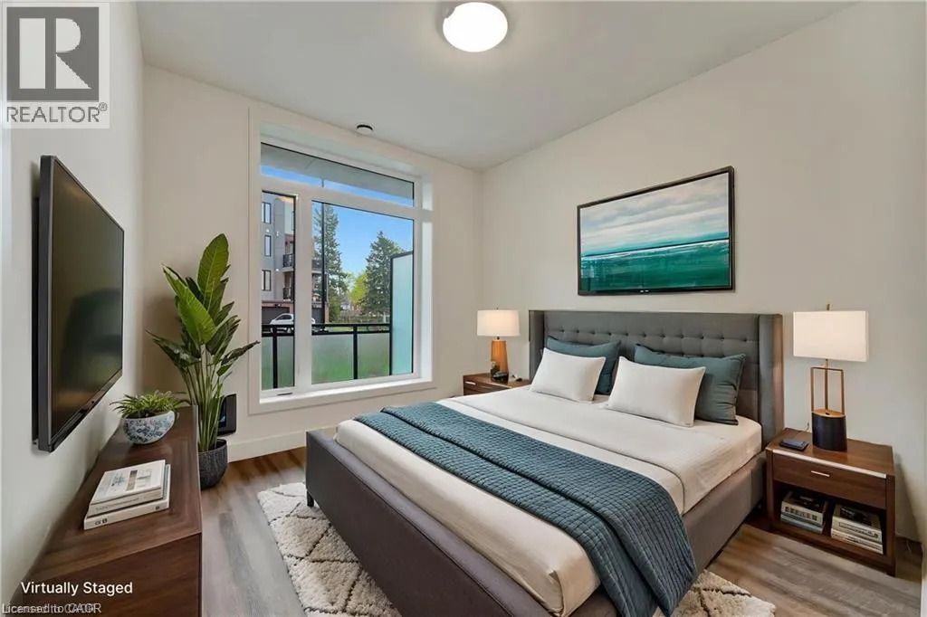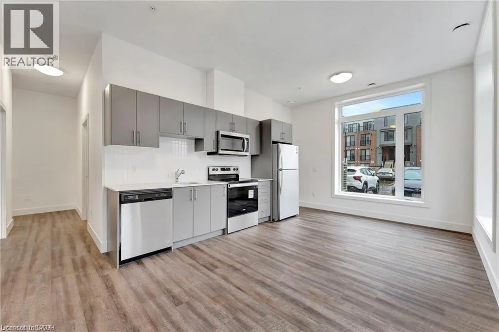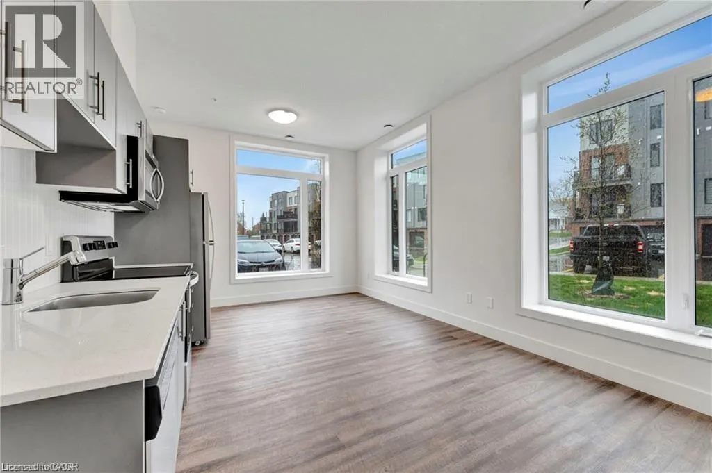 Moore Ave S & Roger St The purchase price set out above is net of HST. How HST will be addressed will be determined at the time the Purchaser enters the agreement of purchase and sale, based on the status of the existing and proposed HST Rebates announced by the provincial and federal governments. - Welcome to your ideal urban retreat, perfectly situated in the heart of Uptown Waterloo. This beautifully designed 2-bedroom, 1-bathroom condo offers the perfect blend of style, comfort, and unbeatable location â ideal for professionals, students, or investors looking to be at the center of it all. Step inside and be greeted by luxury vinyl plank flooring that flows seamlessly throughout the space, creating a modern and cohesive feel. Large, bright windows flood the unit with natural light, creating a warm, welcoming ambiance. The kitchen is a true highlight, featuring sleek quartz countertops that add both beauty and durability to your culinary experience. Both bedrooms are equipped with walk in closets, providing ample storage and comfort. Enjoy your morning coffee or unwind after a long day on your private ground-level balcony, offering a cozy outdoor escape. This location simply canât be beat. Just minutes from the University of Waterloo, Wilfrid Laurier University, and steps to the LRT, youâll enjoy quick, car-free access to Downtown Kitchener, local restaurants, boutique shops, the hospital, and Spur Line Trail. Whether you're commuting, grabbing a bite, or enjoying the outdoors, everything you need is right at your doorstep. Donât miss this rare opportunity to own a stylish condo in one of Waterloo Regionâs most sought-after communities. (id:27476)