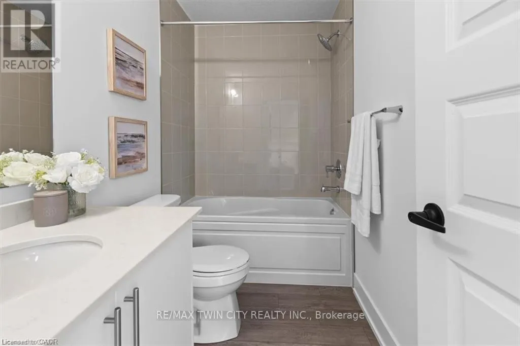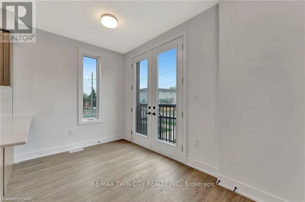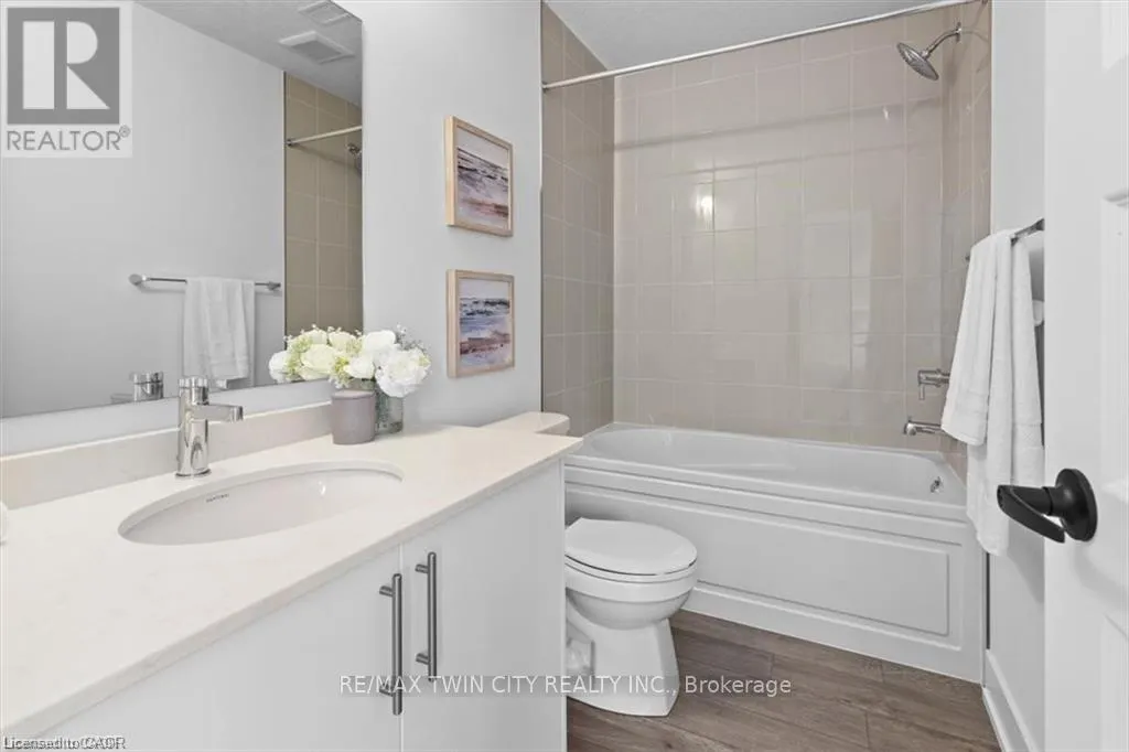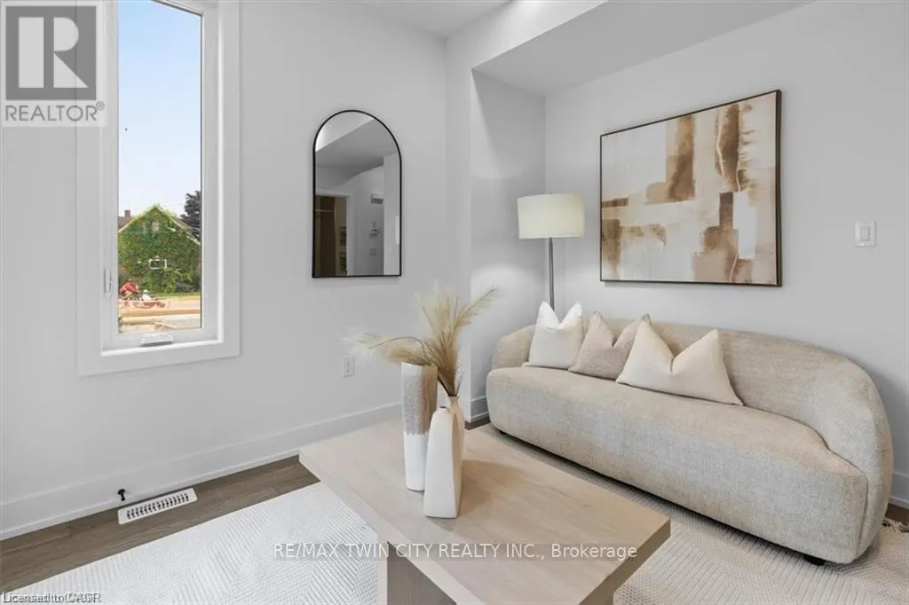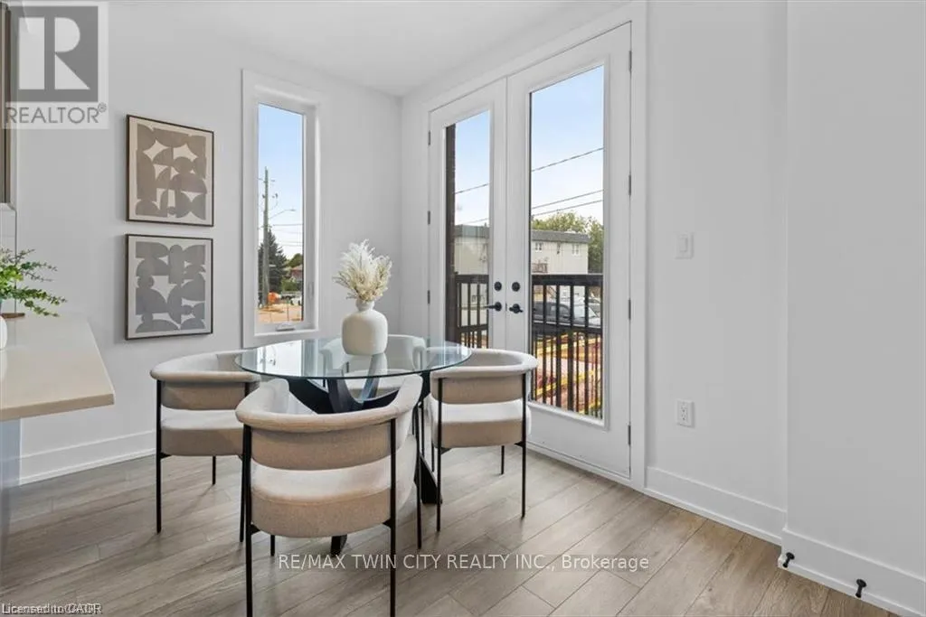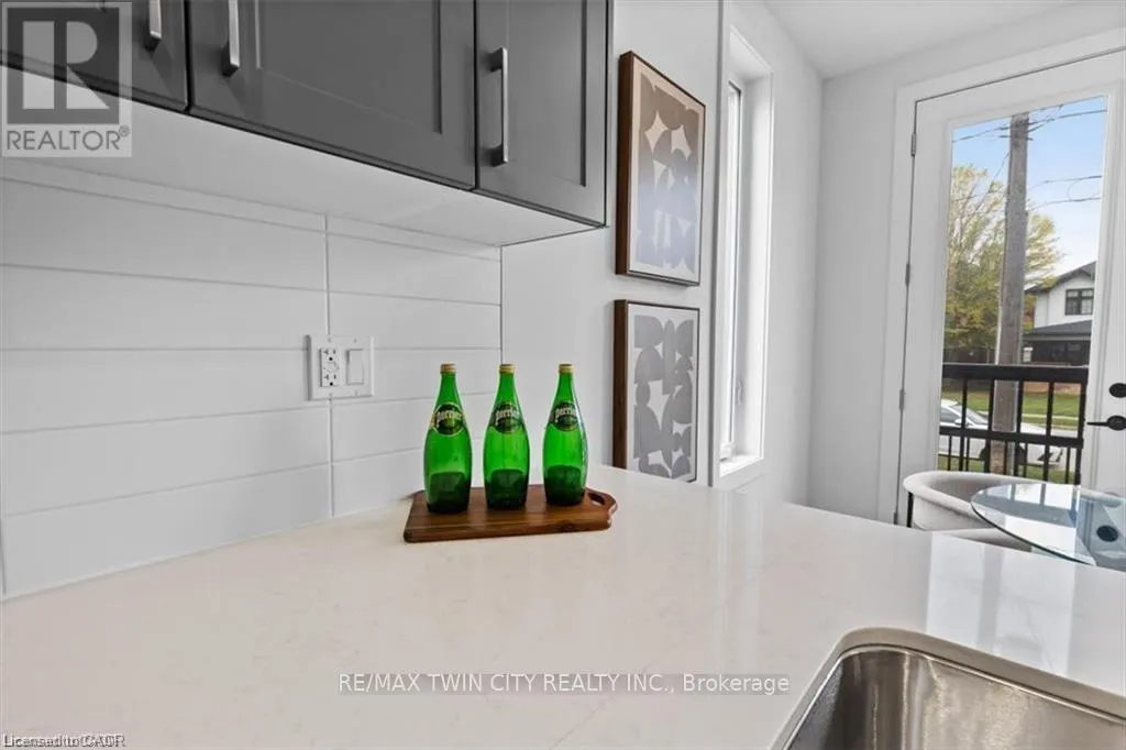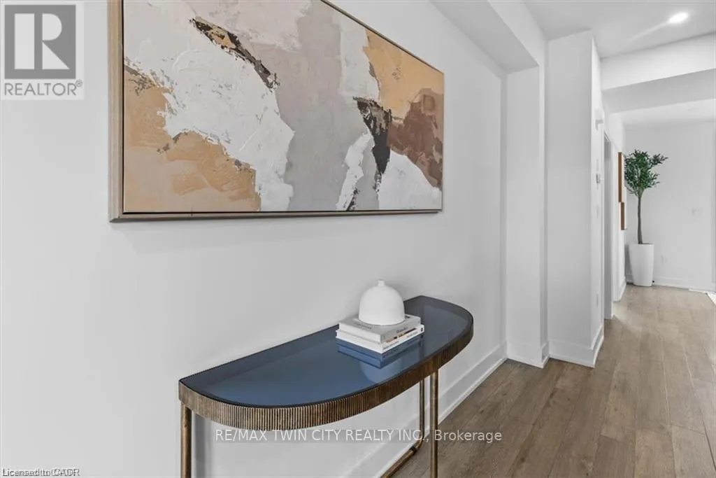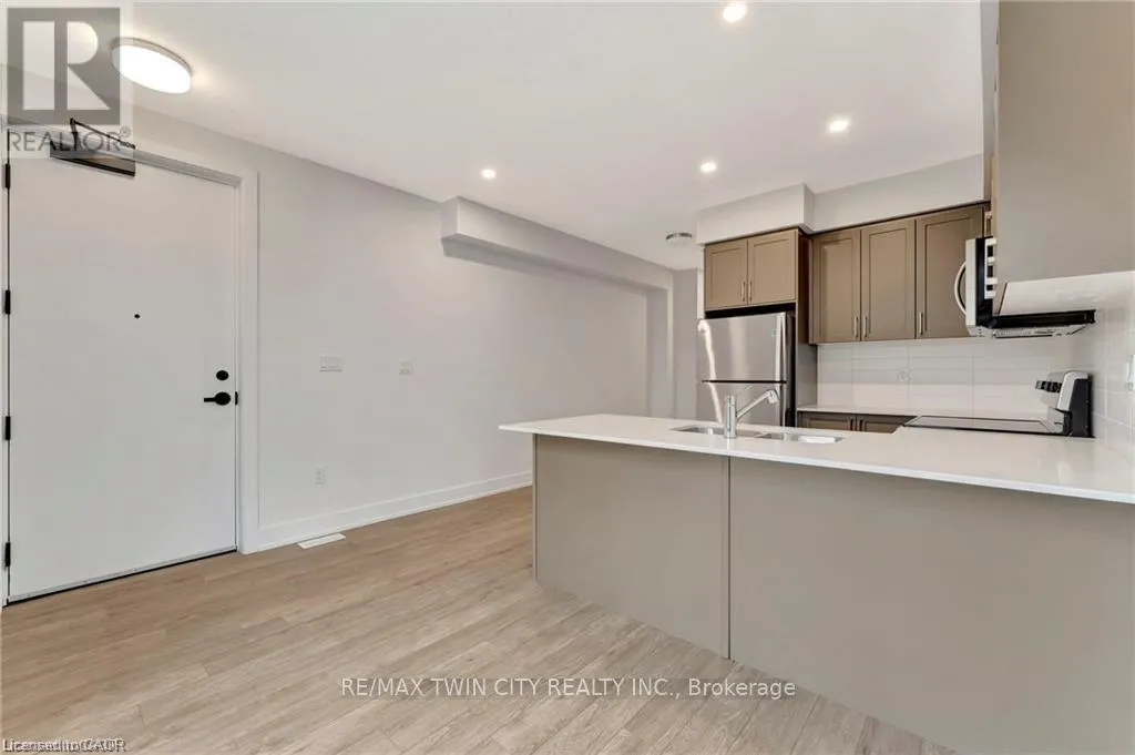 Cross Streets: MOORE AVE S & ROGER. ** Directions: Moore to Roger. The purchase price set out above is net of HST. How HST will be addressed will be determined at the time the Purchaser enters the agreement of purchase and sale, based on the status of the existing and proposed HST Rebates announced by the provincial and federal governments. - Welcome to this stunning 2-bedroom, 2-bathroom condo-townhouse, perfectly situated in the heart of Uptown Waterloo - where style, convenience, and location come together effortlessly. Just minutes from the University of Waterloo, Wilfrid Laurier University, LRT transit, restaurants, downtown Kitchener, Grand River Hospital, and the popular Spur Line Trail, this home places you in the center of it all. Inside, you'll find a thoughtfully designed space featuring beautiful vinyl plank flooring throughout and oversized windows that fill the home with natural light. The modern kitchen shines with elegant quartz countertops, stylish backsplash tile, and quality finishes that make it both functional and eye-catching. The layout offers excellent flexibility and privacy, with a spacious lower-level bedroom featuring a walk-in closet, and ensuite bathroom ideal for guests, roommates, or a home office. Step out onto your private balcony, perfect for enjoying your morning coffee or relaxing in the evenings. Whether you're a first-time buyer, professional, or investor, this property is a rare find in one of Waterloo Region's most walkable and desirable neighborhoods. (id:27476)
