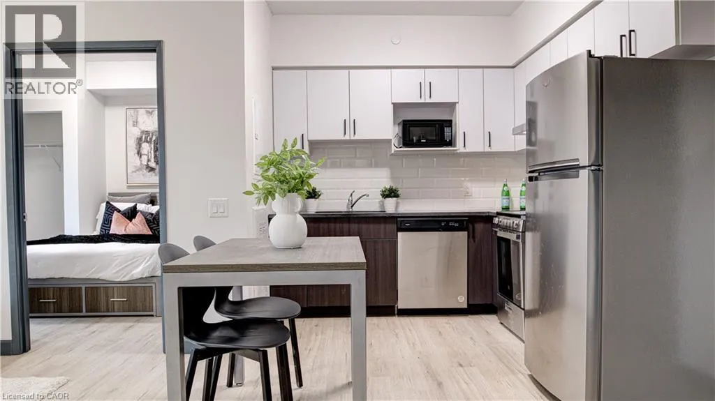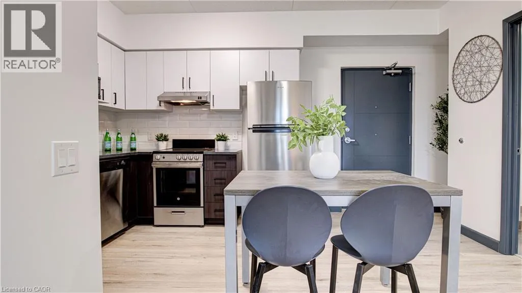 Hemlock St and Hickory St Welcome to Unit 305 at 298 Hemlock Street â modern living in the heart of Waterloo's university district. Steps from Wilfrid Laurier University, the University of Waterloo, transit, dining, and everyday amenities, this location offers unbeatable convenience in a vibrant community. This 681 sq. ft. one-bedroom plus dining suite with two full bathrooms delivers a smart, functional layout designed for comfort and flexibility. The spacious bedroom is complemented by a dedicated dining area, ideal for entertaining, studying, or working from home, while the second bathroom adds rare convenience and privacy. The contemporary kitchen features granite countertops, full wood cabinetry, and sleek LED lighting, flowing seamlessly into the open-concept living space. Floor-to-ceiling windows flood the unit with natural light, creating a bright and airy atmosphere throughout. Water, heat, and internet included. Partially furnished. Efficient, modern, and exceptionally located â Unit 305 offers elevated urban living in one of Waterloo's most sought-after buildings. (id:27476)