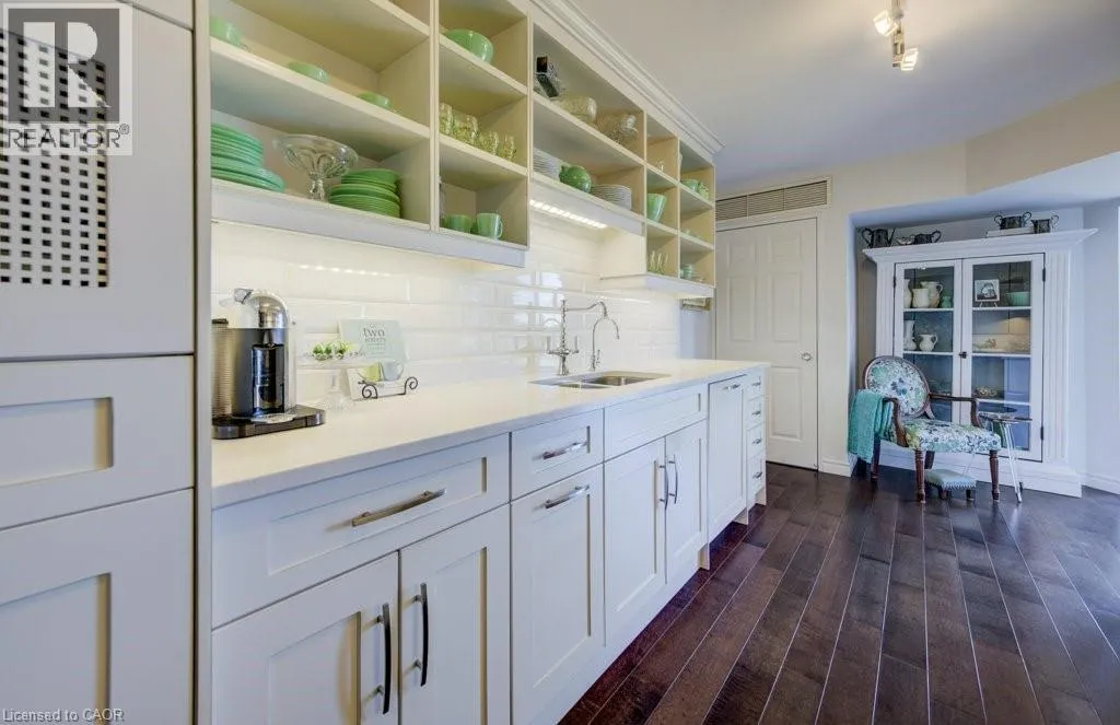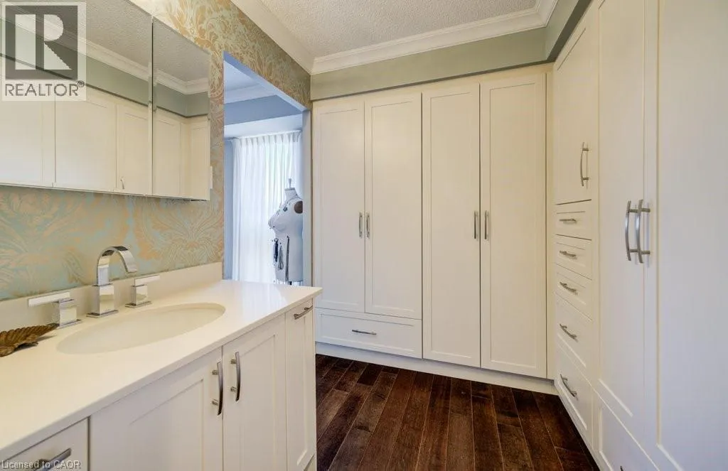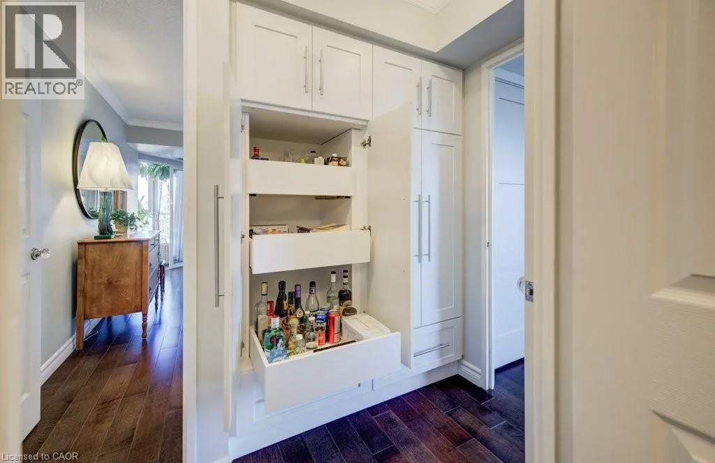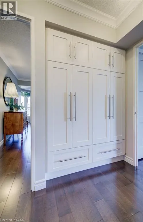 Westmount to Westcourt Place Luxury awaits in this beautifully custom-designed 2-bedroom corner suite at The Beechmount. From the moment you step through the door, the exceptional attention to detail is unmistakable. Expansive windows flood the space with natural light, enhancing the thoughtfully curated design throughout. Fully renovated in 2015 with over $200,000 in high-end upgrades, this residence showcases stunning hardwood flooring, new baseboards, crown moulding, doors, and trim, all complemented by a refined, calming colour palette. The chef-inspired kitchen (2015) is both stylish and functional, featuring sleek cabinetry, quartz countertops, a panel dishwasher, stainless steel refrigerator (2024), and cleverly integrated storage, including a hidden microwave space. An inviting atrium-style dining area overlooks lush greenspace belowâan ideal setting for entertainingâwhile the adjoining living room offers a warm and cozy retreat. The primary bedroom continues the homeâs commitment to smart, elegant design, boasting a walk-in closet with floor-to-ceiling custom storage and a private ensuite bathroom. The second bedroom is equally impressive, complete with built-in cabinetry and access to a secluded terraceâ overlooking expansive greenspace & perfect for quiet relaxation. A well-appointed 4-piece bathroom connects to a beautifully finished laundry and storage room, featuring high-end Miele washer and dryer (2019), and maintaining the homeâs consistent elevated aesthetic. The Beechmount is an amenity-rich condominium, widely regarded as one of the best-managed buildings in the region. Ideally located, youâll enjoy everyday conveniences just steps from your door. Complete with two underground parking spaces, this rare offering combines luxury, comfort, and turnkey convenienceâtruly a standout opportunity. (id:27476)
