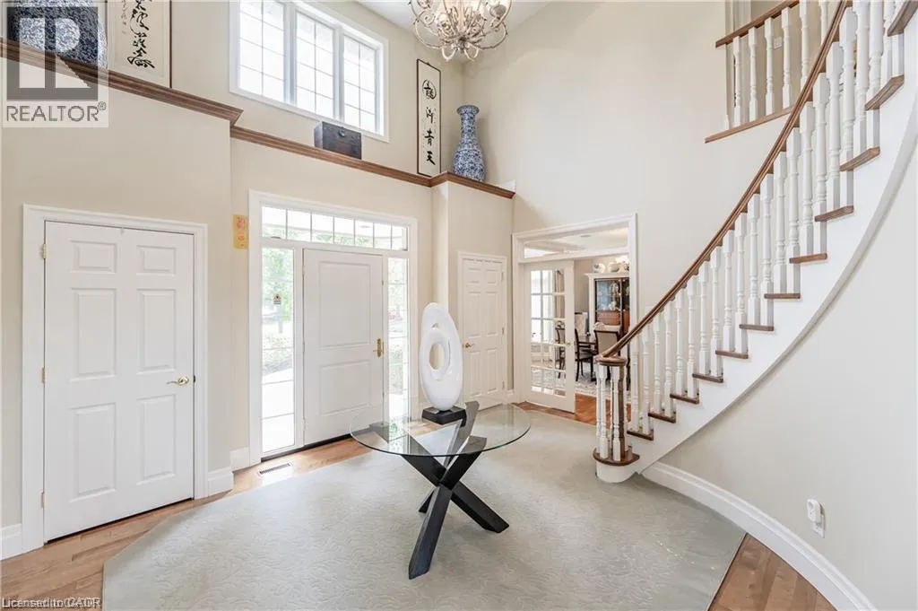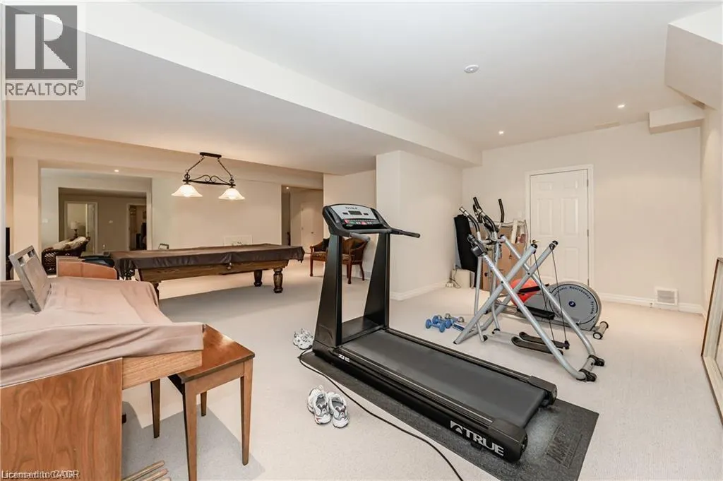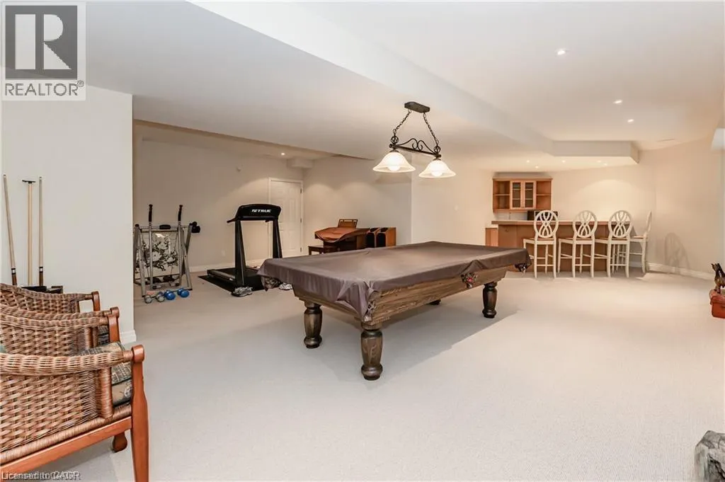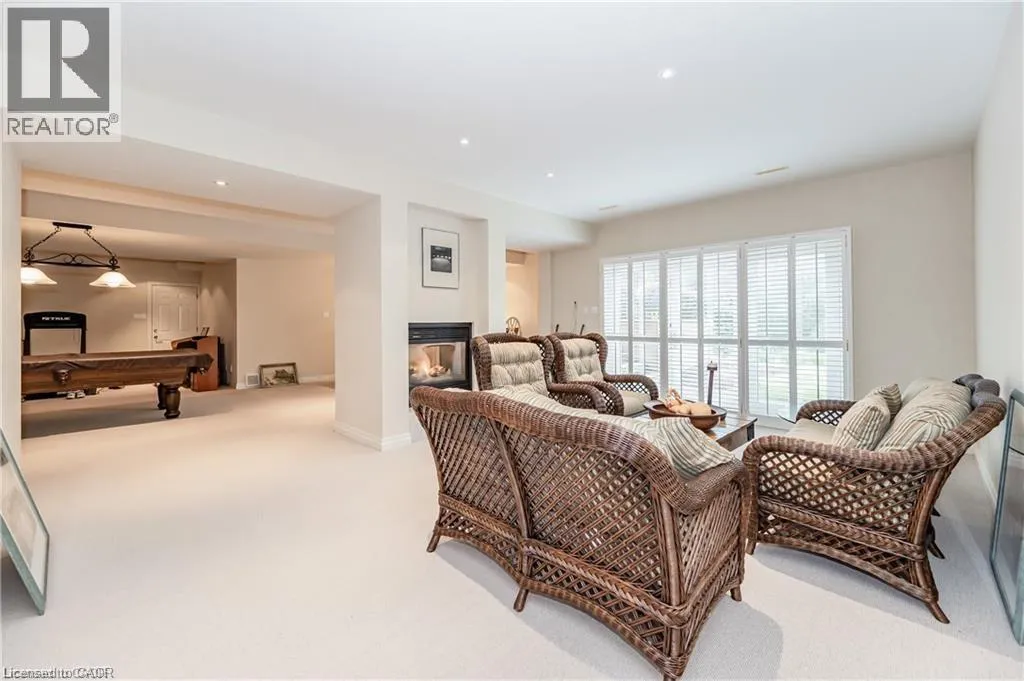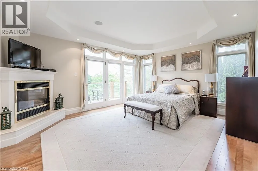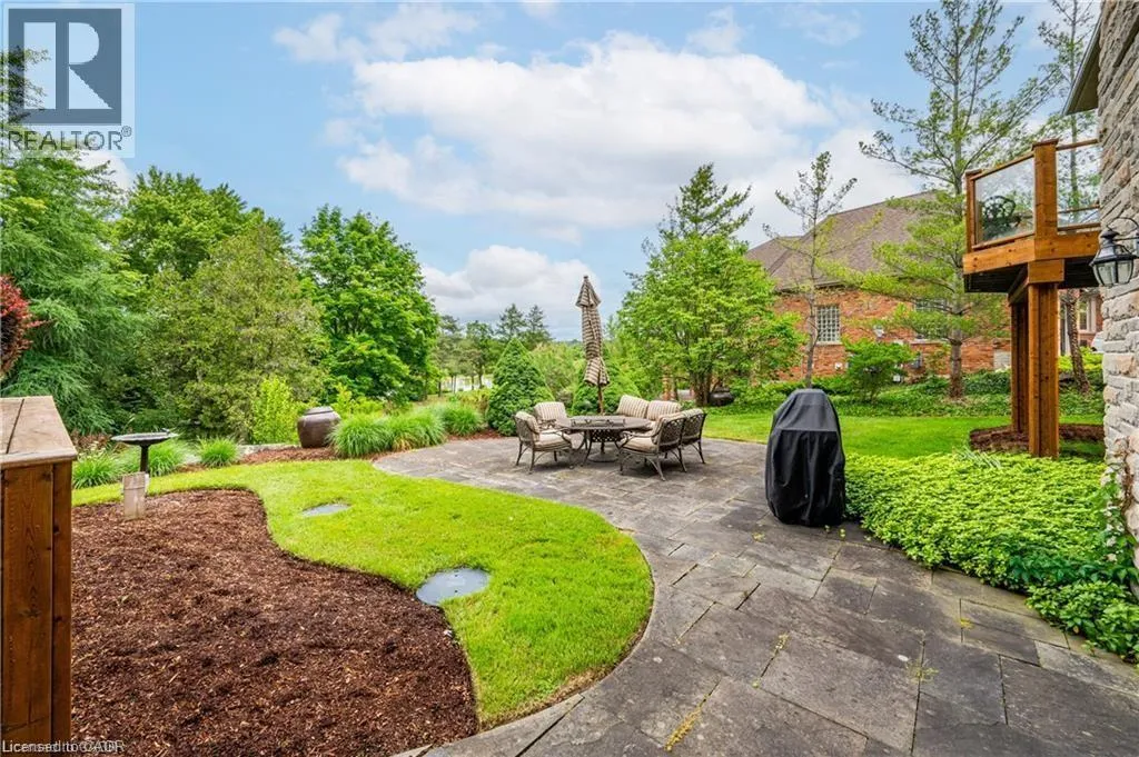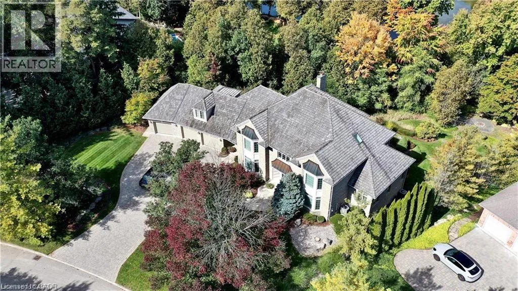 Cedarcliffe Drive Discover refined living in the prestigious River Oak Estatesâwhere timeless design meets an extraordinary natural backdrop. Set on a lush half-acre lot backing directly onto the Grand River, this 6,000+ sq. ft. residence captures breathtaking views of the water, pond, and Grand River Trail. Thoughtful landscaping enhances its privacy and curb appeal, creating a truly peaceful setting. Inside, sophistication unfolds across three levels, with 5+2 bedrooms and 6 bathrooms offering comfort and flexibility for family and guests. The grand foyer opens to an elegant staircase and sun-filled formal living and dining roomsâideal for entertaining large gatherings. The kitchen, complete with an oversized island and casual dining space, extends to a spacious deck overlooking the river. A stone wood-burning fireplace anchors the family room, where floor-to-ceiling windows frame the scenic outdoors. The main floor suite is a private retreat featuring a gas fireplace, walk-in closet, and balcony access. Its luxurious ensuite includes dual vanities, a soaker tub surrounded by windows, and a glass walk-in shower. Upstairs, youâll find four additional bedrooms, a home office with custom built-ins, and a dedicated media room. The lower level offers two more bedrooms, a 3-piece bath, wet bar, games area, and walkout access to a stone patio and landscaped gardensâperfect for indoor-outdoor living. Blending comfort, elegance, and a rare connection to nature, this River Oak Estates home delivers a lifestyle as remarkable as its setting. (id:27476)