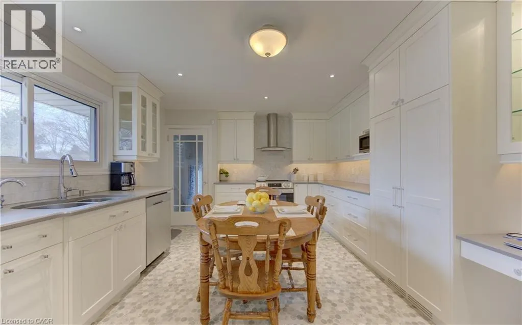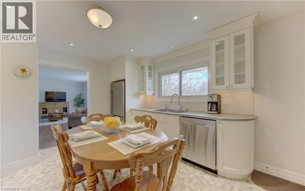 Westmount Rd S to Lourdes St Updated mid-century bungalow in highly sought-after Westmount, set on a wide corner lot with a private fenced side yard surrounded by mature trees. Offering over 1600 sq. ft. of living space, this home blends timeless character with thoughtful modern updates. A cozy living room welcomes friends and family with a large bay window and classic California shutters, creating a bright and inviting space. The updated kitchen features custom Chervin cabinetry, quartz countertops, and stainless steel appliances. The main bathroom is beautifully appointed with a granite-topped vanity and a glass walk-in shower complete with bench seating and handrails. The bedrooms feature new carpet and generous closet space, while the spacious bonus room is large enough to function as a third bedroom and has consistently been used as one. The fully finished basement extends your living area with a spacious rec room anchored by a cozy gas fireplace, a 2-piece bathroom, a large laundry room, and abundant storage. Enjoy added seasonal living space in the attached 11â x 19â sunroom, or step outside onto the large patio with charming gazebo that is perfect for relaxing or entertaining. An impressive 24â x 23â double-car garage with dedicated workshop space easily accommodates two vehicles while still offering ample room for storage, hobbies, or projects. The double-wide driveway adds everyday convenience, and the water softener is brand new. Located steps from top-rated schools and within walking distance to vibrant Uptown Waterloo, you will enjoy easy access to cafes, restaurants, shopping, the LRT, and Waterloo Park. A fantastic opportunity to own a move-in-ready home in one of Waterlooâs most established and desirable neighbourhoods. (id:27476)