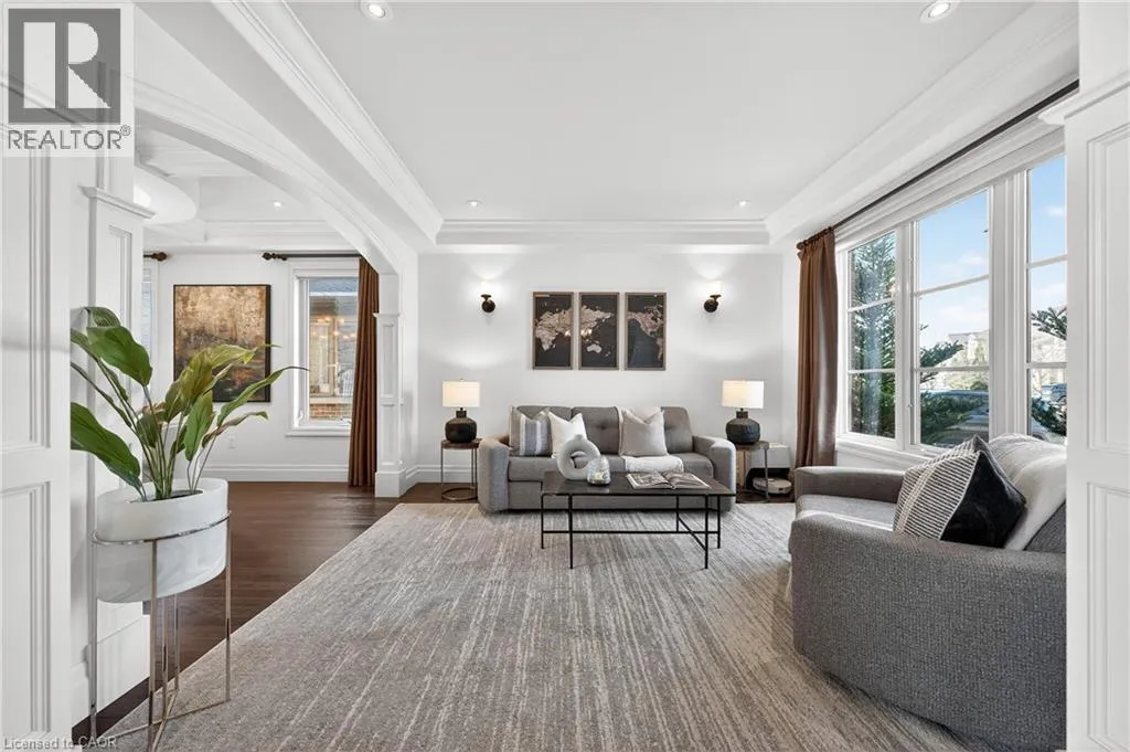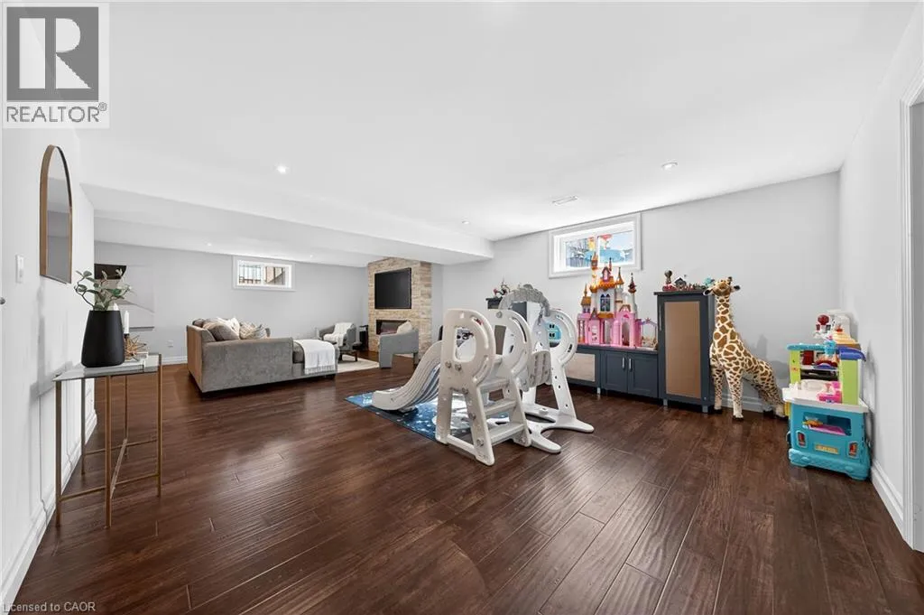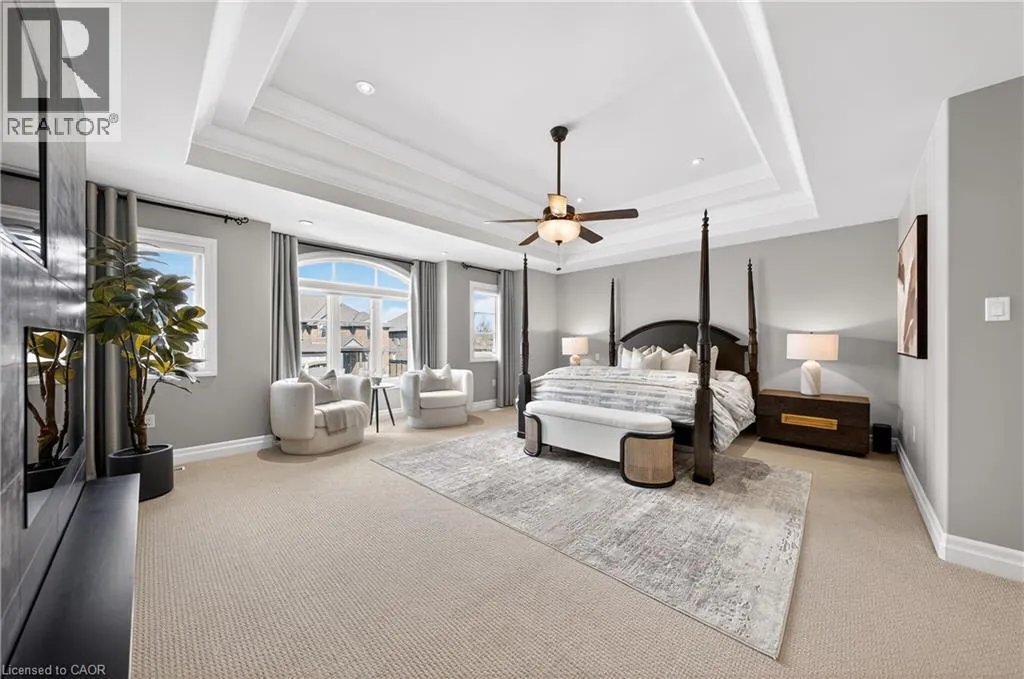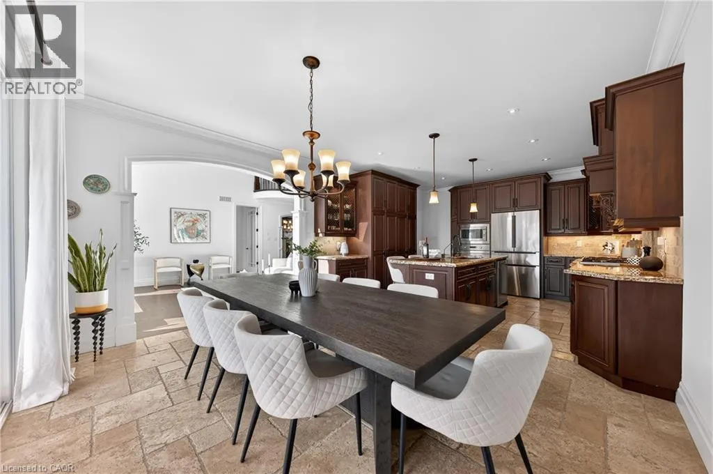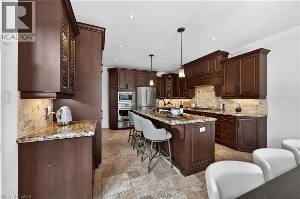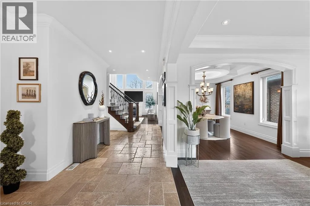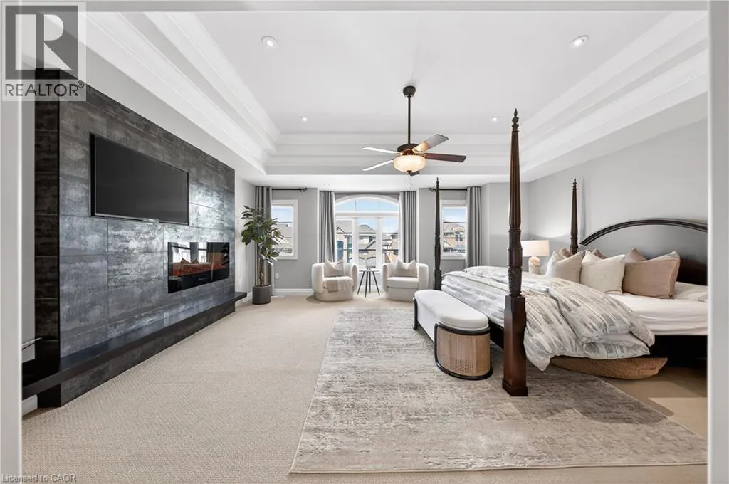 MILLENNIUM BLVD TO OAK PARK DRIVE, THEN DEERFOOT TRAIL. This is your Carriage Crossing dream home. Welcome to 325 Deerfoot Trail, located in one of Waterlooâs most sought-after communities. This custom Klondike-built home offers 5,300+ SF of beautifully finished living space, with 4+1 bedrms & 4 bathrms, thoughtfully designed with quality craftsmanship, timeless finishes, & functional family living. Step inside the grand entry opening to formal living & dining rms with coffered ceilings & detailed millwork. The home is anchored by a stunning 2-storey great rm with gas fireplace & oversized windows flooding the space with natural light. The well-appointed Chervin kitchen features a lrg centre island, granite counters, premium appliances, under-cabinet lighting, backsplash, & a bright breakfast area with walkout to the backyard & covered back porch. The main flr also offers a private office/potential 6th bedrm, mudrm/laundry rm, & powder rm. Upstairs offers 4 spacious bedrms, including an expansive primary retreat with tray ceiling, feature wall with linear electric fireplace, sitting area, walk-in closet with built-ins, additional dual closets, & a 5-pce ensuite with dual vanities, tiled glass shower, & jacuzzi tub. 3 additional sizable bedrms & a 5-pce main bathrm complete the upper level. The fully finished lower level features a lrg rec rm with electric fireplace, additional bedrm, 3-pce bathrm, wet bar (in-law potential), & ample storage. Hardwood & natural stone flring, custom ceiling treatments, crown moulding, curated millwork, & custom window coverings throughout. Set on a professionally landscaped lot with interlocking driveway, covered back porch, expansive patio, & fully fenced private backyard with mature trees, hardscaping, & perennial gardens. Located just mins to top-rated schools, U of W & Wilfrid Laurier University, RIM Park, Grey Silo Golf Club, trails, St. Jacobs Market, & major commuter routes. A rare opportunity to own a beautifully finished home in one of Waterlooâs most desirable neighbourhoods. (id:27476)