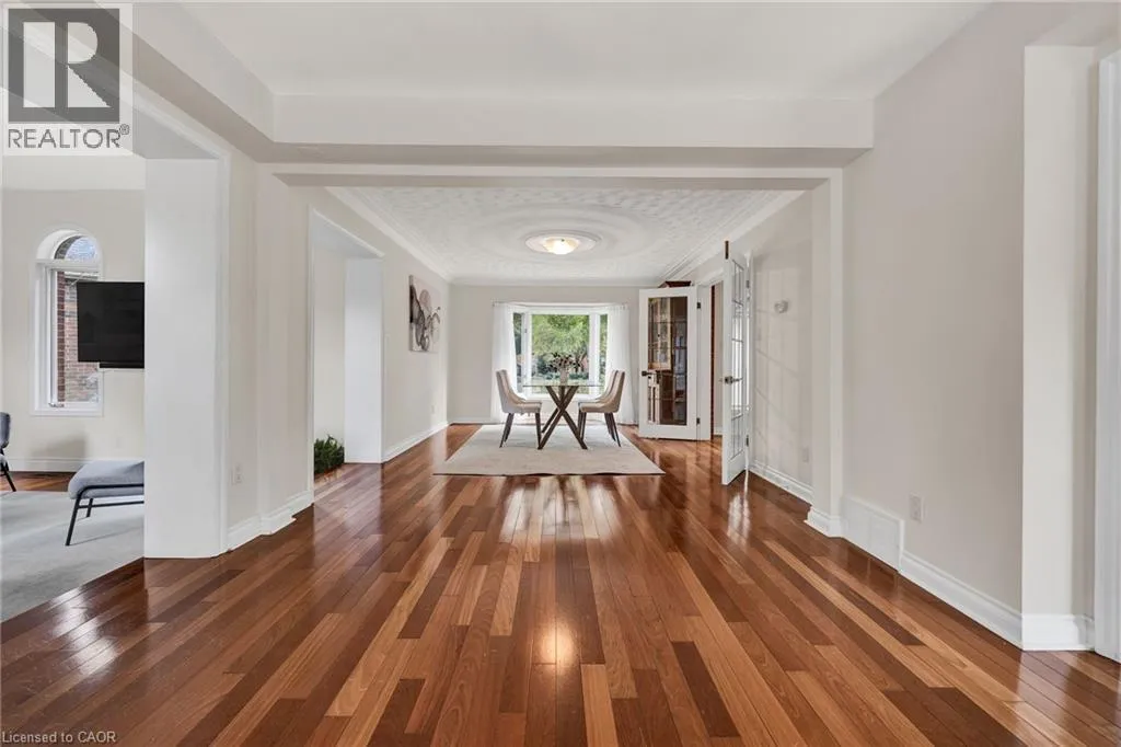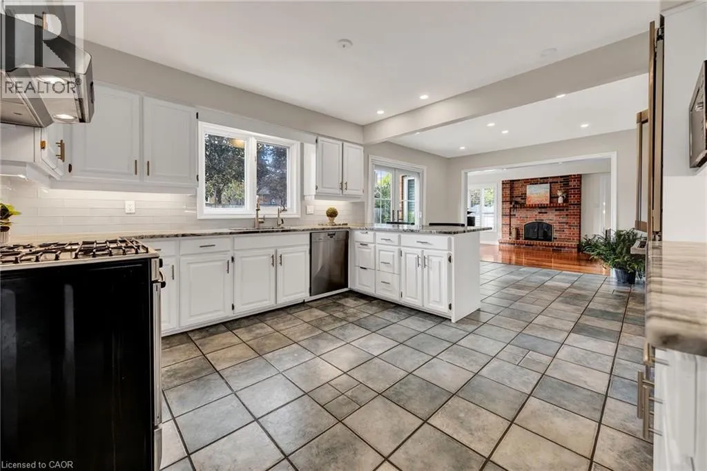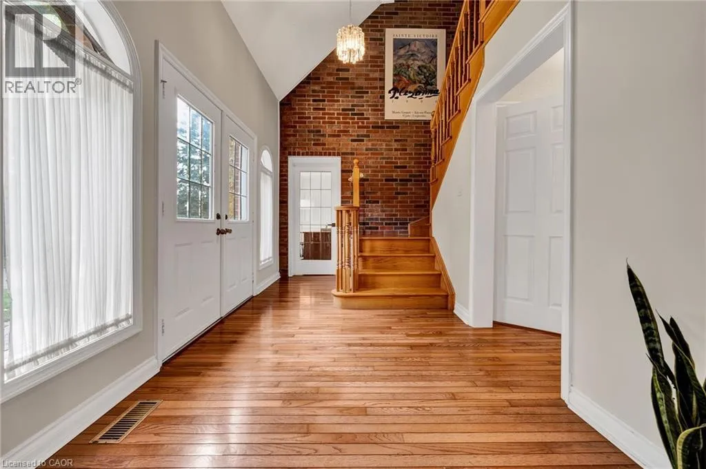 Deer Run Dr to Grey Squirrel Pl Welcome to 250 Grey Squirrel Placeâan elegant family home tucked along a quiet crescent in one of Waterlooâs most desirable neighbourhoods, Colonial Acres, where warmth, space, and sophistication meet. Set on a rare double lot, this property offers exceptional outdoor space and privacy. The moment you step inside, youâre met with a stunning view of the main floor: a vaulted 14-foot ceiling in the front living room anchored by a wood-burning fireplace and framed by gleaming hardwood floors. A second wood fireplace enhances the cozy atmosphere in the main-level family room, while a dedicated office provides a quiet workspace. The mudroom/laundry room, conveniently located by the garage entrance, adds everyday practicality. The kitchen is designed for connection and function, featuring granite counters, Bosch stove and Miele appliances, and a walkout to the brand-new 2025 tiered wood deck overlooking the double-sized backyardâcomplete with a sports court, two Honeycrisp apple trees, and a peach tree, offering the perfect space for family play, gardening, or summer entertaining. Upstairs, youâll find four generous bedrooms, including a serene primary suite with an ensuite, along with a second full washroom. The fully finished basement extends your living space with two additional bedrooms, a three-piece bathroom, and a large recreation room perfect for movie nights or weekend gatherings. With a double-car garage, interlock driveway, and mature trees surrounding the property, every detail speaks to comfort and quality. Ideally located minutes from Uptown Waterloo, the University of Waterloo, and Waterloo Park, with quick access to The Boardwalk, RIM Park, and Grey Silo Golf Course, this home offers the perfect balance of family living and professional convenience. (id:27476)