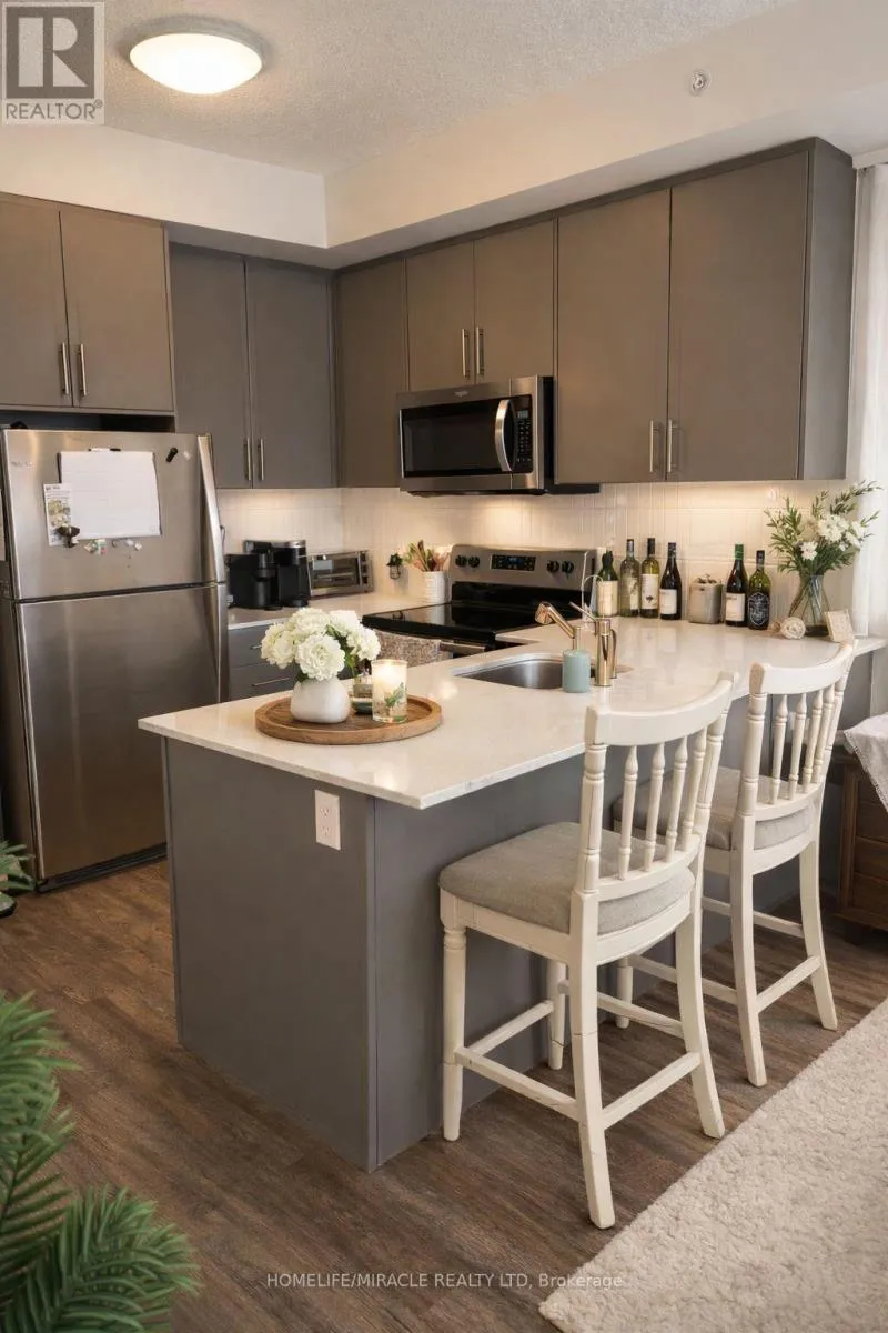 ROGER ST/ MOORE AVE Welcome to Spurline Common Condos, where modern living meets everyday convenience. This beautifully designed one-bedroom, one-bathroom suite offers over 600 square feet of functional and stylish space, perfect for comfortable urban living. Step inside to a bright, open-concept layout that feels spacious and inviting. Expansive floor-to-ceiling windows flood the home with natural light, creating a warm and airy atmosphere. The contemporary kitchen features sleek stainless steel appliances and laminate flooring, blending style with practicality. Enjoy the added convenience of in-suite laundry and the peace of mind that comes with a well- managed, secure building. Residents can take full advantage of premium amenities, including a party and meeting room for entertaining, secure bike storage, and ample visitor parking for guests. Ideally located for both professionals and students, you are just minutes from Grand River Hospital, Google's Waterloo headquarters, major highways, and public transit. Top educational institutions such as Wilfrid Laurier University, the University of Waterloo, and Conestoga College are all within close proximity. Whether you are a first-time buyer, investor, or looking to downsize, this condo offers the perfect blend of comfort, style, and location. An opportunity like this does not come often. (id:27476)