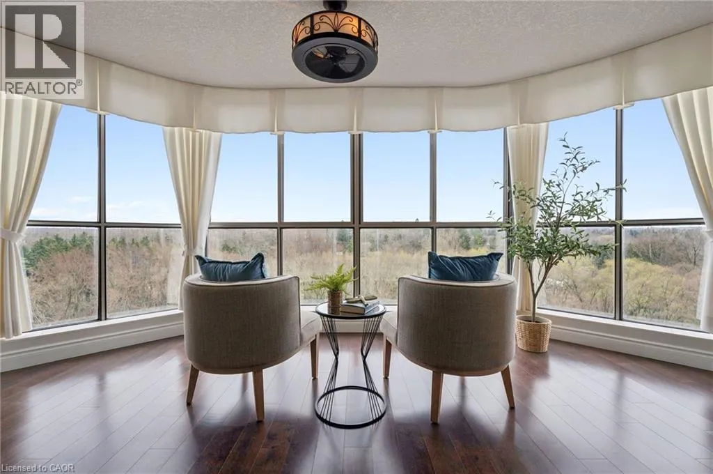 Westmount Rd N ** OPEN HOUSE SAT. APR. 18 from 2-4pm & SUN. APR. 19 from 11am-1pm** Unbelievable views from this 10th floor corner unit at the Beechmount, located in Waterloo. This gorgeous 2 bedroom, 2 bath condo has been lovingly updated with custom cabinetry, crown moulding, engineered hardwood and stone countertops. This extremely spacious unit offers a large living room, dining room (or office), plus a sunroom that has floor to ceiling windows overlooking the trees and ravine below. The expansive primary bedroom has a stunning ensuite bathroom with large glass shower and beautiful built-in closets. Heated floors in both bathrooms and the main bathroom features a clever built-in laundry area. The second bedroom is perfect for a home office, guest room or den. Patio doors from the 2nd bedroom lead to the covered balcony with northwest views over the city. 2 underground parking spaces, plus a private locker. Building amenities include a guest suite, workshop, party room, billiard room, library, car wash bay, bicycle storage and lots of visitor parking. You can't beat this location with proximity to Waterloo Park, the University of Waterloo, Westmount Plaza, and public transit. (id:27476)