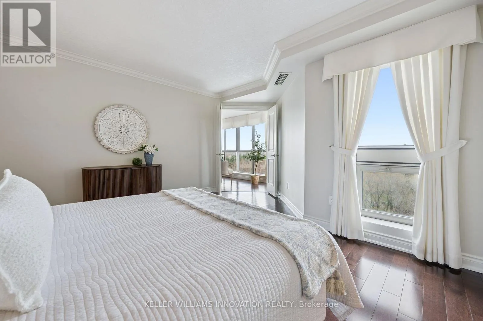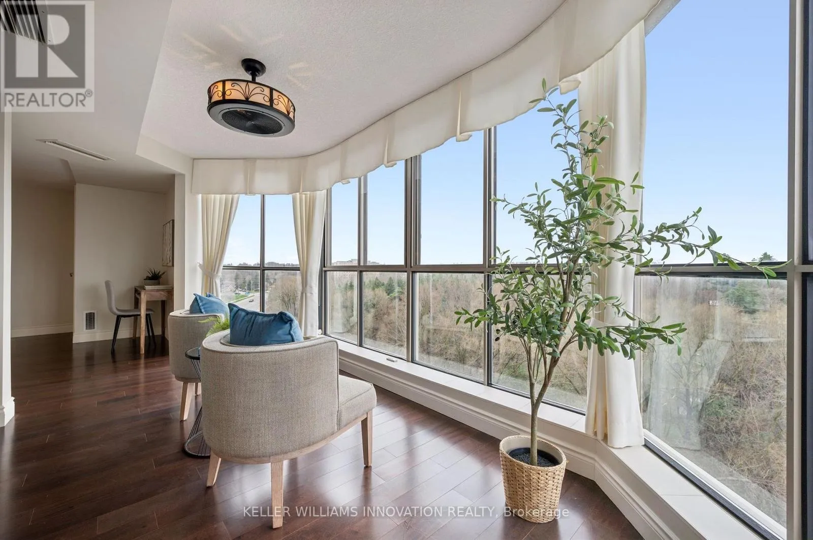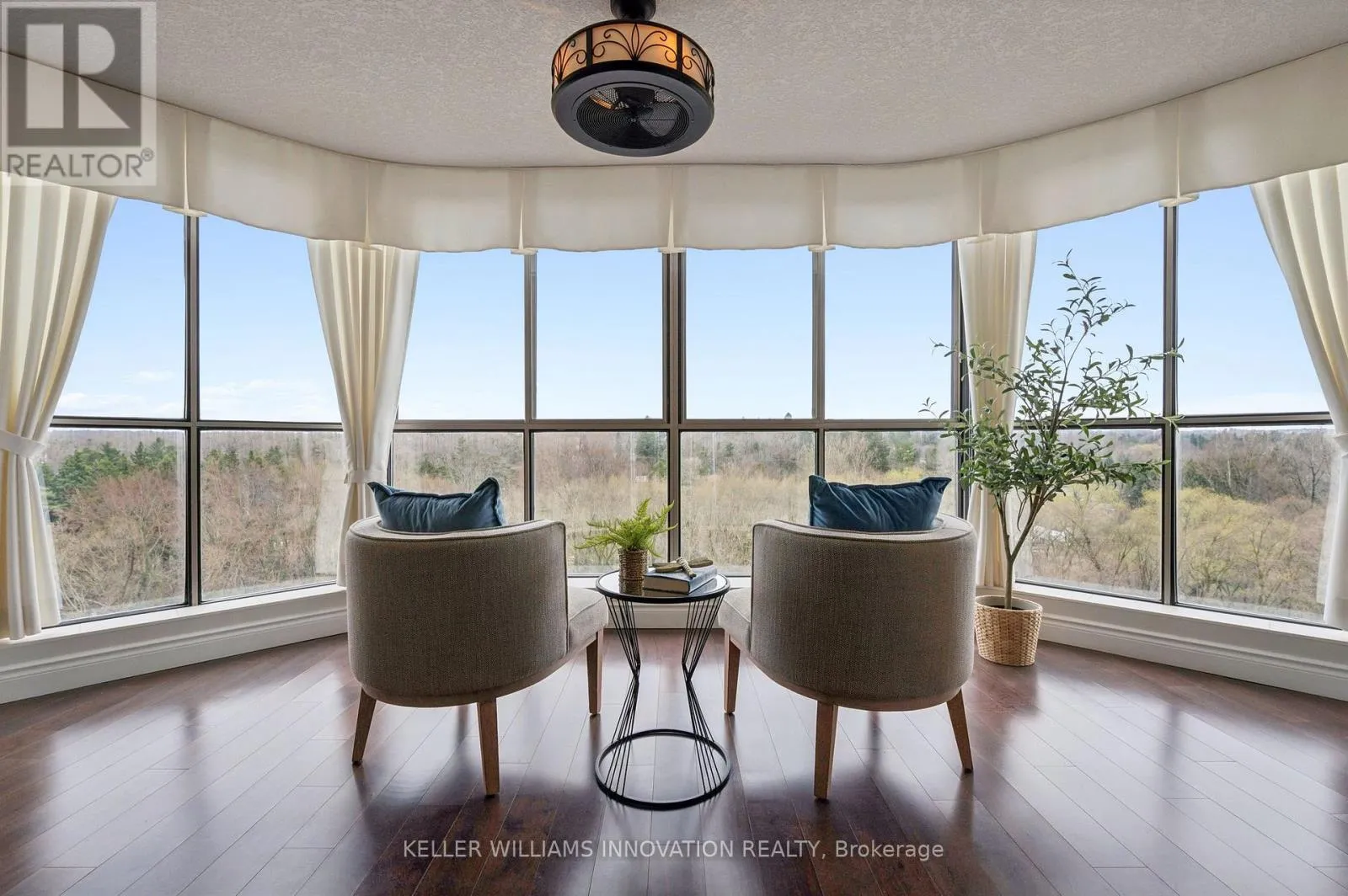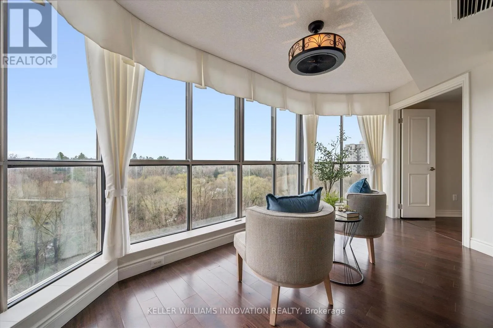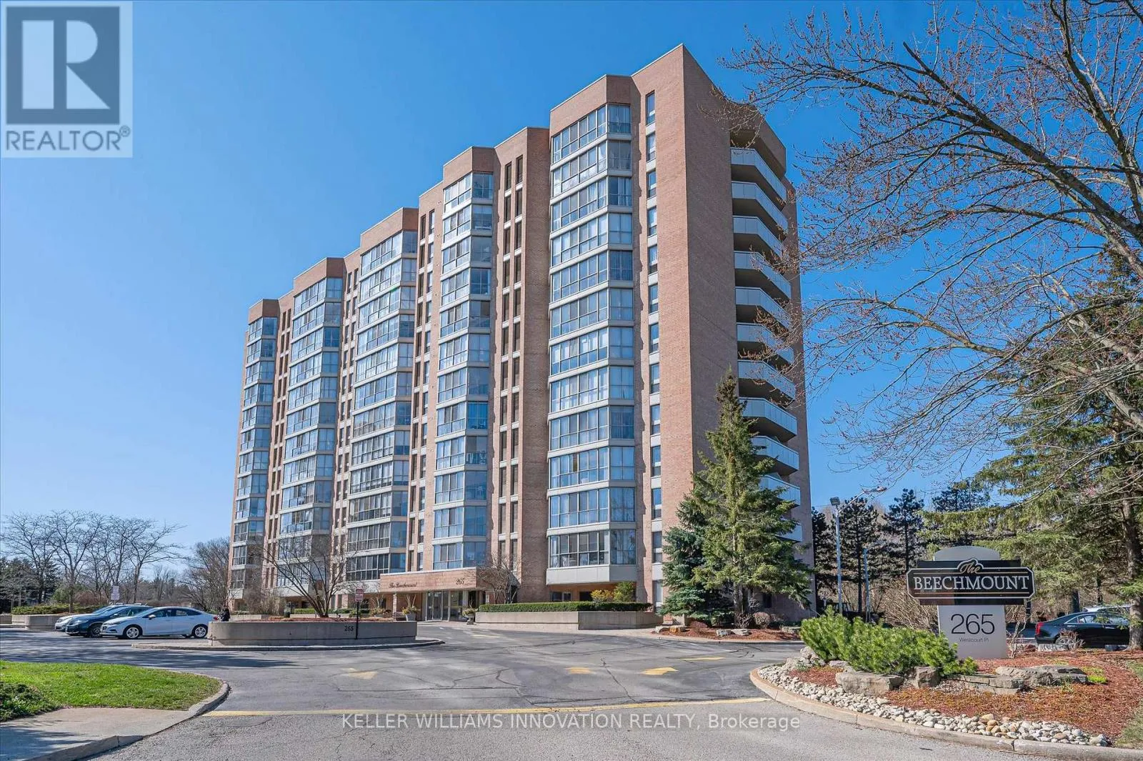 Westmount Rd N Unbelievable views from this 10th floor corner unit at the Beechmount, located in Waterloo. This gorgeous 2 bedroom, 2 bath condo has been lovingly updated with custom cabinetry, crown moulding, engineered hardwood and stone countertops. This extremely spacious unit offers a large living room, dining room (or office), plus a sunroom that has floor to ceiling windows overlooking the trees and ravine below. The expansive primary bedroom has a stunning ensuite bathroom with large glass shower and beautiful built-in closets. Heated floors in both bathrooms and the main bathroom features a clever built-in laundry area. The second bedroom is perfect for a home office, guest room or den. Patio doors from the 2nd bedroom lead to the covered balcony with northwest views over the city. 2 underground parking spaces, plus a private locker. Building amenities include a guest suite, workshop, party room, billiard room, library, car wash bay, bicycle storage and lots of visitor parking. You can't beat this location with proximity to Waterloo Park, the University of Waterloo, Westmount Plaza, and public transit. (id:27476)