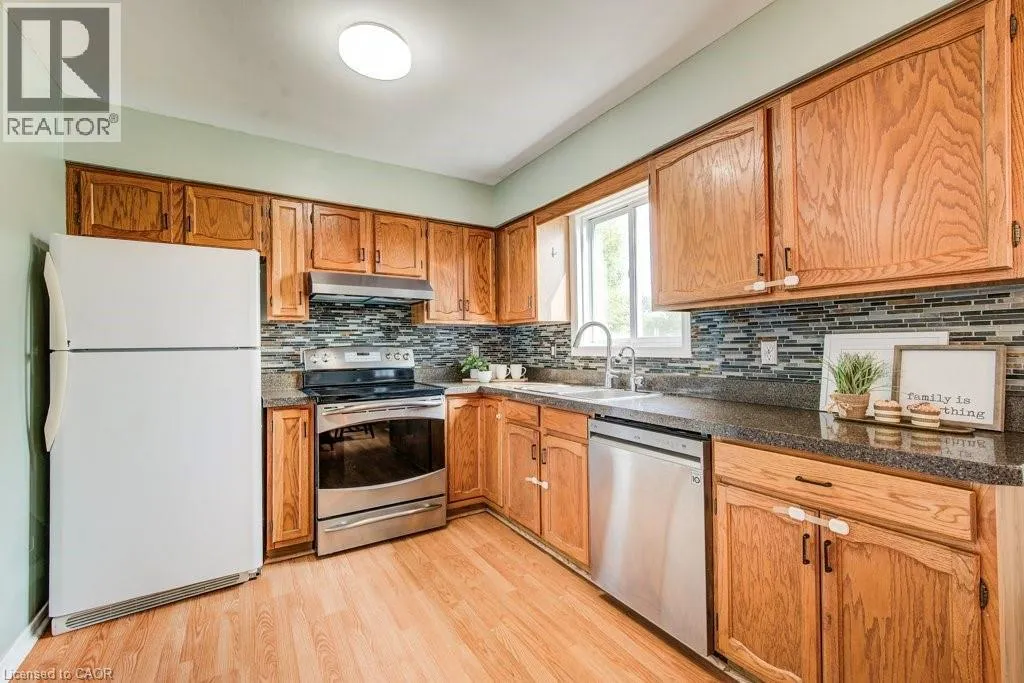 East on University Ave W from Ira Needles Blvd, North on Baker St, West on Grange Cres Discover this charming 2-storey FREEHOLD TOWNHOUSE nestled in one of Waterlooâs most sought-after neighborhoods â an ideal opportunity for first-time home buyers or savvy investors! Step inside to an inviting open-concept main floor filled with natural light, highlighted by a beautifully renovated kitchen complete with granite countertops, ample cupboard space, a stylish tile backsplash, dishwasher (2021), and brand new rangehood (2025). The spacious living area offers the perfect spot to relax or entertain. Upstairs, youâll find two generously sized, carpeted bedrooms and a well-appointed 4-piece bathroom â offering comfort and functionality. The lower level adds even more value, featuring a 2-piece bath, laundry area, utility room, and a storage/family room with direct access to the garage. Step outside to a fully fenced, extra-deep backyard â a perfect play space for kids or room to garden and entertain. This property has been thoughtfully updated to enhance its appeal and move-in readiness. The entire home was recently painted in modern, neutral tones that create a clean and inviting atmosphere throughout. In addition, all light fixtures have been upgraded, bringing a modern touch and enhanced lighting to every room, complemented by fresh new paint throughout the house. With a single-car garage and a driveway that easily fits two additional vehicles, parking will never be an issue. This home is just moments from the Boardwalk Shopping Centre, top-rated schools, beautiful parks, and scenic trails. This move-in-ready gem is nestled in a welcoming communityâreach out for more details! (id:27476)