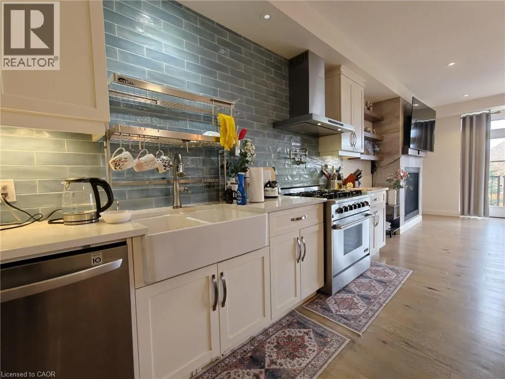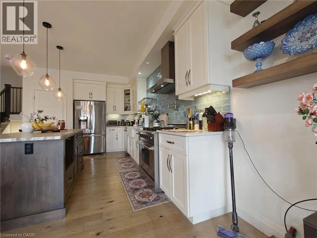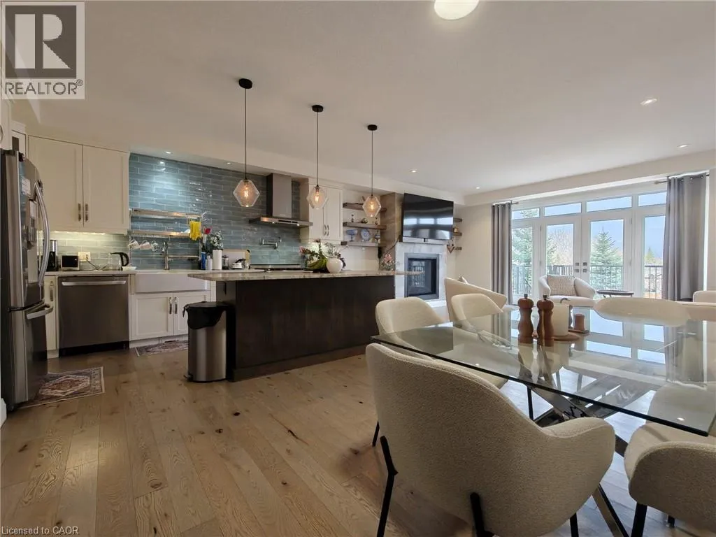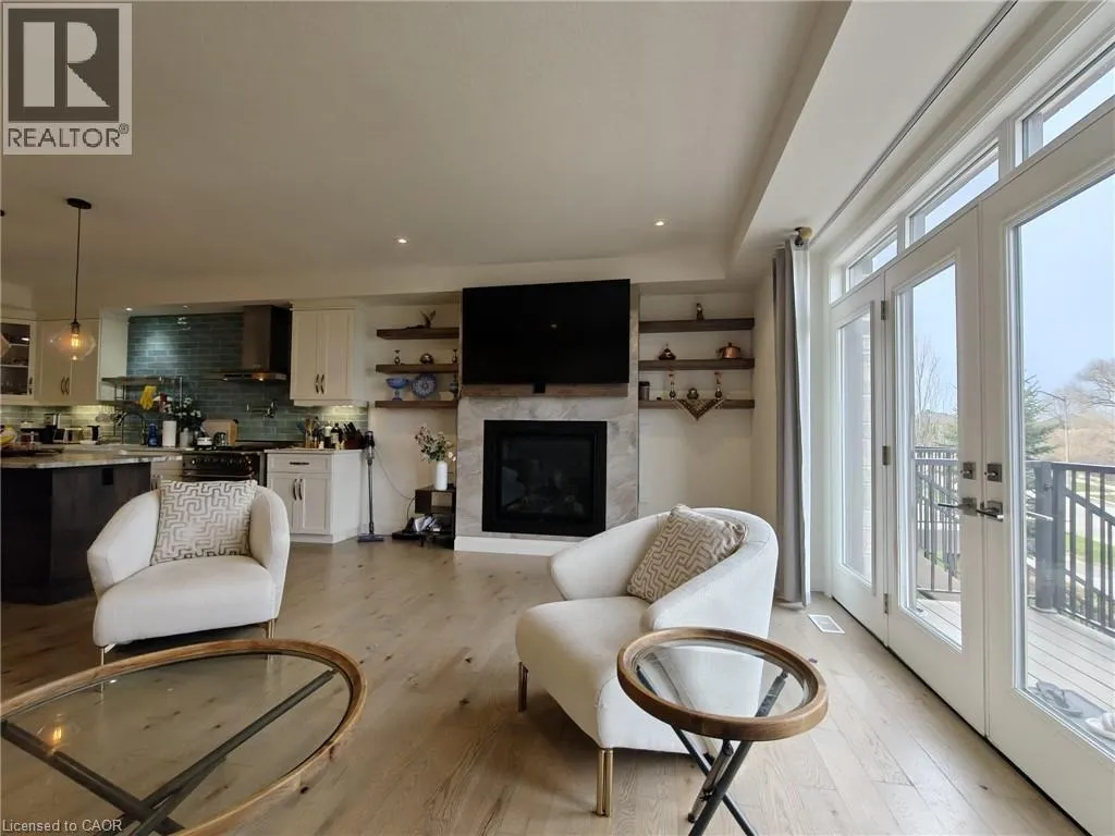 University Ave to Millenium Blvd. to Crossgate Blvd. to Grey Silo Rd. Welcome to this executive 3-bedroom, 3-bathroom condo townhome in the highly desirable Grey Silo community of East Waterloo. This well-maintained home offers over 2,000 sq. ft. of bright, open-concept living space with hardwood flooring throughout the main level. The modern kitchen features granite countertops, stainless steel appliances, and a large island, opening to a spacious living and dining area with a cozy gas fireplace. Walk out to a private deck with BBQ hookup, perfect for entertaining. Upstairs includes a generous primary bedroom with walk-in closet and ensuite, plus two additional bedrooms and an additional full bathroom. Located steps to RIM Park, Grey Silo Golf Course, Grand River trails, and minutes to shopping, schools, and Highway 85. Ideal for professionals or families seeking comfort, convenience, and a premium lifestyle setting. (id:27476)