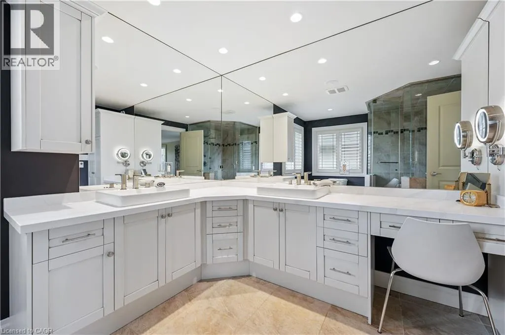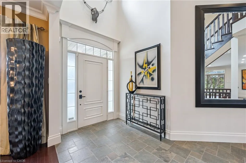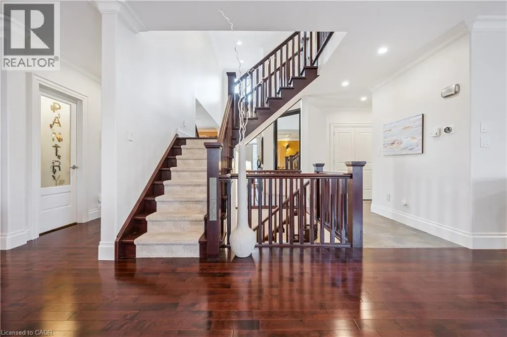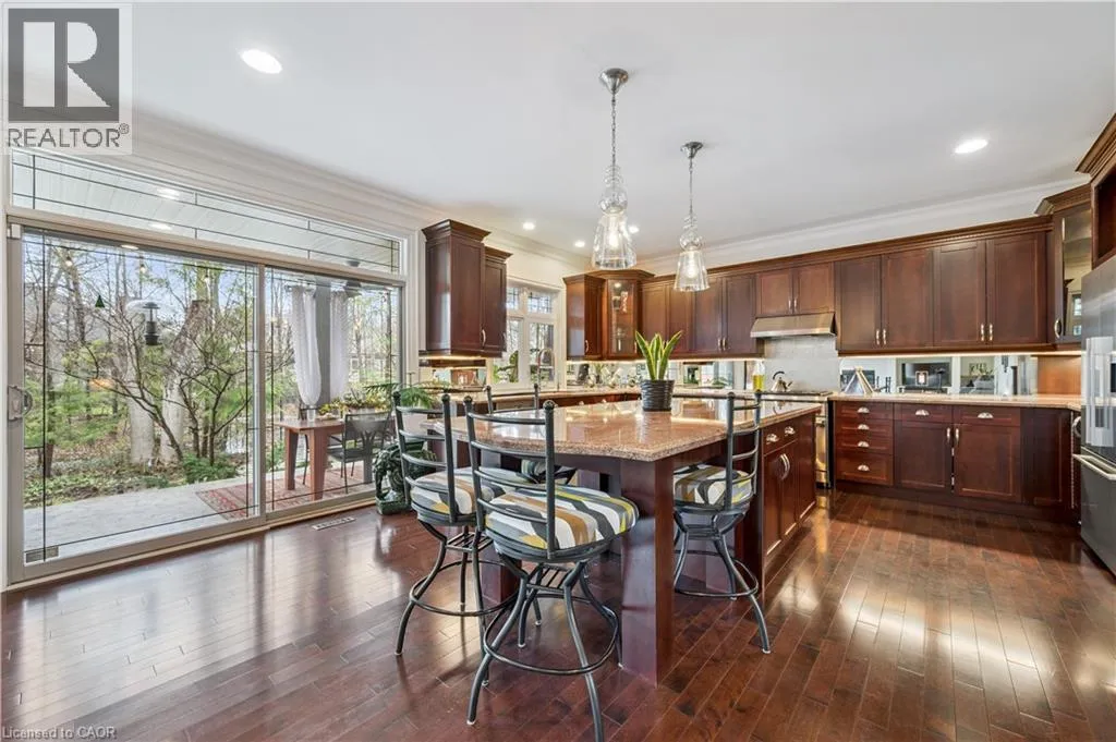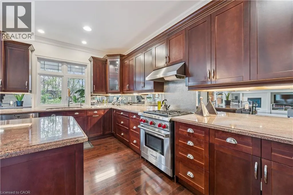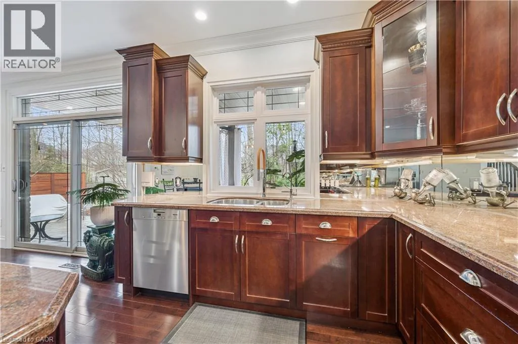 OFF CHESAPEAKE Welcome home! This executive 4 bedroom builderâs home was constructed and designed with quality in mind. 4,224.29sq.ft. of living space, features stunning stone, brick and wood siding finishes, giving it old world charm. Upgraded millwork, crown moulding, baseboards and solid core doors. An inviting entry, accented with a grand solid oak staircase open to all floors. A unique and functional layout. Transom windows and skylight. Lovely hardwood floors and tasteful ceramic tiles brings warmth and style. Gourmet kitchen, offers an abundance of cabinetry, granite counter tops. Reverse osmosis, luxurious appliances. Large pantry with etched glass door, built-in shelves. Contemporary Great Room, featuring a professionally designed gas fireplace and built-in shelving. Formal Dining room located off foyer. Powder room updated in 2025. Double door entry to primary bedroom, provides privacy. Walk-in closet features built-in jewellery box and integrated shelving. Ensuite updated in 2025, featuring large walk-in steam shower and sitting bench. Tastefully selected hardware, quartz counter tops, sinks and taps. Second floor bathrooms have heated floors. Second level main bathroom also renovated in 2025. Large tub and custom glass doors. Spacious second bedroom has double closets and a large sitting bench includes storage. Second storey laundry room, built-in sink, cabinet, shelving and linen closet. Entertaining at itâs best, basement rec room includes bar sink and fridge, large storage room and cold cellar. Workshop has upgraded electrical circuits. In floor radiant hot water heated flooring in finished areas of basement and engineered flooring. 4x8 foot pool table and accessories. Insulated garage and storage rooms. Professionally landscaped flag stone detailing, mature trees, low maintenance perennial flower beds. 2025 paving stone patio, stone window well to egress window, custom designed cedar privacy partitions, large covered porch and aggregate driveway. (id:27476)