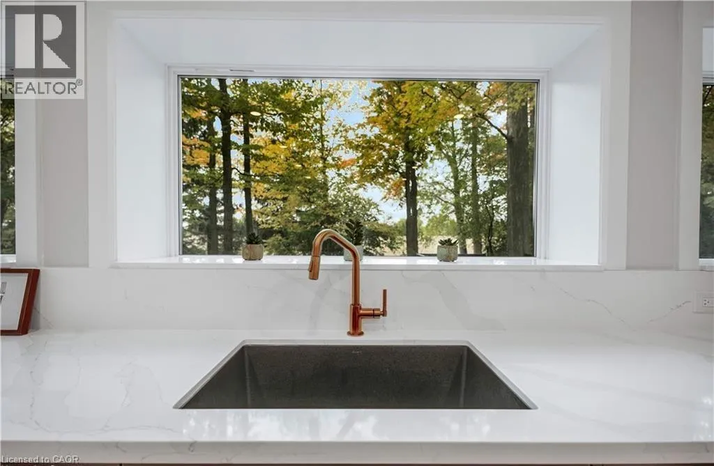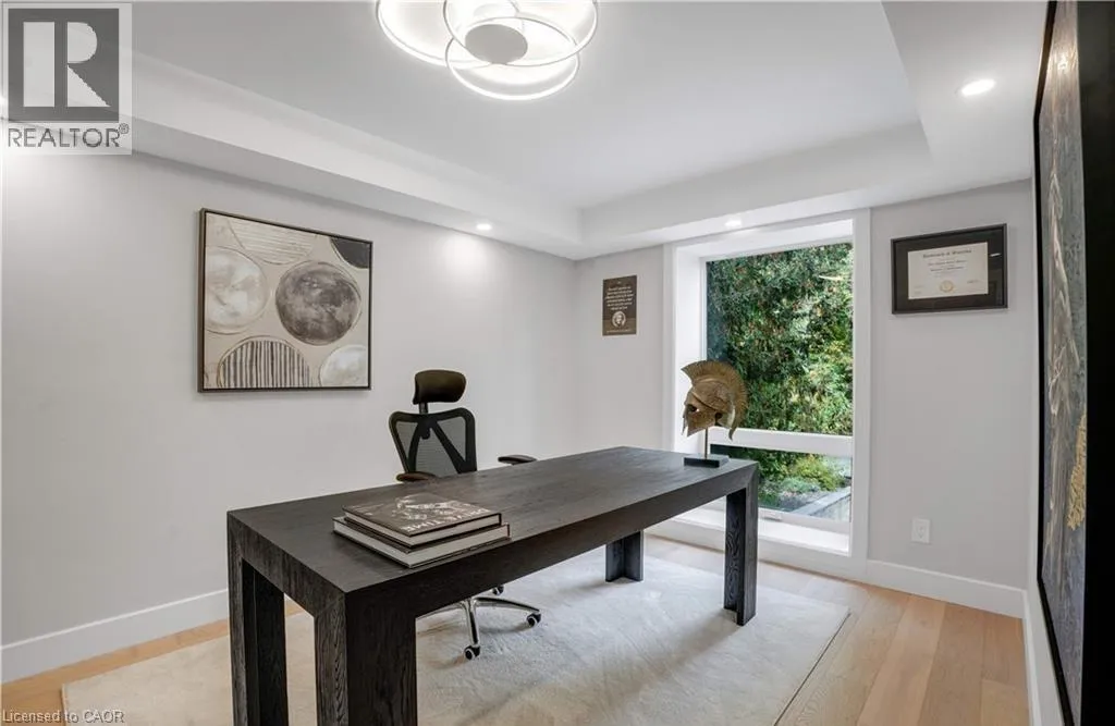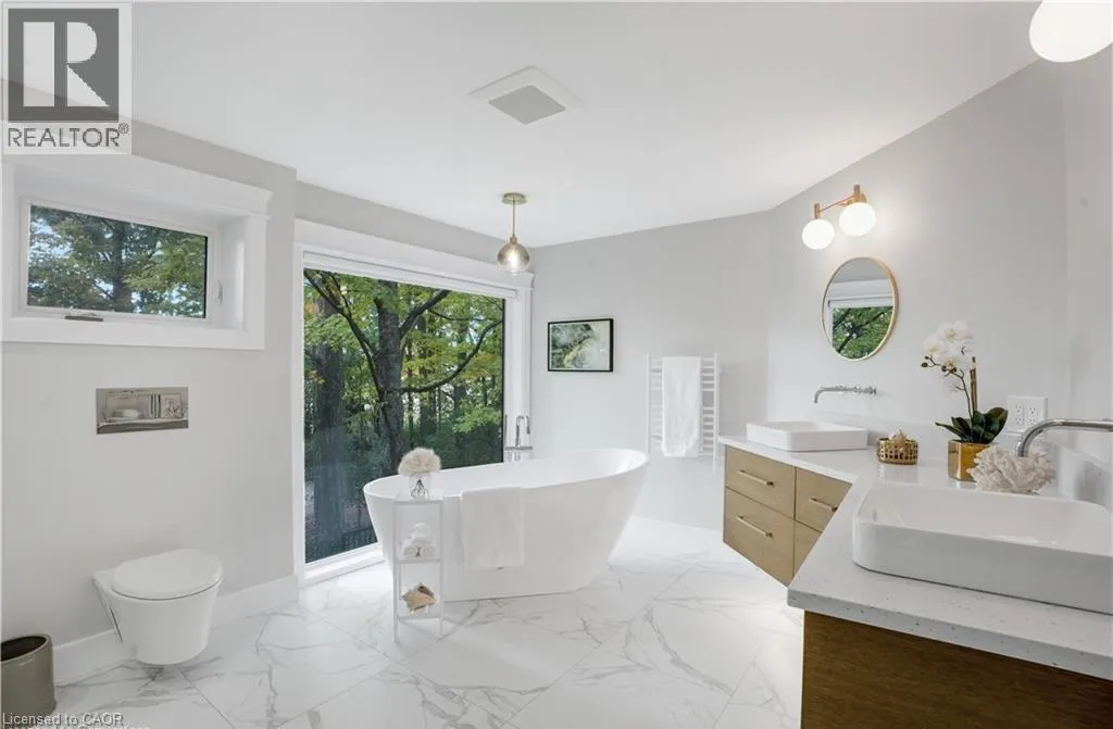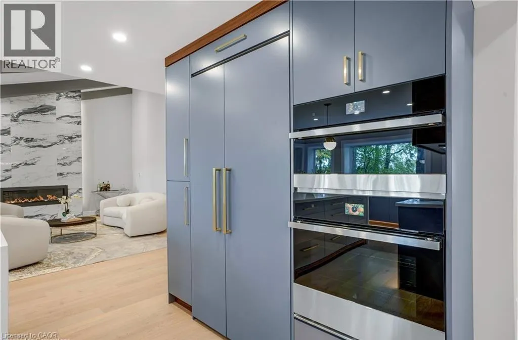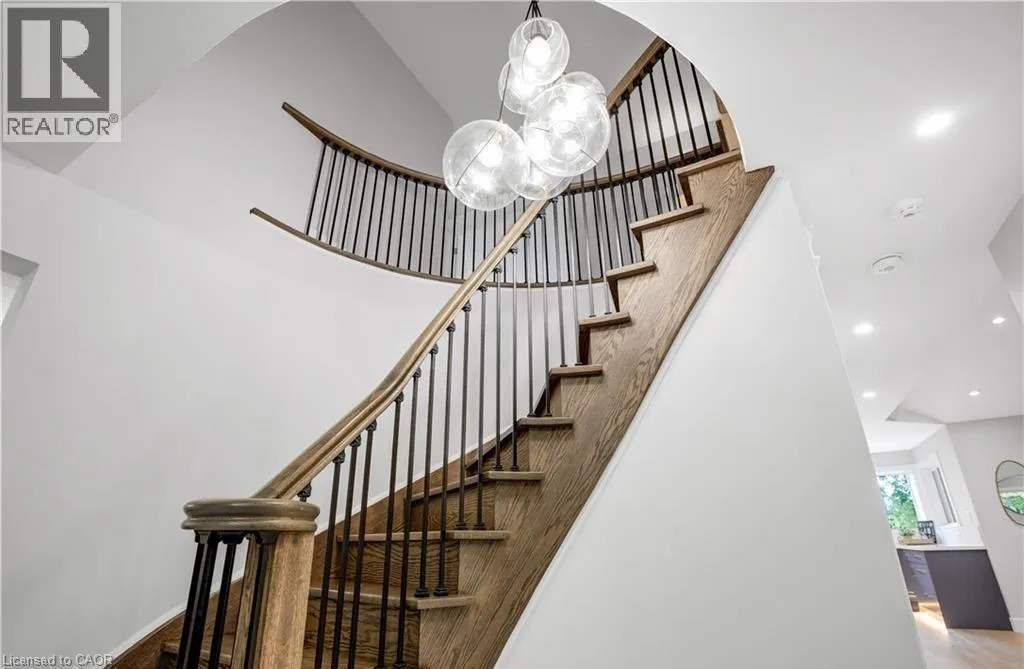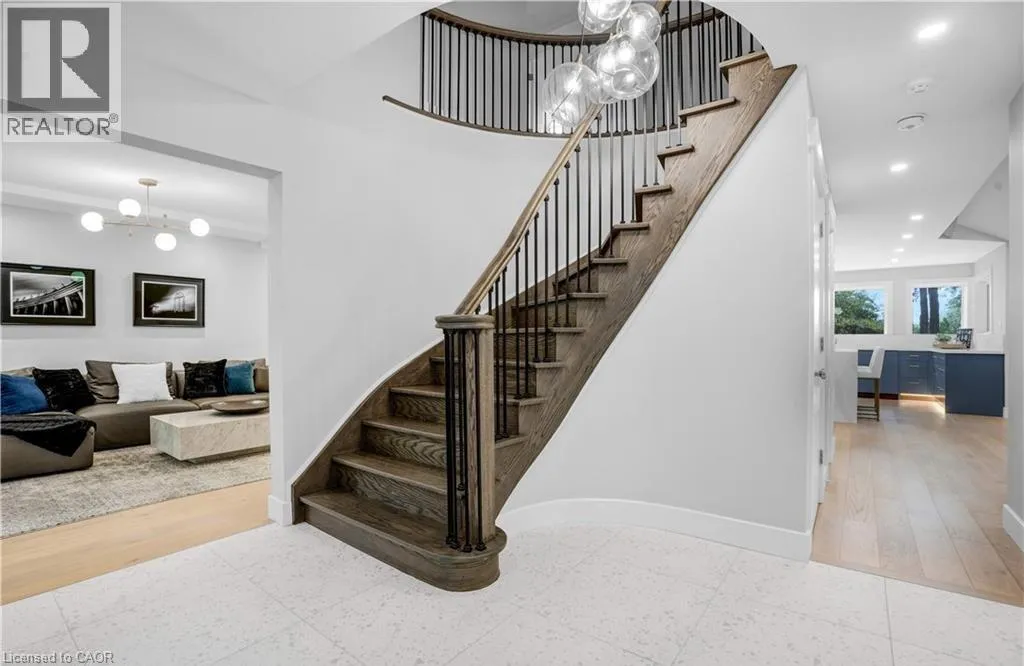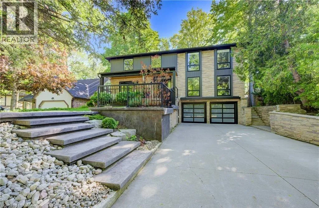 Bearinger Rd. to Corrie Cres. Welcome to a truly exceptional home on a quiet street in one of the areaâs most sought-after neighbourhoods. Extensively renovated, this residence offers a refined mix of modern design, quality finishes, and functional living space. From the striking exterior and landscaped approach to the dramatic curved staircase inside, every detail has been carefully considered. The main level is designed for both daily living and entertaining, featuring oversized windows, designer lighting, a formal living room, and a separate dining room. The chefâs kitchen is a standout, with custom cabinetry, JennAir appliances, a pot filler, waterfall island with seating, and integrated storage. The family room includes a floor-to-ceiling fireplace, while a dedicated home office, laundry room, and powder room complete the level. Upstairs, youâll find four spacious bedrooms with hardwood flooring, floor-to-ceiling windows, and large closets. The primary suite offers a custom walk-in closet and a spa-inspired ensuite with heated floors, glass shower, and freestanding soaker tub. A second ensuite and cheater bath add comfort and convenience for family and guests. The finished lower level adds excellent flexibility with a large rec room, bar, fifth bedroom, full bathroom, and separate entrance, making it ideal for guests, teens, or extended family. Outside, mature trees and well-planned outdoor living areas create a peaceful space to relax or entertain. This is a rare opportunity to own a turnkey luxury home in an established neighbourhood. (id:27476)