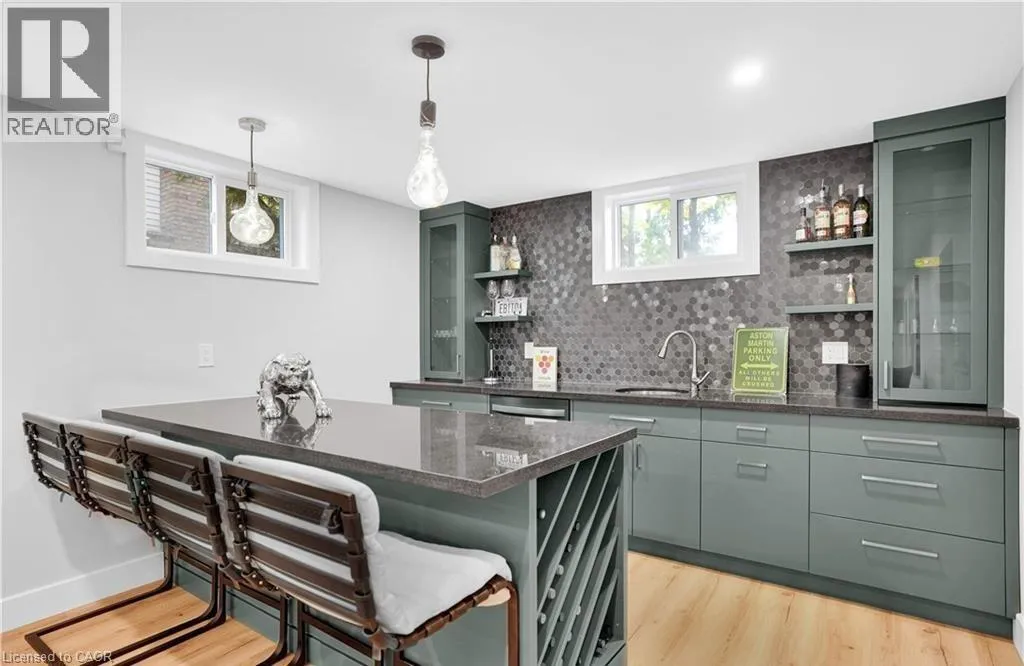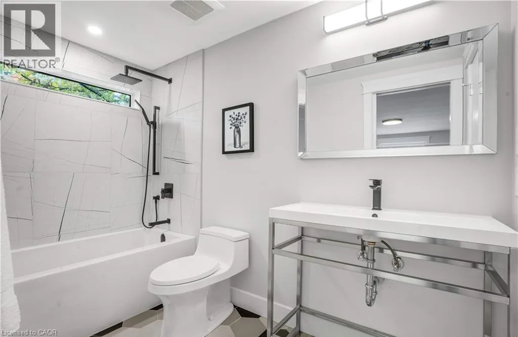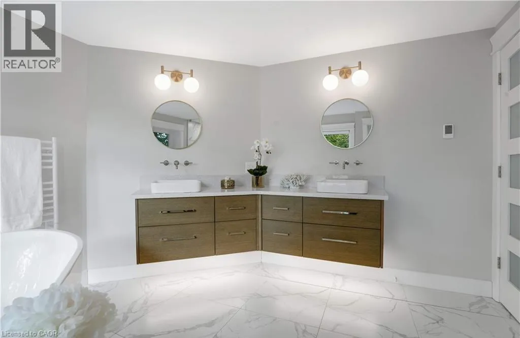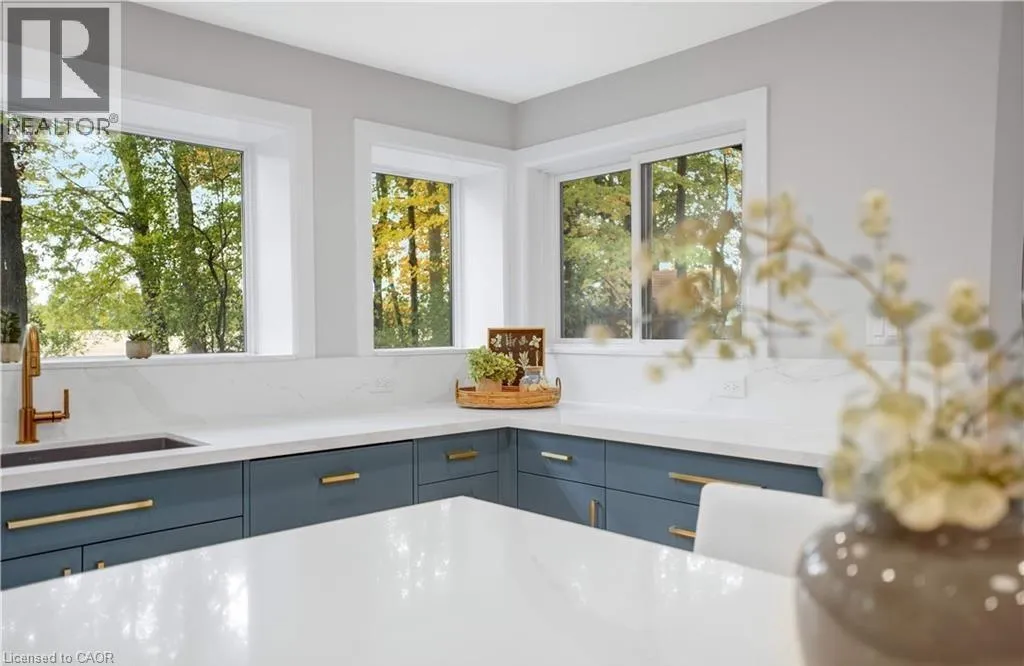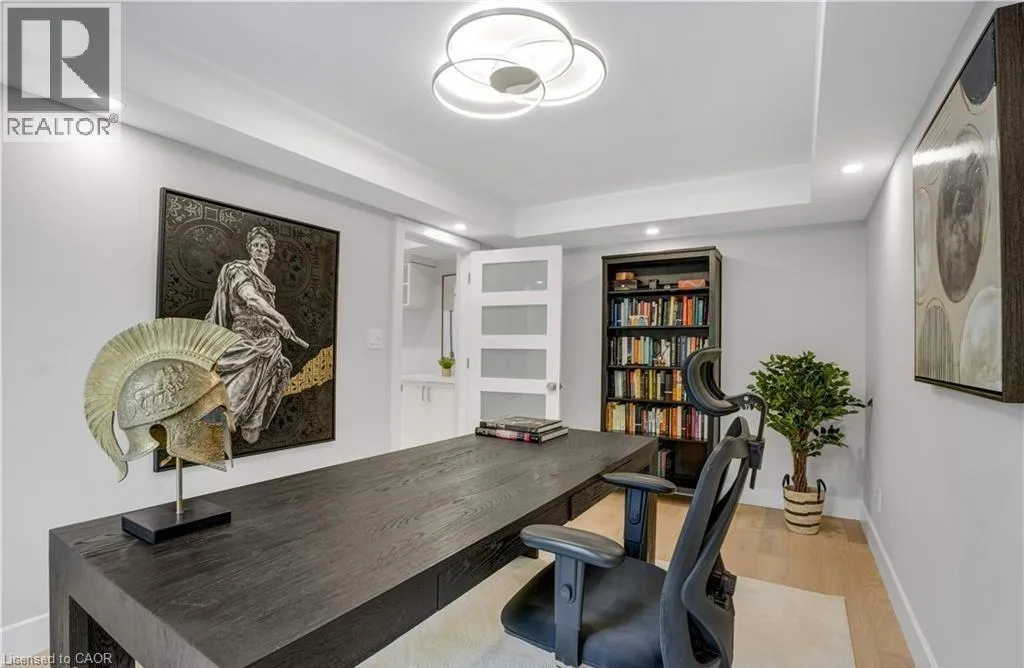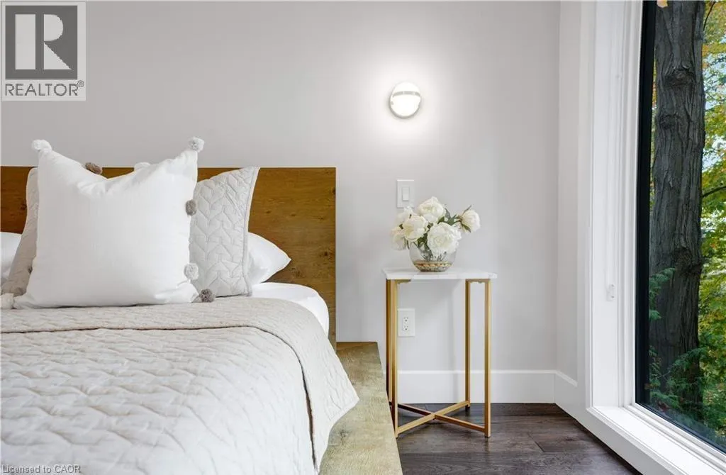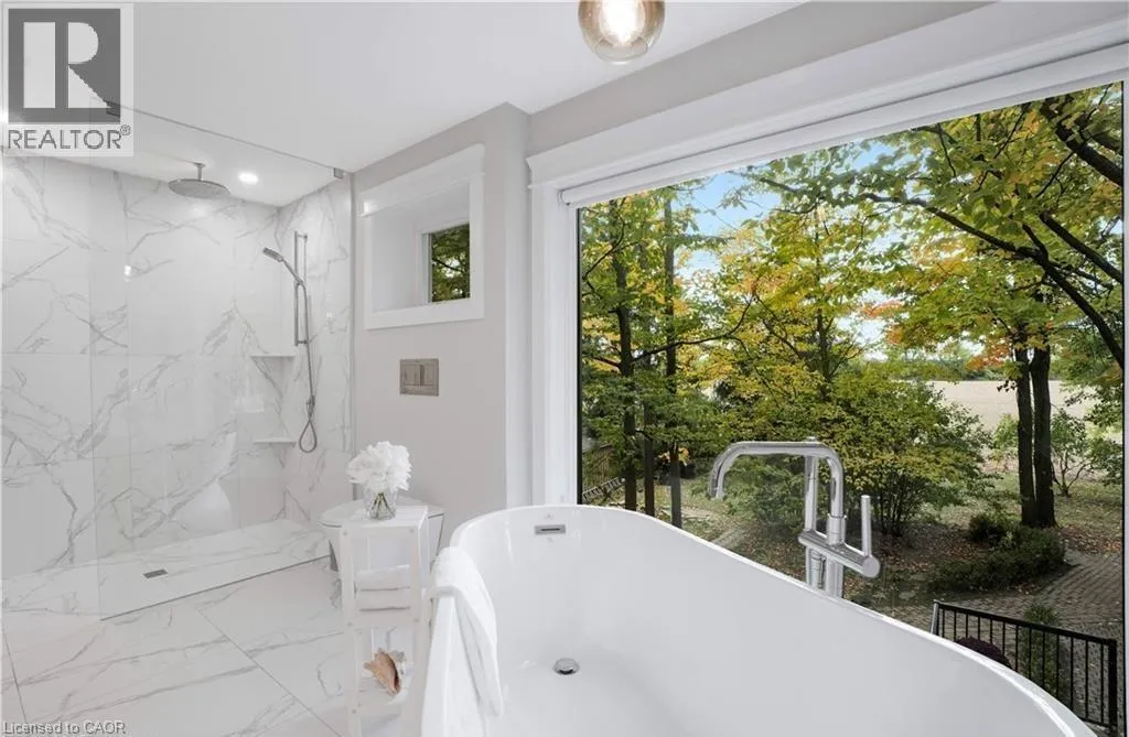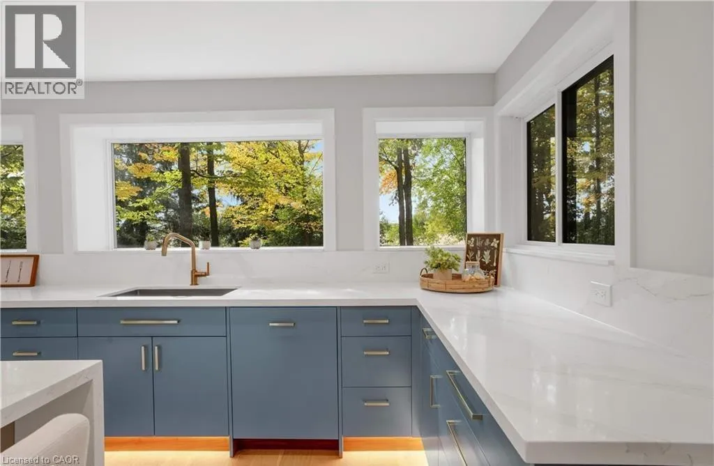 Bearinger Rd. to Corrie Cres. Welcome to a truly exceptional home on a quiet street in one of the areaâs most sought-after neighbourhoods. Extensively renovated, this residence offers a refined mix of modern design, quality finishes, and functional living space. From the striking exterior and landscaped approach to the dramatic curved staircase inside, every detail has been carefully considered. The main level is designed for both daily living and entertaining, featuring oversized windows, designer lighting, a formal living room, and a separate dining room. The chefâs kitchen is a standout, with custom cabinetry, JennAir appliances, a pot filler, waterfall island with seating, and integrated storage. The family room includes a floor-to-ceiling fireplace, while a dedicated home office, laundry room, and powder room complete the level. Upstairs, youâll find four spacious bedrooms with hardwood flooring, floor-to-ceiling windows, and large closets. The primary suite offers a custom walk-in closet and a spa-inspired ensuite with heated floors, glass shower, and freestanding soaker tub. A second ensuite and cheater bath add comfort and convenience for family and guests. The finished lower level adds excellent flexibility with a large rec room, bar, fifth bedroom, full bathroom, and separate entrance, making it ideal for guests, teens, or extended family. Outside, mature trees and well-planned outdoor living areas create a peaceful space to relax or entertain. This is a rare opportunity to own a turnkey luxury home in an established neighbourhood. (id:27476)