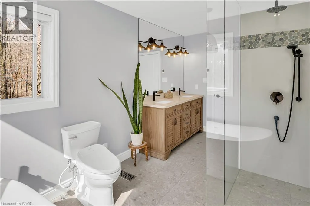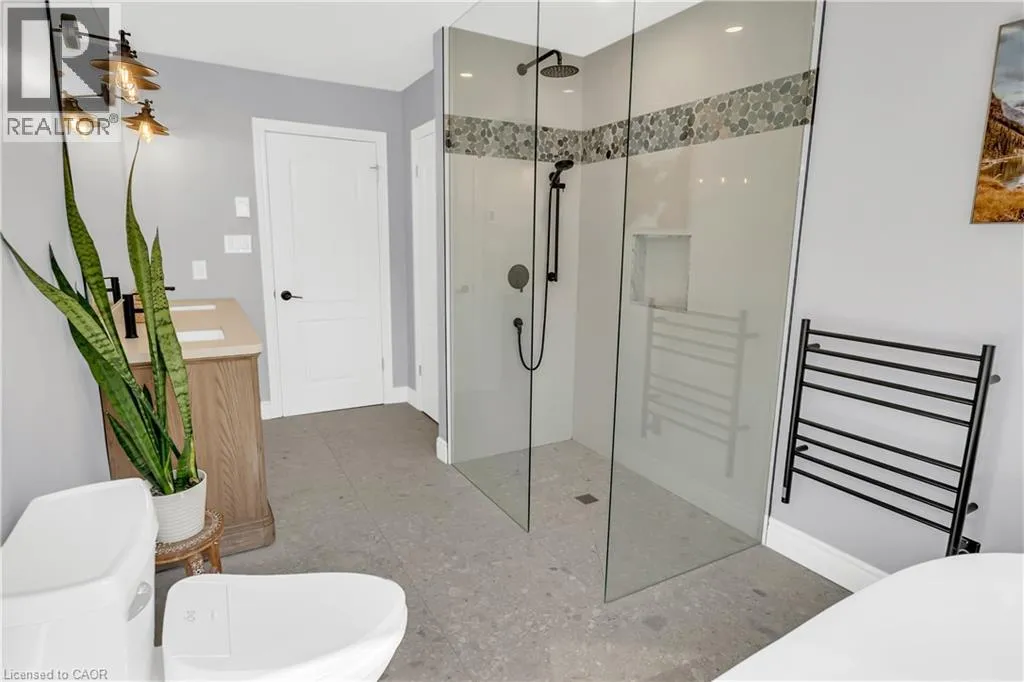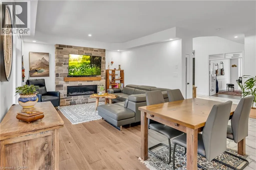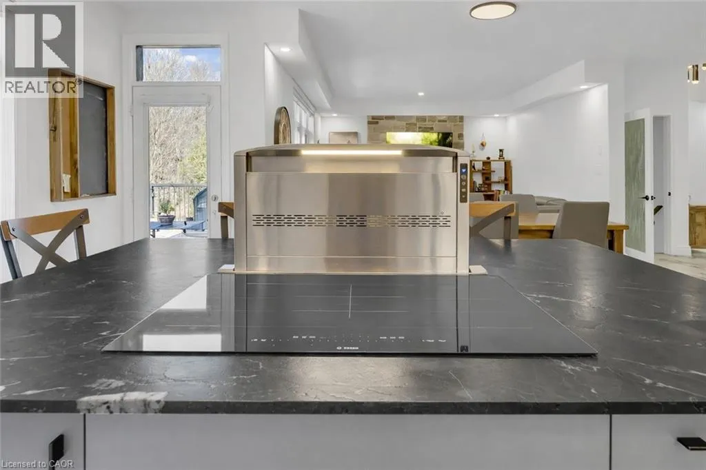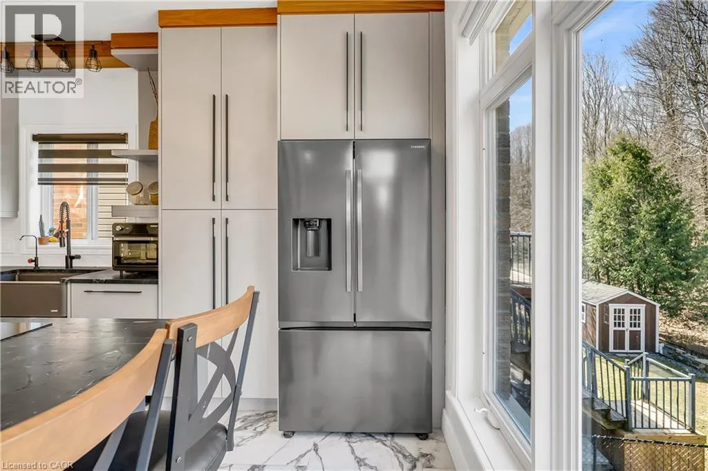 Laurelwood and White Cedar Ave Welcome to 361 Red Osier Road, Waterloo, an exceptional luxury residence in the highly sought-after Community of Waterloo. Backing onto protected greenspace with a fully finished walkout basement, this stunning home set the tone for the elegance, from the moment you arrive. Step inside through The Brand-new Front door, the main level, reconstructed in 2021, features open-concept layout with 9ft ceilings, premium hardwood flooring, modern tiles, designer light fixtures, California ceilings, zebra blinds and beautifully updated finishes throughout. All windows at the front are triple pane (2024). The heart of the home is the custom chefâs kitchen (2021), showcasing a leathered granite countertop, heated floors, Built-in stainless-steel appliances, Bosch induction stove, BEST downdraft range hood, custom dovetail cabinetry, pull-out shelves with an updated fridge in 2023. A separate formal dining room with elegant, coffered ceilings create the perfect setting for meals and family gatherings. The Family room offers rich hardwood floors and cozy gas fireplace. Stylish powder room and laundry room with ample storage completes the Main level. Upstairs, there are 3 generous bedrooms including a luxurious primary retreat with walk-in closet and spa-inspired 5pc ensuite with heated floors, along with an additional beautifully updated 5pc family bath. The fully finished walkout basement extends the living space beautifully with heated floors offering a large Rec room, games area, newly constructed Wood Burning Stove and 4th bedroom. Step outside to your private retreat featuring a renovated Deck with glass railings, 2 patios, winding staircase and a custom-built shed, all surrounded by trees and tranquil views. Extensively upgraded with newer furnace, heat pump, roof, updated electricals, this remarkable home is perfectly located near top-rated schools, parks, trails, universities and everyday amenities. It is a rare opportunity not to be missed. Book your showing today! (id:27476)