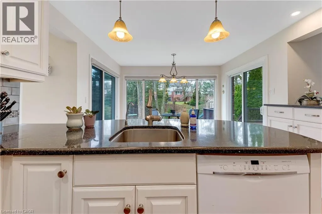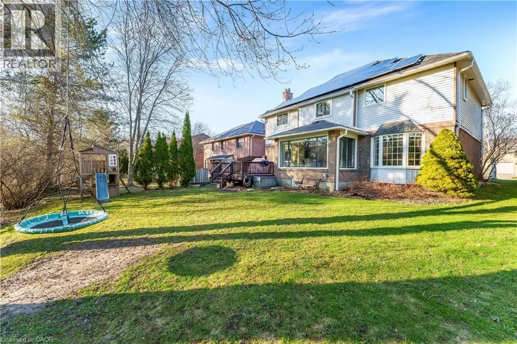 Keats way To Ashberry place Welcome to 109 Ashberry Place, Waterloo: an executive home in the sought-after community of Beechwood West. Nestled on a quiet court, this well-maintained 5-bedroom, 4-bathroom home offers the perfect setting for growing families. Impressive curb appeal begins with 6-car parking (2 garage, 4 driveway), spacious UNILOCK brick driveway and premium eavestrough Leaf Guard protection. Step inside to a thoughtfully designed layout with rich hardwood flooring throughout. The bright living room features a wall of windows creating a warm, inviting atmosphere. The updated eat-in kitchen comes fully equipped with appliances, quality finishes and breakfast bar seating. Adjacent is the formal dining room, ideal for family dinners and entertaining. The cozy main floor family room with gas fireplace is perfect for movie nights, game nights or relaxing evenings. A convenient laundry room with garage access completes the main level. Upstairs offers 4 generously sized bedrooms, including a spacious primary retreat with walk-in closet and private ensuite bath. The additional 3 bedrooms are served by updated 3pc bathrooms. The finished lower level adds a large rec room, extra bedroom and 3pc bathroom, ideal for multi-generational living. Step outside through sliding doors to your private backyard oasis. A Large deck, mature trees and expansive green space create the perfect retreat for summer fun or for children or pets to enjoy. This move-in ready home has been updated with a 50-year shingles roof, R-60 attic insulation, water softener (2025), tankless water heater (2023), furnace and A/C (2023), garage door opener (2022), and dishwasher (2019). A valuable bonus is the solar panel system, offering efficiency and potential income. Beechwood West ownership includes pool with lifeguards, free swimming lessons, tennis courts, basketball courts, skating rink and a vibrant family-friendly atmosphere. This is more than a home, itâs a lifestyle. Book your private showing today! (id:27476)