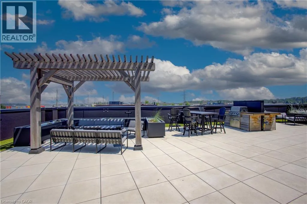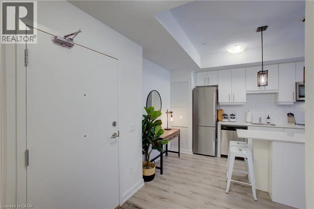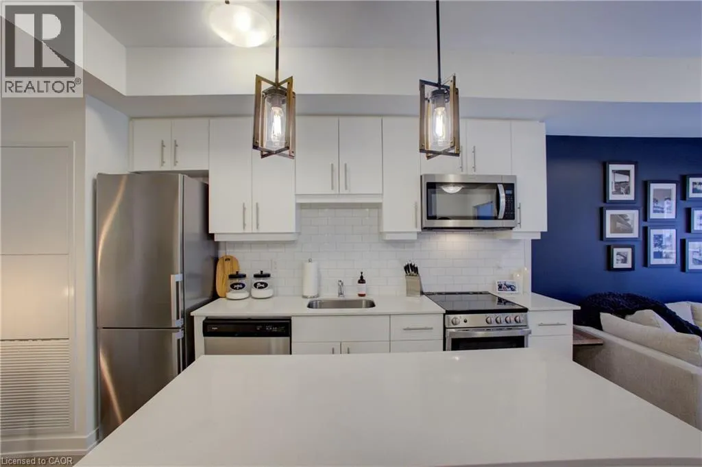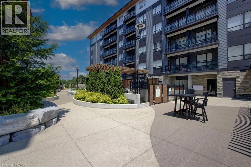 Corner of Northfield Dr. E & Bridge St. Blackstone Condominiums where modern design meets convenient lifestyle living. Owner Occupied, CARPET FREE one-bedroom suite offering an oversized four-piece bathroom and the convenience of an in-suite stackable washer and dryer, and REMOTE CUSTOM BLINDS. This impeccably tidy home, features a contemporary open layout with views of the tranquil courtyard from both the living room and the bedroom. A sliding PATIO DOOR leading to your private balcony, over 62 square fee, perfect for enjoying your morning coffee. The bright white kitchen is thoughtfully designed with UP-GRAGED QUARTZ countertops, stainless steel appliances, a classic subway TILE BACKSPLASH, a LARGE ISLAND with extra storage, hanging PENDANT LIGHTS over the island for your convenience. The bathroom is generously sized and includes a modern tub and shower combination, with plenty of space for comfort. This suite also includes an exclusively owned UNDERGROUND PARKING space and private STORAGE LOCKER for added value. Residents of Blackstone enjoy a wide range of shared amenities designed for a modern lifestyle, including a pet washing station, secure bike storage, a fully equipped gym, co-working lounge, spacious party room, a rooftop terrace in building 255, and beautifully designed outdoor gathering spaces between buildings 247 and 243. High-speed Rogers internet is included in the condo fees, offering even more convenience. Ideally located just steps from Brown's Social House and other local shops and services, this community is minutes from Conestoga Mall, the ION light rail transit line, and scenic walking trails. With quick access to St.Jacobs, RIM Park, Grey Silo Golf Course, Wilfrid Laurier University, University of Waterloo, and Conestoga College, this condo is perfectly situated for anyone looking to enjoy the convenience of Waterloo. Perfect for the professional, down sizer, investor or first time buyer. (id:27476)