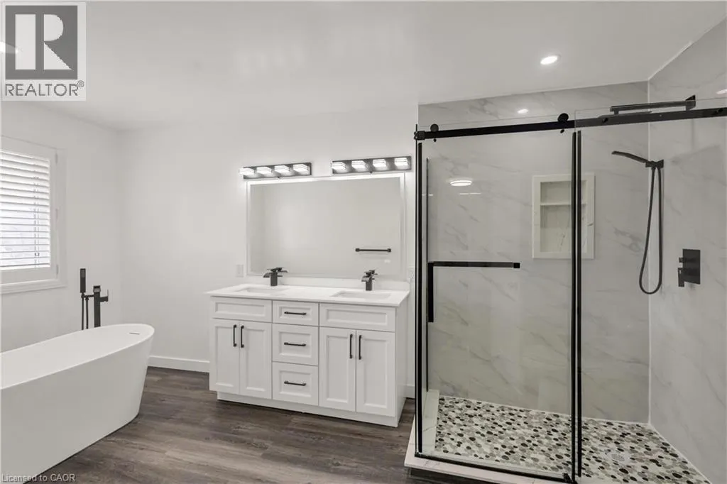 Erbsville Crt & Paradise Cres Welcome to 579 Paradise Cres, a stunning executive home where space meets luxury on an impressive 76 x 111 ft premium lotârarely found in this sought-after Waterloo neighbourhood. Boasting over 4,500 sqft of finished living space above and below grade, this home is designed for the largest of families. Featuring a versatile 4+2 bedroom layout, this property is truly all about space. Completely carpet-free throughoutâenjoy easy maintenance. Step into the heart of the homeâa completely modern kitchen featuring sleek quartz countertops and stainless steel kitchen appliances. Recent upgrades ensure a move-in-ready experience with high-end finishes throughout. Situated in the catchment of Laurel Heights Secondary School, one of Waterloo Region's highest-ranked high schools with an impressive 8.4/10 rating from the Fraser Institute . This location offers exceptional educational opportunities for your family. Enjoy the ultimate convenience of living just minutes from Boardwalk Shopping Centre, home to premier brands and everyday essentials such as Walmart, HomeSense, Marshalls, Sport Check and nearby amenities include restaurants, banks, coffee shops, medical centres and professional servicesâeverything you need is right around the corner. Stock up in bulk and save at Costco Wholesale Just Minutes Away. Don't miss this rare opportunity to own a spacious, carpet-free, sprawling home in one of Waterloo's most convenient and family-friendly locations. (Virtual staging photos are included in this listing) (id:27476)