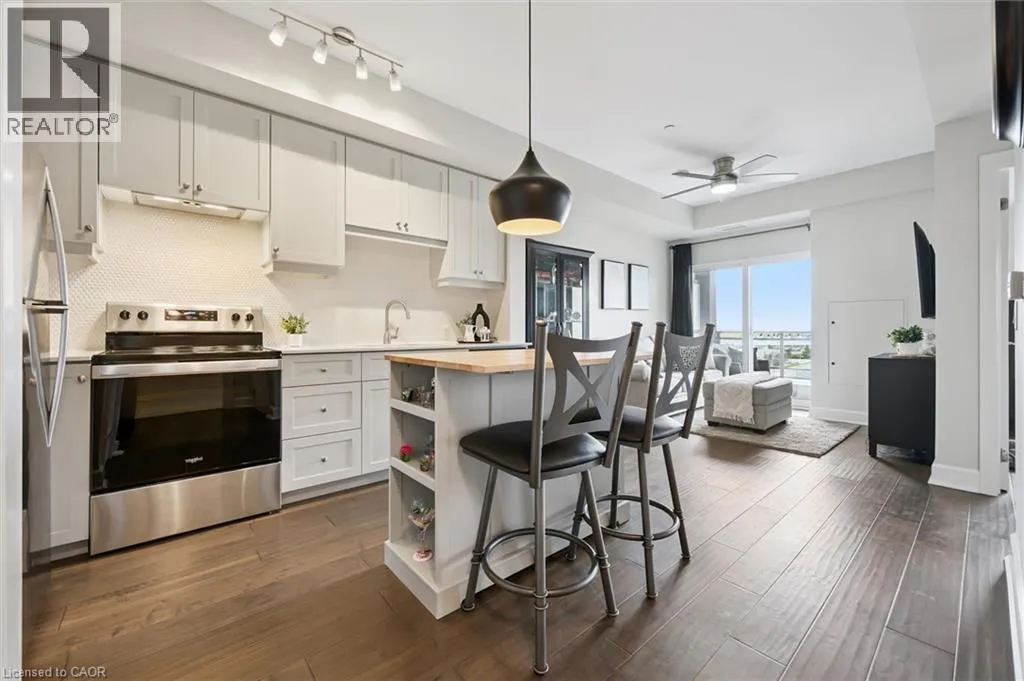 Northfield and Bridge, 255 is closest building to Brown's social house. Welcome to the top floor! You'll fall in love with this sleek and luxurious owner-occupied 1 bedroom, 1 bathroom unit, boasting a ton of upgrades and an unobstructed panoramic view from the top floor! Open concept and cozy eat in kitchen and living room create your own perfect oasis. The primary bedroom features a walk-in with custom built-in wardrobe AND a large picture window with the same amazing view. Spacious 4pc bath with glass shower, modern tile, and stylish matte black fixtures. Upgraded finishes include engineered hardwood, luxury millwork, shaker cabinets, quartz countertops, penny tile backsplash, high end lighting, and much more. Building 255 is far superior to the other Blackstone buildings as it offers free wifi and air conditioning/heating controls from WITHIN the unit. Tenancy includes 1 parking spot conveniently located close to the front door and impressive amenities such as a beautiful party room , a private gym, a co-working space, social second floor terrace, a pet washing station, and secure bike storage. Located close to expressway, LRT, transit, and Conestoga Mall. Book a private showing before itâs gone! (id:27476)