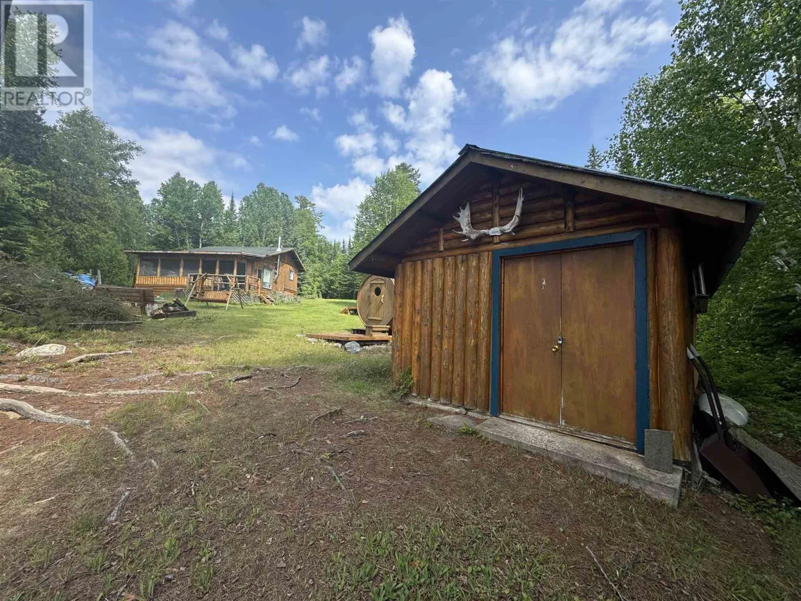 Welcome to your northern escape on the desirable waters of Anjigami Lake, one of the areaâs most sought-after recreational lakes, just a short drive from Wawa, Ontario. This is a drive-in camp on private lease land. Leased through Facts LTD. The property features a fully furnished two-bedroom log cabin, complete with a cozy screened-in porchâperfect for enjoying your morning coffee bug-free or winding down as the sun sets over the lake. A second two-bedroom Bunkie, also fully furnished, offers extra space for family or guests. A spacious 20â x 14â lodge-style garage provides room for all your gear, while a barrel sauna offers the ultimate relaxation after a day on the water. Step out to your private dock for easy lake access, fishing, or just taking in the peace and quiet. (id:27476)