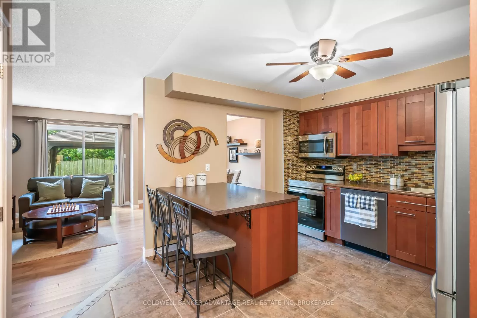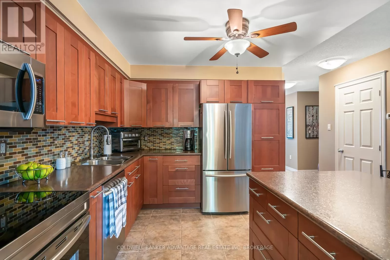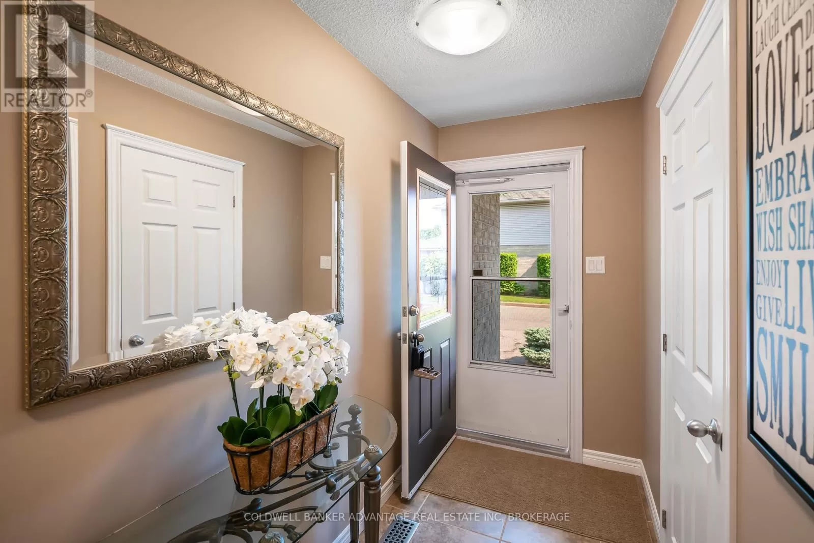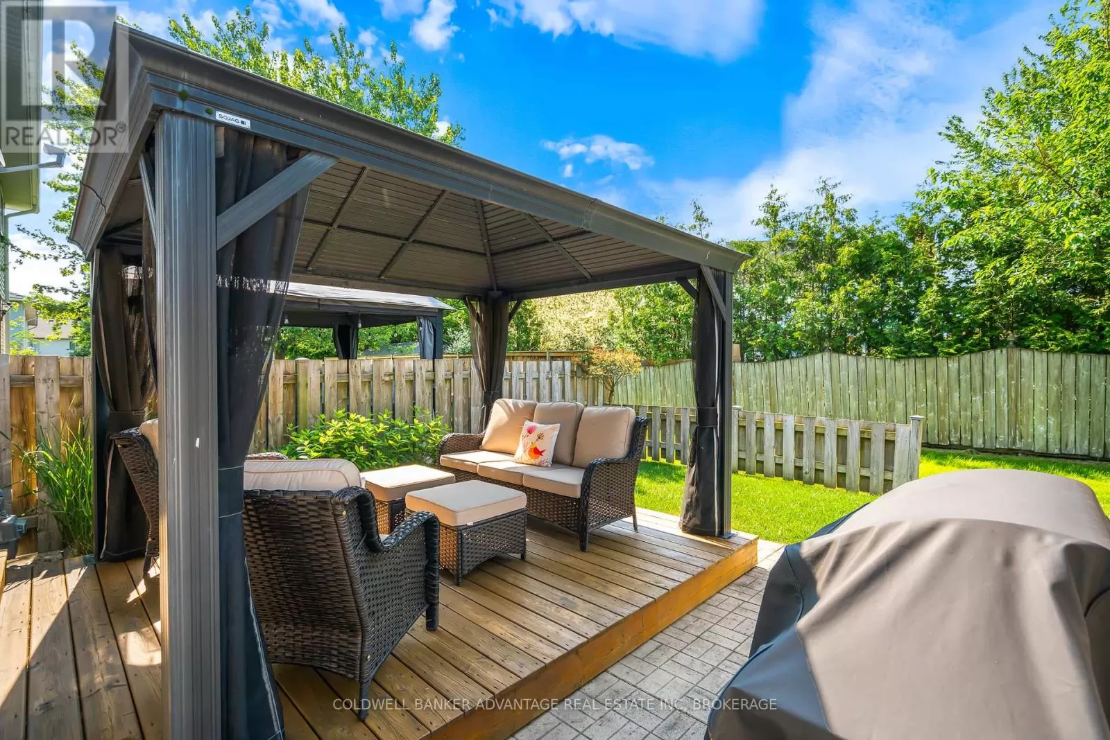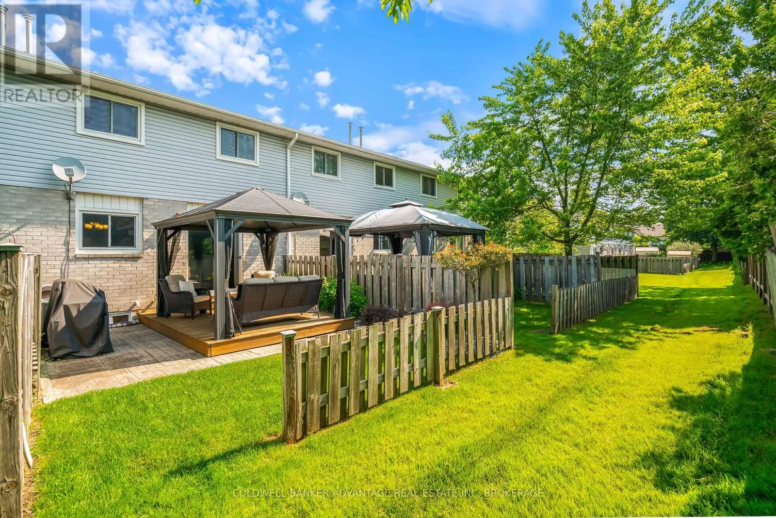 Cross Streets: Woodlawn between First Ave & Niagara St. ** Directions: Woodlawn between First & Niagara. Beautifully Renovated 3-Bedroom Townhouse in Prime North Welland Location. Welcome to this impeccably kept and meticulously maintained 1,400 sq. ft. 3-bedroom, 3-bath townhouse with attached garage, perfectly situated in a quiet, 24-unit condo community. This truely spotless, move-in ready home has been extensively renovated with over $75,000 in quality upgrades over the last few years, including a modern kitchen with island & Stainless Steel appliances, custom backsplash, complemented by maple hardwood floors and fresh paint. Every detail has been thoughtfully updated, including all interior doors and trim, and 3 stylish new bathrooms. The recently completed and professionally finished lower level offers a spacious rec-room with cozy gas fireplace, a brand-new 4-piece bathroom, a laundry room with newer washer & dryer, plus rough-in plumbing for a future bar or kitchenette, ideal for potential in-law or student accommodations. Enjoy outdoor living on your private rear deck with gazebo and gas BBQ line, surrounded by beautifully landscaped grounds, large trees and a privacy wall of mature cedars. This extremely well-managed complex has seen all the major improvements, including new roofs, windows, garage doors, and resurfaced porches, with the entire complex asphalt resurfacing planned next. Low taxes & low Condo fees plus a strong and substantial reserve fund provides added peace of mind. Located on a quiet dead-end street, you're just steps from Niagara College, the YMCA, Seaway Mall, and the best of North Welland's shops and restaurants. Retire from grass cutting & snow shovelling and enjoy a maintenance free, condominium lifestyle! Don't miss your chance to own in this rarely available and highly sought-after community. (id:27476)