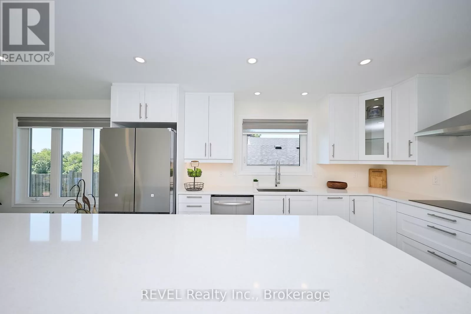 Cross Streets: Prince Charles Drive to Colbeck Drive. ** Directions: WEBER RD TO SOUTHGATE TO HILLSDALE DRIVE TO COLBECK. 5 things you will love about this property that separates it from the rest at this price point! 1. Lot is 235' deep with 75' of frontage onto the Welland River with your own personal dock for your boat, jet ski's, or just to relax and fish off of. 2. House has been totally renovated top to bottom with high end professional finishes throughout including custom kitchen with built in appliances, large island with granite countertop to fit the whole family comfortably. Custom bathrooms with granite countertops, tiled showers and glass surroundings. 3. 2.5 car wide concrete driveway 42' long to park all the family vehicles and more (boat, jet ski's or family trailer) concrete raps around the side of the house leading to walk out from basement and composite deck. 4. Partially covered 21'x12' composite deck off the kitchen with glass side panels to enjoy a clear view of your backyard oasis. 5. Separate walk out entrance form the massive lower level with all above grade windows for in -law capabilities if desired! This home is total turn key with minimal expenses for years to come with everything being updated! Other updates include Epoxy coating on garage floor (2025) Furnace, A/C, Hot Water Tank owned (2022) All appliances (2022) Vinyl flooring, pot lights, California shutters, zebra blinds, and fresh pant throughout (2022) Garage has its own 100 amp panel with 2 separate 220v lines for a welder or EV, roughed in plumbing to add a dog wash or sink for personal use. House runs off its own 200 amp panel.This property is a must see, and looks even better in person you wont be disappointed book your private showing today! (id:27476)