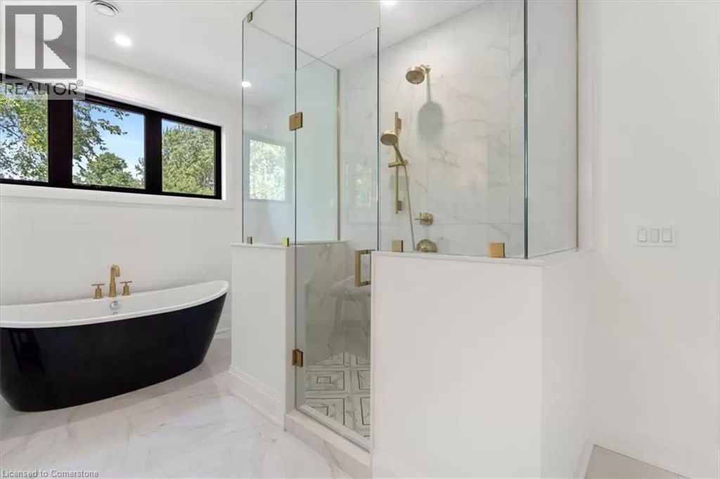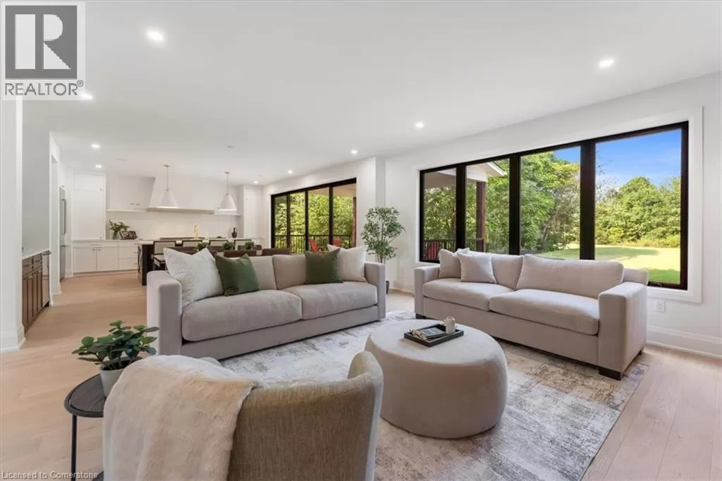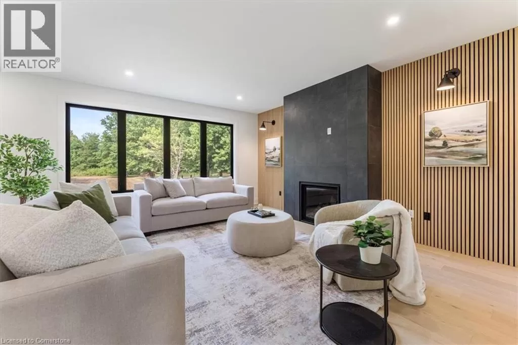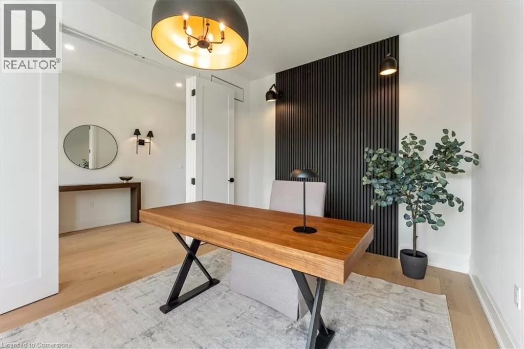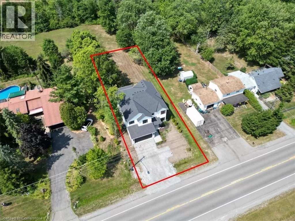 East Main St and South on Doans Ridge Road Experience the pinnacle of modern living at 81 Doans Ridge Road - an interior design gem offering 3,025 sq ft of refined space on a 60' x 200' lot. From the moment you step inside, the open-concept main floor sets the tone with soaring 9' ceilings, rich engineered hardwood, custom white oak wall paneling, in-ceiling speakers, and sun-filled windows. The chef's kitchen is a show stopper with a 48 Thermador gas range, 36 Thermador fridge, 8' island, and walk-in pantry-perfect for hosting. A main-floor office provides the ideal work from home setup. Step onto the 295 sq ft covered deck and soak in tranquil views. Upstairs, two bedrooms each offer private 3 piece ensuites and walk-in closets, while the 650 sq ft primary suite is a true retreat with vaulted ceilings, a fireplace, spa inspired ensuite, and walk-in closet. The basement features over 8' ceilings, a roughed in bath, and a garage to basement stairwell. Located minutes from the Welland canal, trails and major highways, this home delivers luxury, lifestyle, and location in one extraordinary package. (id:27476)