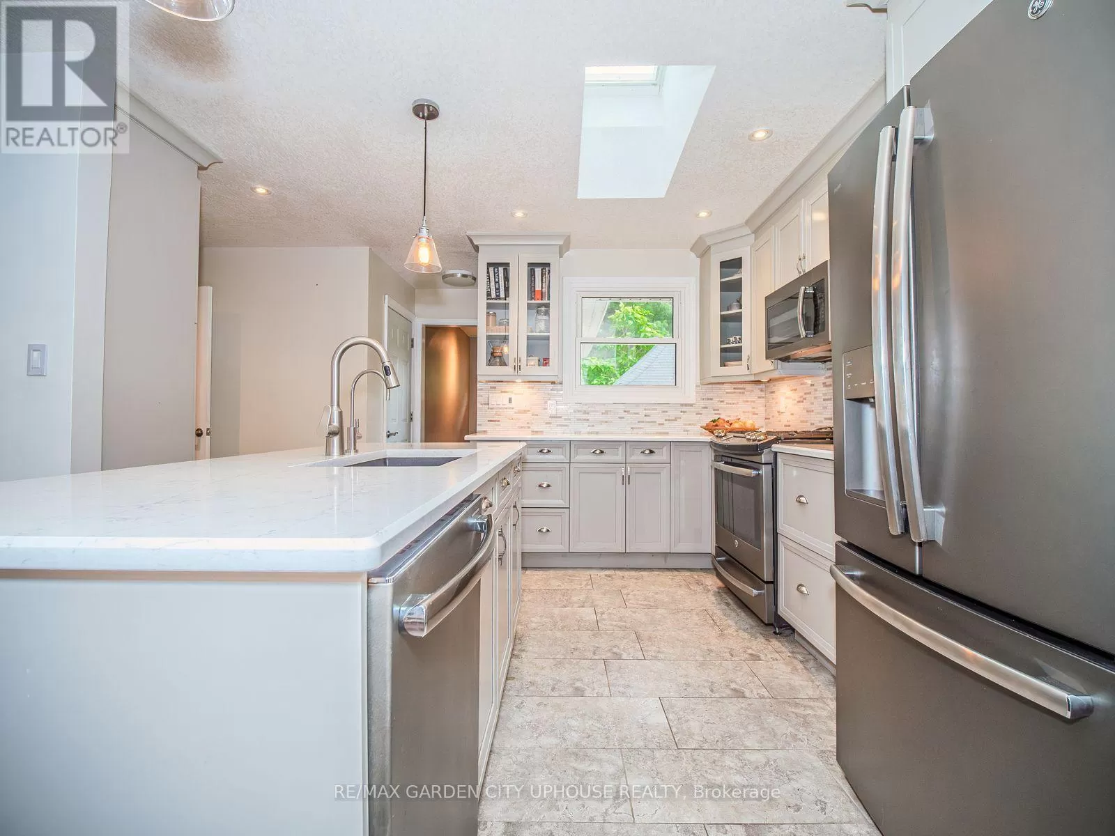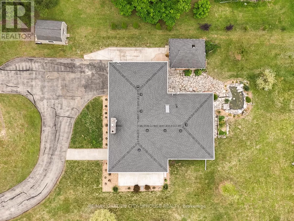 Cross Streets: SCHISLER AND DARBY. ** Directions: EAST MAIN STREET TO DARBY. Welcome to 373 Darby Road, a charming 2+1 bedroom bungalow set on 3 acres of peaceful land, perfect for a quiet country lifestyle. Fully renovated in 2017, this home is conveniently located near all of life's conveniences just a short drive away, including the new hospital. The property features a large circular driveway and a welcoming concrete patio, partially covered for relaxing outdoors. Inside, the living room has a gas fireplace with a brick hearth, connecting seamlessly to the dining area and a modern kitchen. The kitchen includes a skylight, quartz countertops, a spacious island, and ample storage. Down the hallway, you'll find a bedroom, a 4-piece bathroom, and a primary suite with a walk-through closet and a 4-piece ensuite featuring a glass shower and heated floors. The main floor also offers a laundry room and direct access to the single-car garage. The basement includes a finished recreation room, a third bedroom, and plenty of flexible space for a home office, gym, or hobby area. Outside, the backyard offers a flagstone patio, a serene pond with a water feature, well-kept gardens, and a wooded landscape. A hot tub sits in a gazebo with a skylight and jalousie windows, ideal for relaxing year-round, with the house just steps away. There's also a second concrete patio, and a firepit area for quiet evenings under the stars. Enjoy unobstructed sunsets all year round. The home is equipped with practical upgrades, including 50-year shingles (2022), a furnace and AC (2018), a 10x12 ft shed (2020), a generator, sump pump, 200-amp electrical service, and new windows and doors (2019). This is a warm, inviting home ready for you to make it your own. (id:27476)