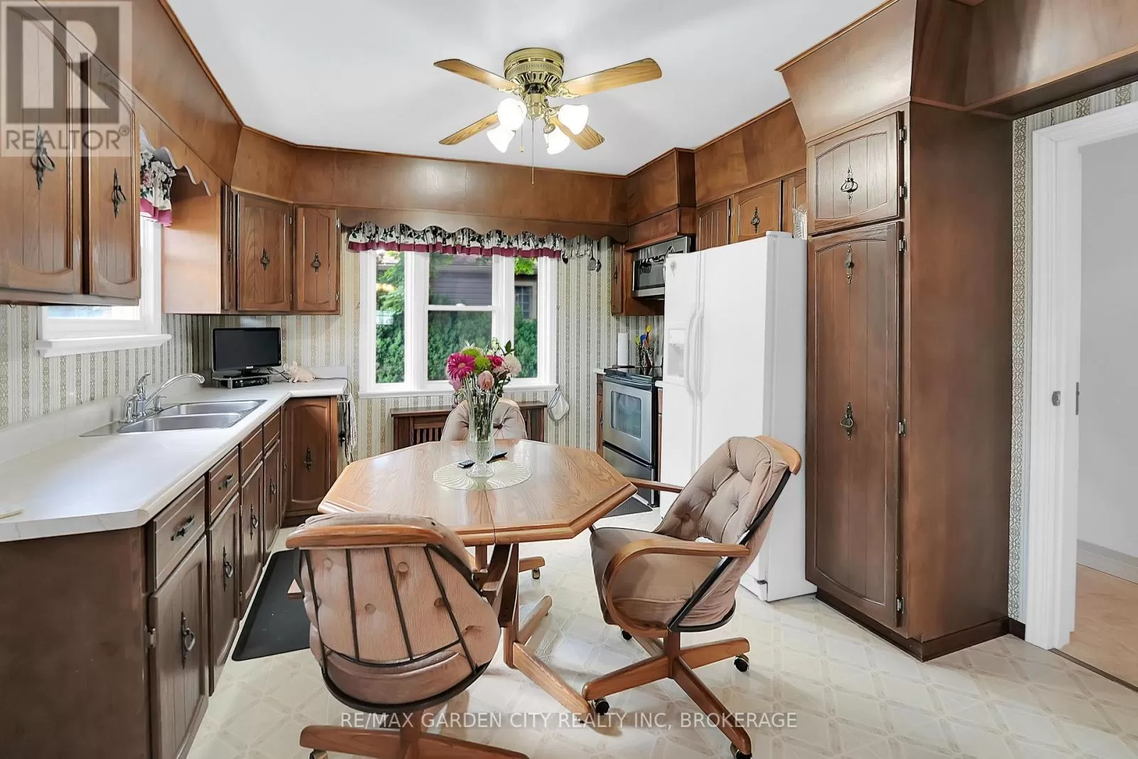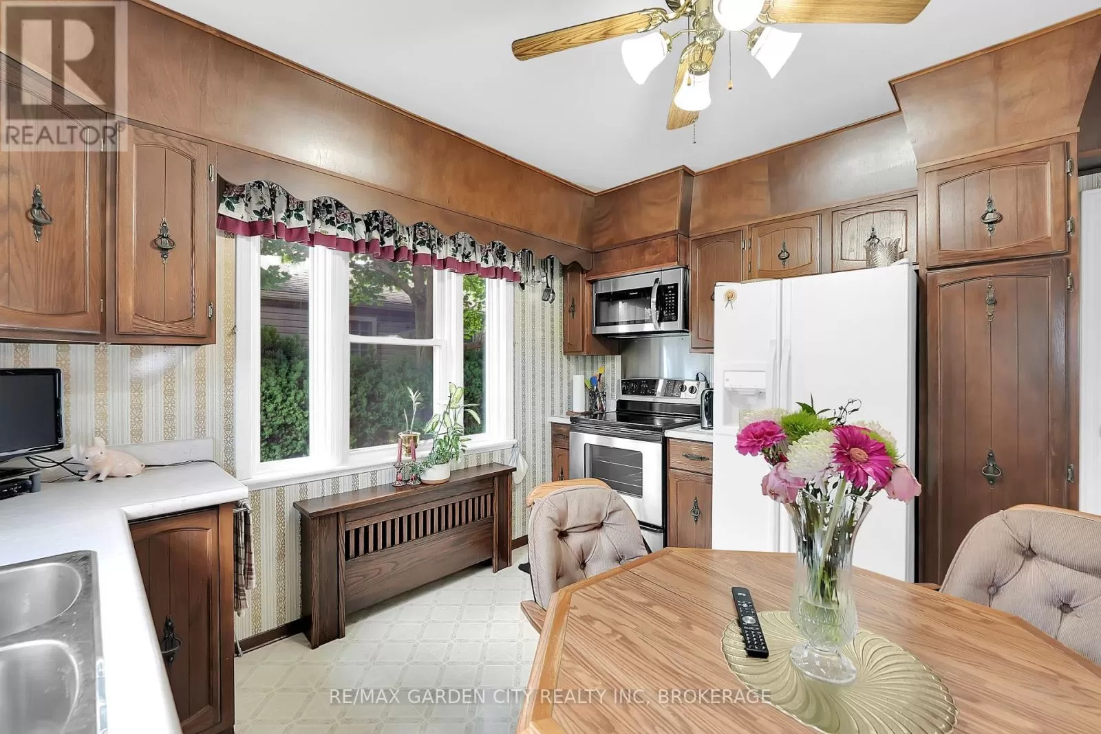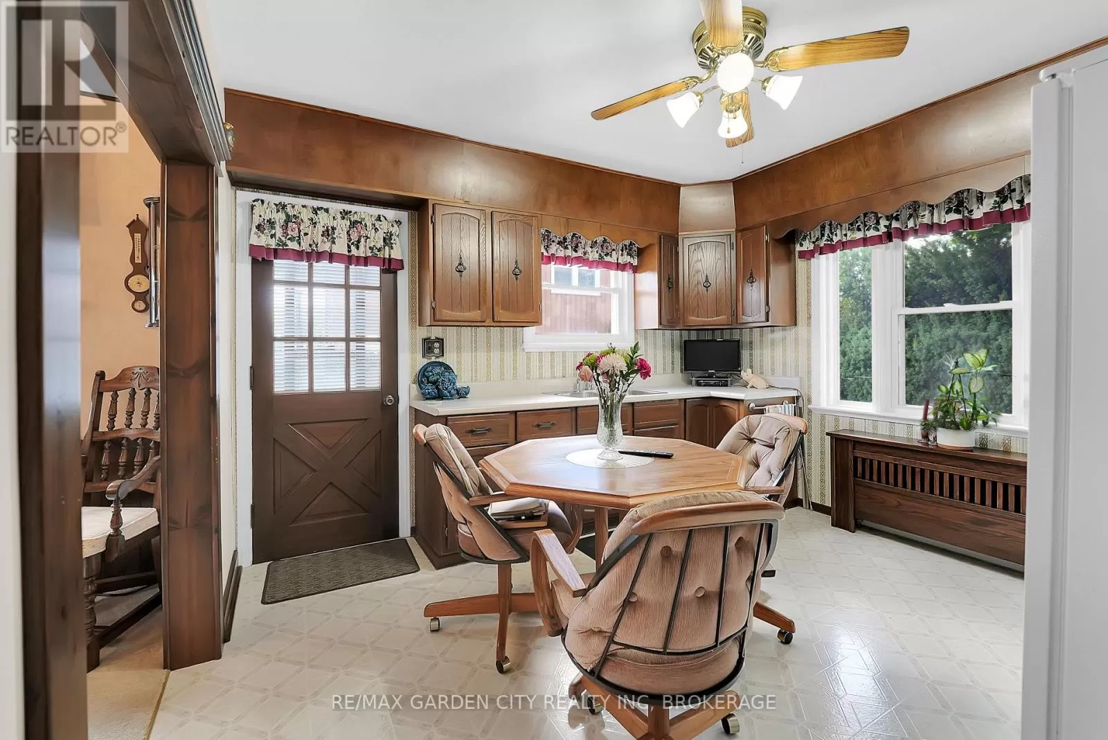 Cross Streets: Hagar and Wallace. ** Directions: East main Street to Wallace Avenue South, head south 2 blocks. First time offered in 61 years! This lovingly maintained natural 4 bedroom, all brick 2 story home offers everything a growing family needs and more. As you pull up you will be drawn to the beautiful curb appeal with mature landscaping, large front porch plus plenty of parking. The 4-season enclosed and heated front porch offers the perfect spot for relaxing any time of day, while a combination sitting area flowing into a well sized living room allows space for more formal get togethers. The bright kitchen offers plenty of cupboard space with bonus walkout to rear yard. Add to this a formal dining room for large gatherings and a 2 piece bath wraps up the main floor. Ascend to the 2nd floor where you will be greeted by 4, yes 4 nicely sized bedrooms with plenty of closet space, plus a 4 piece bath making this the perfect home for a growing family. Downstairs, a lovely family room with gas fireplace in the fully finished basement provides a great space for entertaining. In addition, a large storage area for off season items plus cold cellar are a huge bonus, along with a laundry area with sink, utility room featuring an efficient and space saving on demand boiler/water heater unit. The outside speaks for itself... a nice 2 car block garage with full upstairs is perfect for the handyman or car guy. There may also be the possibility of an auxiliary unit over the garage or ultimate man-cave getaway potential. The roof was replaced in 2018 with all new sheeting and 50 year shingles, while the garage was replaced in 2024 with 50 year shingles as well. Most windows have been replaced over the years. This incredible home is located near Hwy 406 for easy commutes, Manchester park, great schools for French or English/Public or Catholic, close proximity to shopping, public transit and Lemayzzz Meats. There are also hardwood floors under most carpets. Custom quality handmade radiator covers are sure to impress. (id:27476)