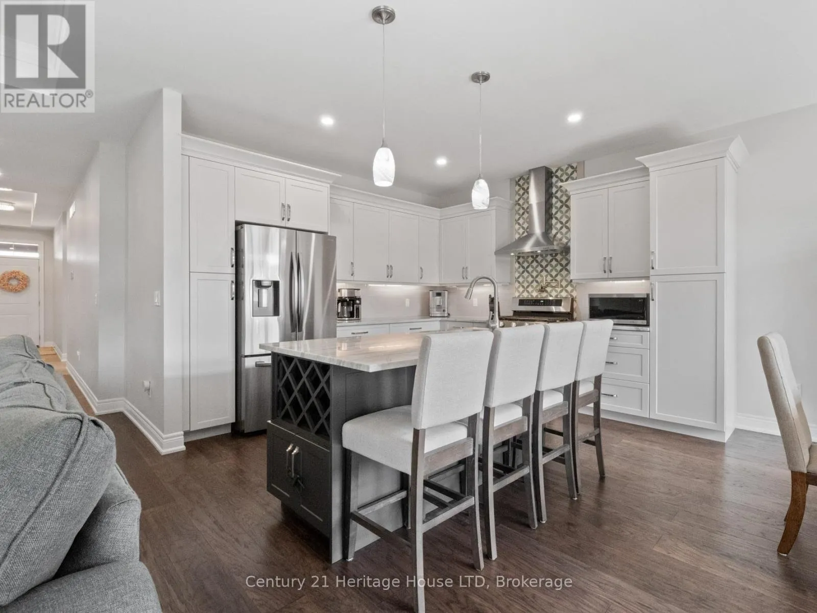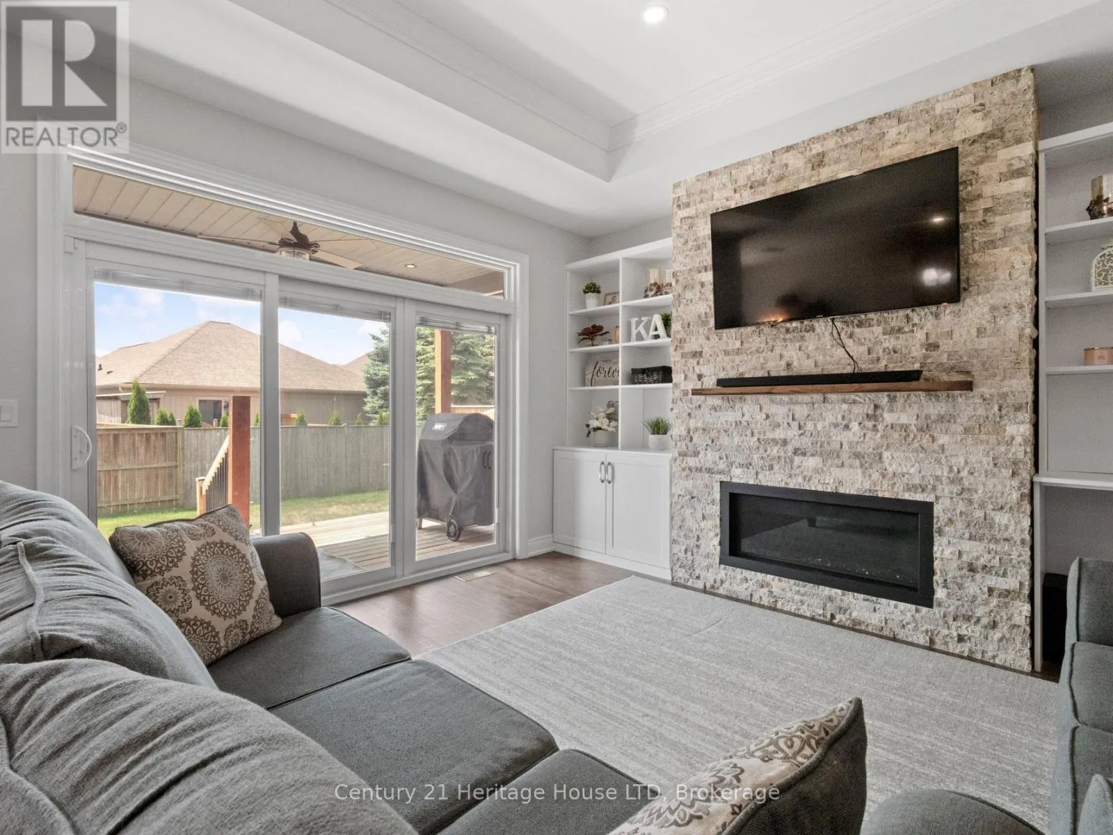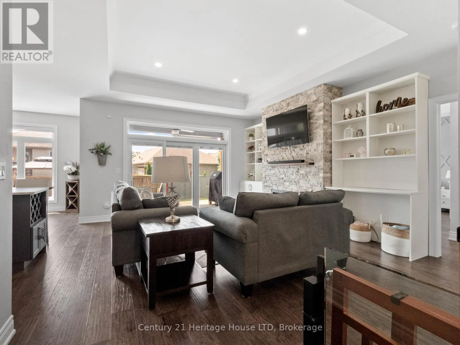 Cross Streets: GLENWOOD. ** Directions: GLENWOOD TO REGATTA. Welcome to 281 Regatta Drive, You wont want to leave after seeing this stunning, one-of-a-kind brick bungalow. This five-year-old custom-built home was thoughtfully designed with both quality and aesthetics in mind. Located near the recreational canal and rowing club, parks, and splash pads, this growing area is ideal for young families looking to settle into a vibrant community. This home has been fully upgraded, inside and out. From its striking design and curated colour palette to the eye-catching timber accents, dark glass-paneled garage doors, covered front porch, and bold orange front door, its like something out of a magazine. The property features a fully fenced yard, oversized double garage, double driveway, and a newly installed stamped concrete walkway and patio. Inside, you'll find a grand entrance with 9-foot ceilings throughout, and impressive 10-foot tray ceilings in the living room, primary bedroom, and foyer. Additional highlights include engineered hardwood floors, a glass-panel staircase, and built-in shelving flanking a gas fireplace set against a beautiful stone wall. The kitchen is a chefs dream, featuring elegant cabinetry, quartz countertops, a large island with seating, and a convenient pot-filler faucet above the stove. The exceptional primary bedroom includes a wood-accent wall, a spacious walk-in closet, and a luxurious 4-piece ensuite with quartz-topped vanity. Main floor laundry is complete with built-in cupboards and a bench. A security system is also available for your peace of mind. The fully finished, bright lower level features two additional bedrooms, an office, and a spacious rec room with a second gas fireplace and bar area. The lower-level bathroom feels like a spa, with a 5-piece layout including a designer soaker tub, jetted shower, double-sink vanity, heated floors and separate toilet room. This truly is a one-of-a-kind home. Exciting new proposed mixed commercial development , Schools, community center , slated for area (id:27476)
