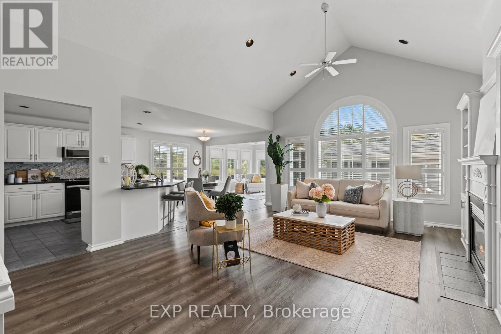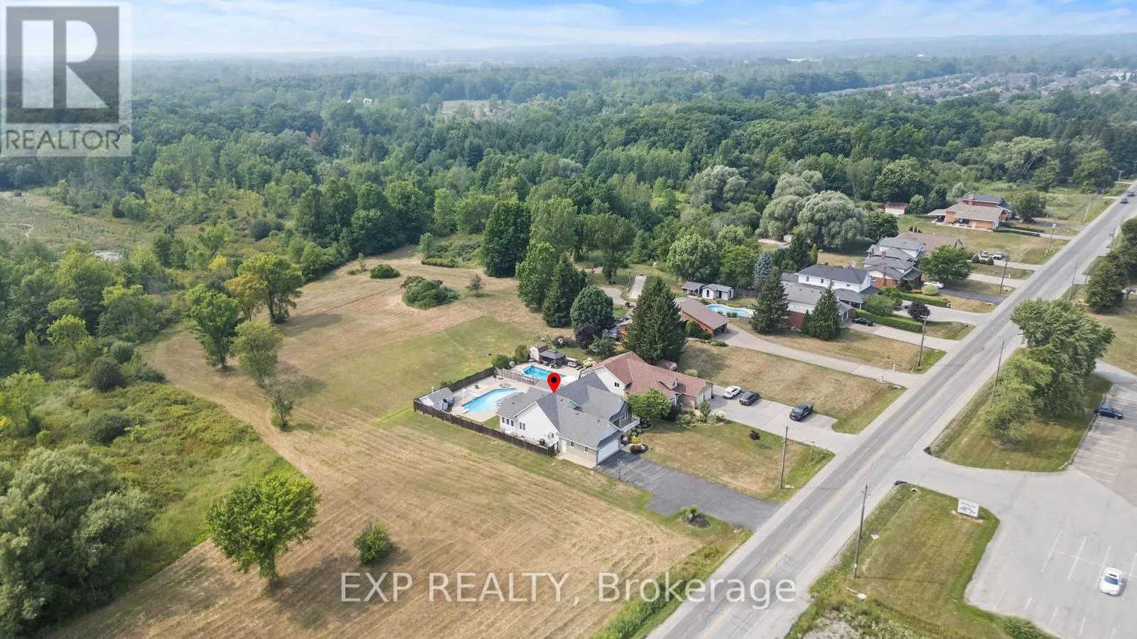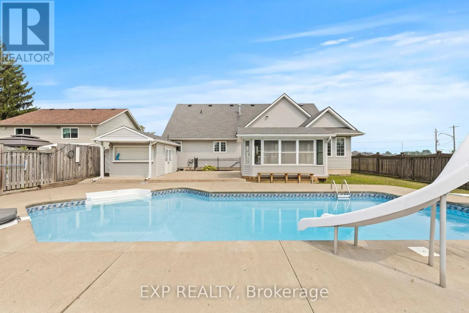 Cross Streets: WEBBER RD. ** Directions: On West side of South Pelham between Fitch & Webber. SPACIOUS BUNGALOW ON LARGE LANDSCAPED LOT WITH BACKYARD OASIS AND IN-LAW SUITE Situated on sought-after South Pelham Road, this beautifully maintained home offers over 2000 sq ft on the main floor plus a fully finished lower level, set on a wide 68 x 190 ft lot with mature landscaping, a double garage, and a long double driveway with parking for multiple vehicles. Inside, you're welcomed by bright, open spaces filled with natural light from oversized windows and a great room with a peaked ceiling, pot lights, custom built-in shelving, and a cozy fireplace, flowing seamlessly into the dining area and kitchen with abundant cabinetry and quality finishes. A versatile sunlit sitting room with walls of windows and patio doors provides the perfect spot to relax and leads directly to the backyard. The main floor also offers a convenient laundry room with extra storage, a large primary suite with walk-in closet and four-piece ensuite with soaker tub and glass shower, plus three additional bedrooms and another full bathroom. The lower level, ideal as an in-law suite, features its own kitchen, spacious rec room, built-in cabinetry and counters for an office or study area, two more bedrooms, a three-piece bath, and plenty of storage. Outside is a true entertainers paradise with an inground pool, concrete patio, deck off the kitchen, and three separate outbuildings including a screened pavilion perfect for bug-free summer dining, a freestanding bar and wet-bar space with bathroom for poolside entertaining, and an additional storage shed. A rare opportunity to enjoy a move-in ready bungalow that combines functional family living with an incredible resort-style backyard in a convenient location close to schools, parks, and every amenity. (id:27476)