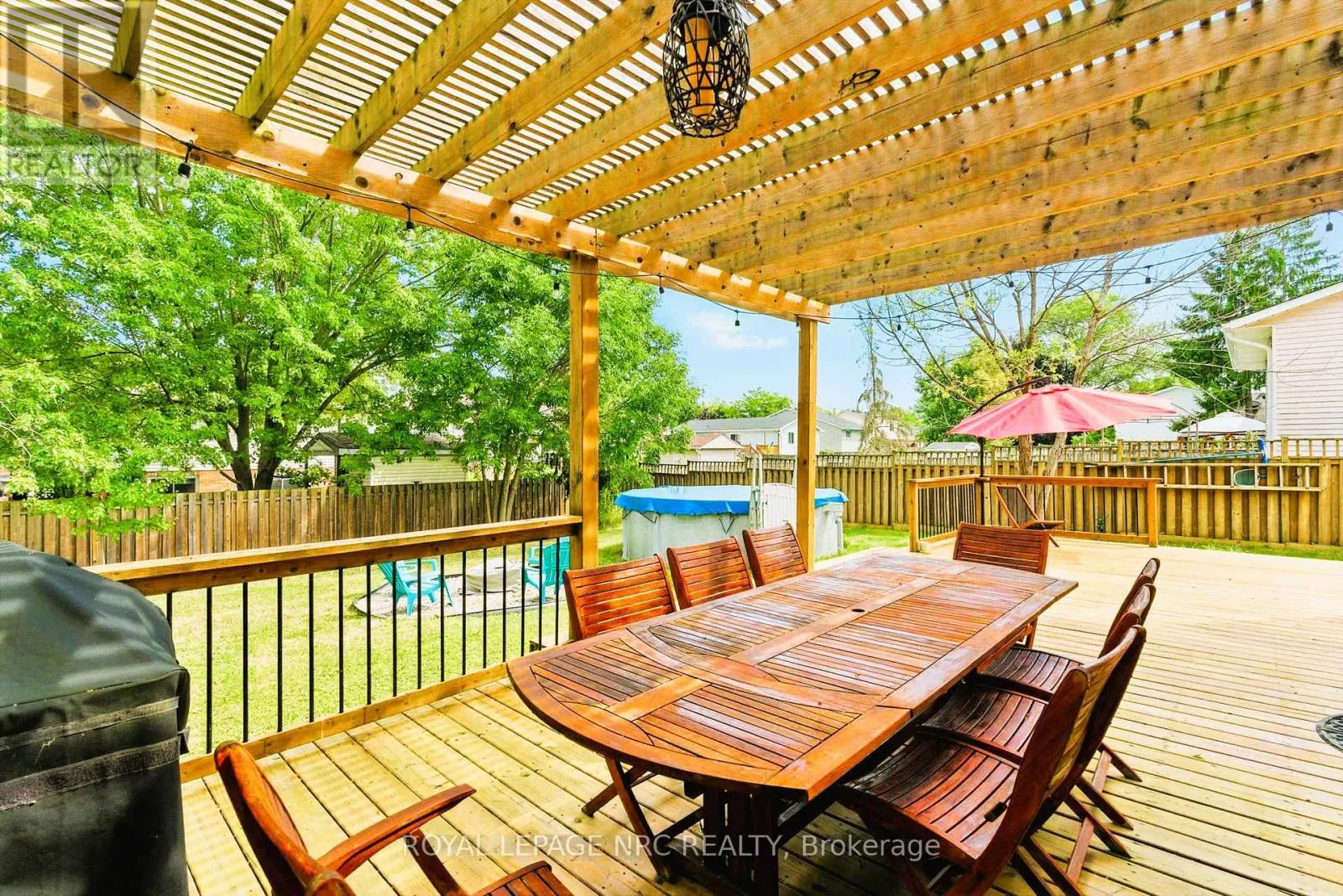 Niagara St. to Aquaduct St. turn on Hilda left on Gadsby Beautifully Updated 2-Storey Home in a Prime Location! This stylish and well-maintained home has been tastefully renovated and lovingly cared for, offering over 2,300 sq. ft. of living space a perfect blend of comfort, function, and charm. Ideally situated near shopping, restaurants, top rated schools, the scenic Welland Canal trails for biking and water sports, plus quick access to Hwy 406. From the moment you arrive, you'll be impressed by the concrete driveway with parking for up to 6 vehicles, matching walkways to both the front entrance and backyard, and the attractive garage door on the attached 2-car garage with opener. Inside, the open-concept kitchen features stone countertops, abundant cabinetry, a bay window, and built-in appliances, connecting seamlessly to the dining and living spaces perfect for entertaining. The main floor family room is a true standout with its full brick feature wall and wood burning fireplace, plus sliding doors leading to an expansive deck with built-in pergola. A convenient 2-piece bath and laundry closet complete the main level. Upstairs, you'll find 3 generously sized bedrooms, including a primary suite with private 3-piece ensuite with a full-sized shower, plus a 4-piece family bath. The finished lower level adds even more living space with a cozy family room complete with built-ins, a home theatre speaker system, and an electric fireplace. An open area offers flexibility for a games room, workout space, or hobby area, along with a 2-piece bath and a versatile nook perfect for kids or a home office. Additional highlights include: storage shed, fire pit area, huge deck with pergola, gas heaters, outdoor dining table and chairs (included), and an above ground pool, all set within a private backyard surrounded by mature trees. Don't miss this turnkey home offering space, updates, and a location you'll love! (id:27476)