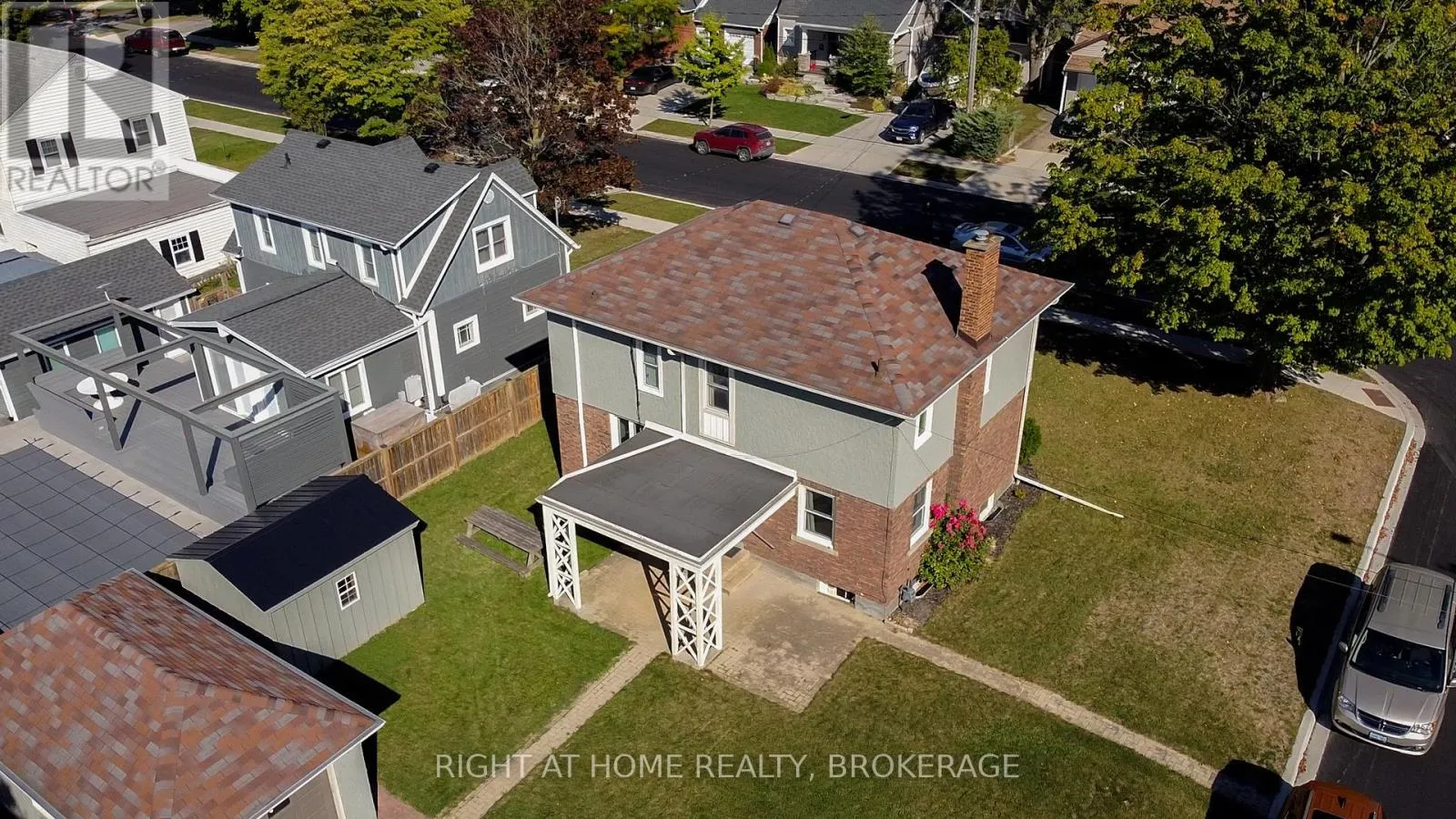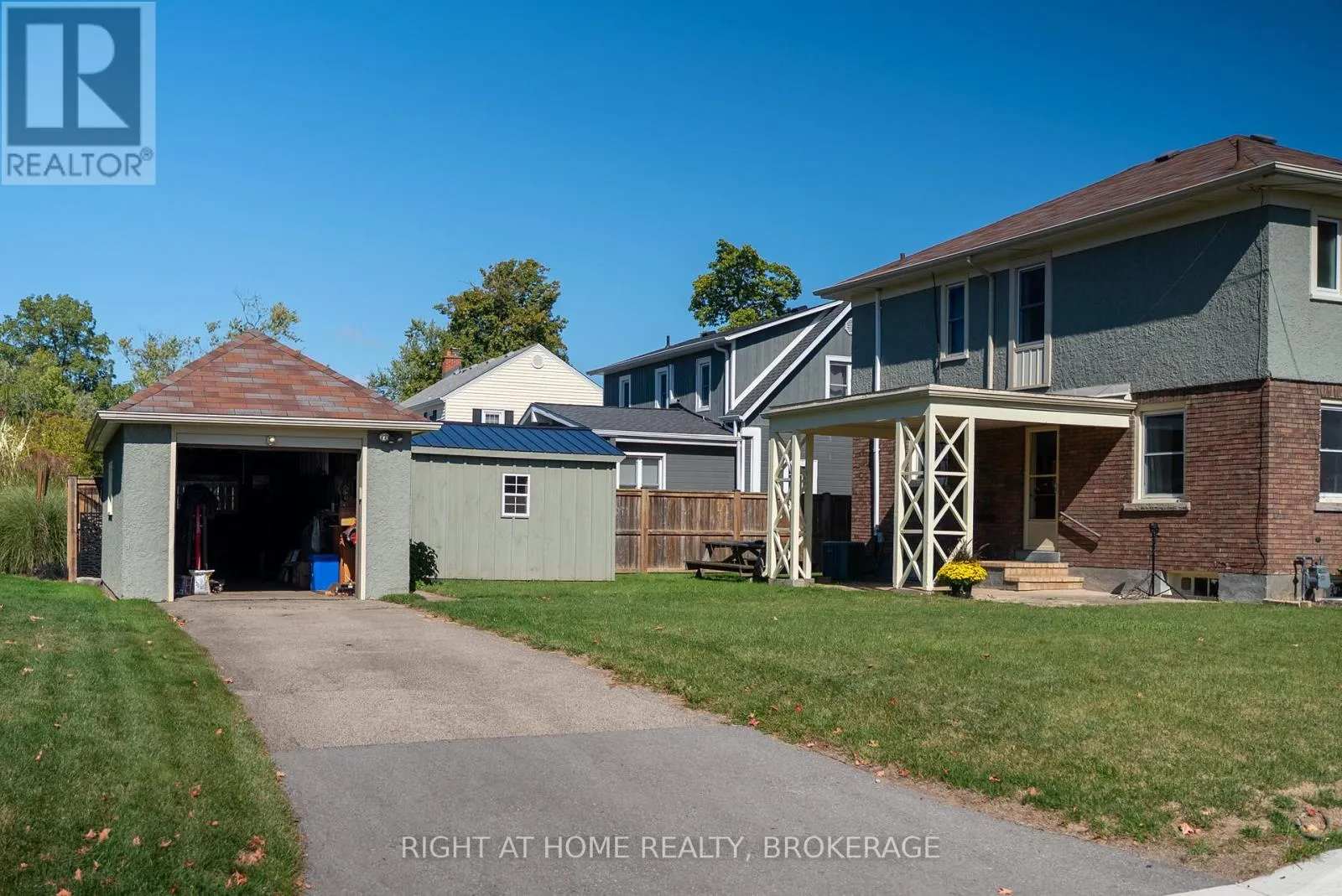 Cross Streets: Thorold Road and Niagara Street. ** Directions: From Niagara Street, turn West on Thorold Road. Turn South onto Edgar Street. House is approximately .5 km. Home is on the Right. Welcome to this beautifully maintained two-story home that perfectly balances timeless charm with modern comfort all in one of Welland's most desirable neighborhoods. Step through the front door into a spacious, sunlit foyer, where refinished herringbone hardwood floors, Art Deco trim, and a classic center-hall staircase set a tone of warmth and elegance. The bright living room features windows on three sides, filling the space with natural light, while the formal dining room with stained glass details is ideal for family dinners and entertaining. At the back of the home, the brand-new kitchen (2024) impresses with light gray cabinetry, white subway tile, and a large pantry all designed for todays lifestyle. Upstairs, you'll find three inviting bedrooms, including two large rooms that easily accommodate king-sized beds. A vintage four-piece bathroom showcases the homes original yellow-and-black tilework, adding a touch of retro charm. The finished lower level includes a cozy rec room, a two-piece bath, and a utility/laundry area, offering flexible space for relaxation or hobbies. Outside, enjoy a covered front porch perfect for morning coffee, a detached garage, and a new wooden shed (2022) for storage. Just steps away, Chippawa Park offers green space, gardens, sports courts, a splash pad, playgrounds, a lively community hub, the perfect setting for an active, family-friendly lifestyle. Recent Updates: Brand-new kitchen (2024), Upper-level flooring (2023), Updated electrical (2018), Natural gas boiler (2017), Freshly painted inside and out, Detached garage & a new storage shed (2022), This move-in-ready home blends history, comfort, and location a true gem in Chippawa Park. (id:27476)