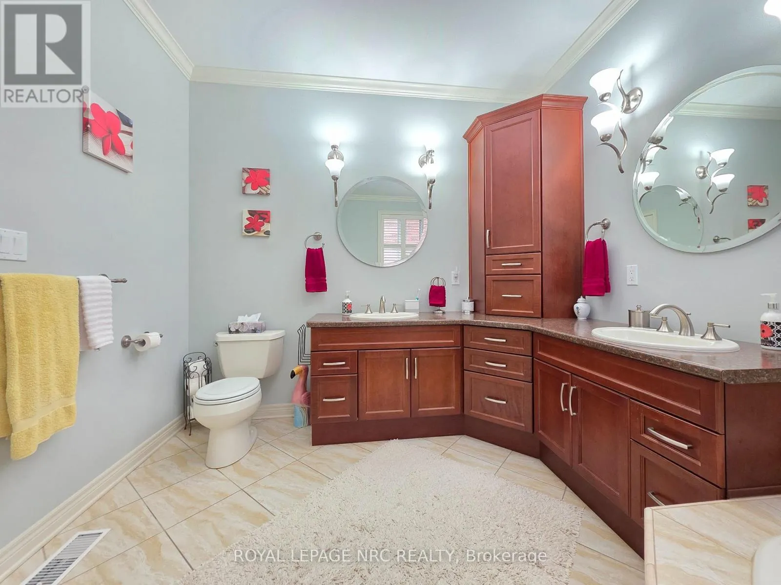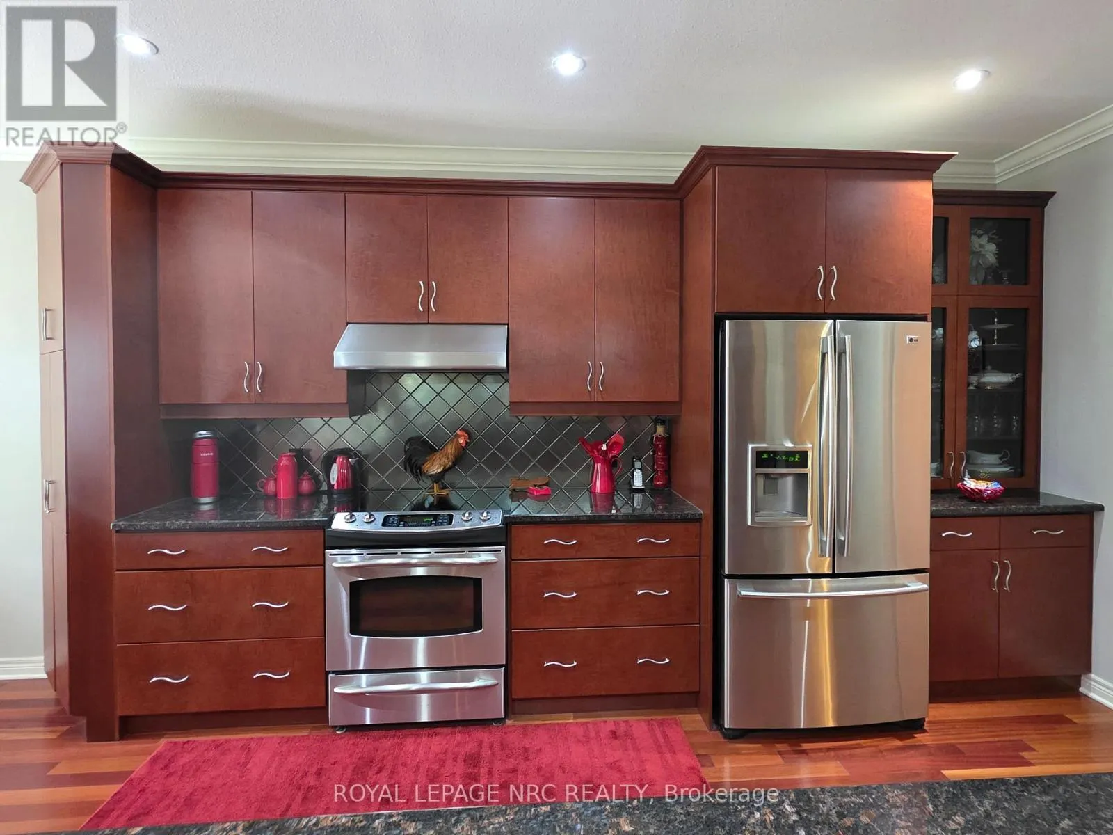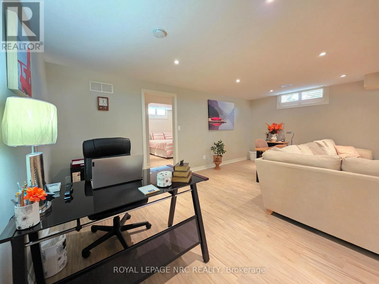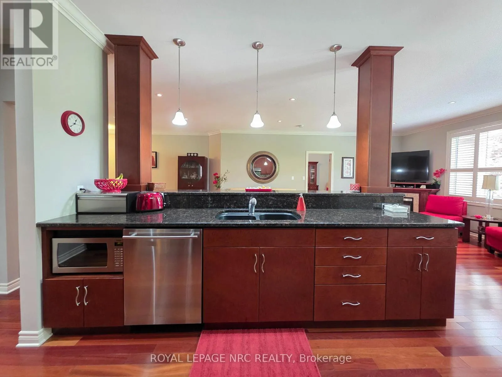 Cross Streets: Perth/Morris. ** Directions: Daimler Parkway, slight left onto Old Course Trail, first right is Morris Trail. ATTRACTIVE, QUALITY-BUILT HOME AT THIS PRICE... UNHEARD OF! Located in prestigious Residences at Hunters Pointe, this sought after location offers close proximity to Hwy 406 for commuting, shopping just a short drive away, and so much more. Looking for one floor living but dont want to give up your square footage - this spacious open-concept bungalow will check all your boxes. Offering 1,750 sq ft on the main floor and approximately 1,200 sq ft of finished living space on the lower level this home is ideal for large family gatherings or dinner parties with friends! From the welcoming foyer through to the walk-out from the dining area to the backyard interlock patio, this home is sure to please the most discerning buyer. Features include: Carpet-free throughout; Gleaming hardwood flooring in principal rooms on the main floor; Massive, private, main-floor primary bedroom suite with 5pc ensuite (double sinks, jetted tub, corner shower) and walk-through his and hers (walk-in) closet; Two additional 4pc baths; Additional main-floor bedroom and an extra bedroom on the lower level; Main-floor laundry room with closet and access to the 2 car garage; Granite counters in the lovely kitchen open to the entire main floor; Nine-foot main floor ceilings with a vaulted ceiling in the primary bedroom; Luxury laminate flooring in the lower-level family-room with a flex-space; New Shingles in 2021; New Furnace in 2016; New Central A/C in 2024. Don't want the hassle of mowing the grass or clearing snow? A low monthly fee of $262 covers it all, PLUS gives you access to all that the Hunter's Pointe Community Centre has to offer-enjoy the saltwater indoor pool, hot tub, sauna, library, games room, fitness centre, tennis courts, and more. Be sure to watch the video linked in the listing to Community Centre. SELLER SAYS, "BRING AN OFFER AND GET DECORATING YOUR NEW HOME FOR THE HOLIDAYS TO ENJOY IT WITH FRIENDS AND FAMILY!" (id:27476)