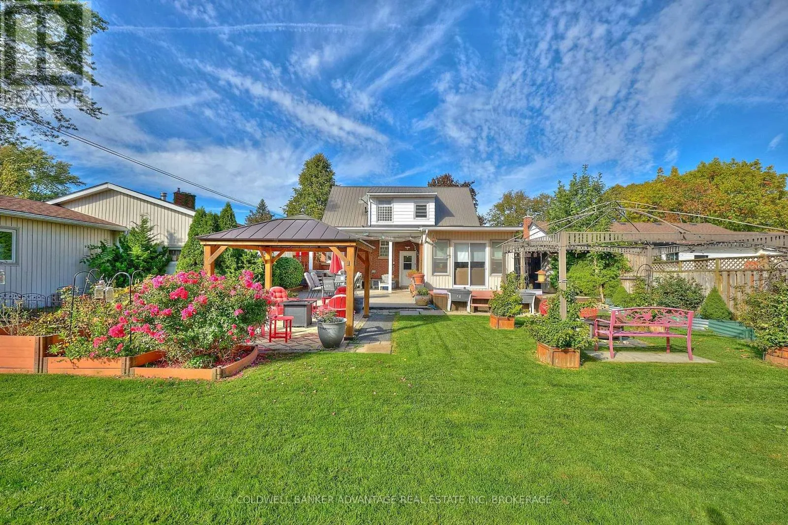 Cross Streets: First ave & Thorold rd. ** Directions: Thorold rd to First ave to Lindel Cres. Welcome to this beautifully maintained 3+1 bedroom, 3-bath character home, offering charm, craftsmanship, and modern convenience throughout. Set on a massive private lot in a prime location, this property is perfect for families who value space, comfort, and functionality. Inside, you'll find a warm and inviting atmosphere filled with character details, including a family room with a gas fireplace, Brazilian Cheer flooring, knotty pine ceilings, a skylight, and clear cedar walls. Each level features a full bathroom and a bedroom, offering flexibility and convenience for families or guests. The primary suite includes a walk-in closet for added comfort. The sunroom features two sets of sliding doors one leading to the outdoor covered porch and the other to the backyard creating a seamless flow between indoor and outdoor living. The home boasts a steel roof, Centennial windows with a lifetime warranty, leaf guard eavestroughs, and upgraded insulation in both the attic and upper level for efficiency and peace of mind. Plumbing upgrades include wider copper pipes, an XL capacity hot water tank, and a water pressure pump. The dream 3-car garage is a true standout fully equipped with front and rear overhead doors, garage door openers, and one bay that's insulated, heated with its own gas furnace, and plumbed with a sink and urinal. Outdoors, enjoy a double asphalt driveway, hot and cold water taps, a trailer electrical hookup, a new covered gazebo, aggregate concrete patio, and beautifully landscaped perennial gardens and fruit trees. With thoughtful updates, quality materials, and exceptional attention to detail, this home is ready for your family to move in and enjoy! Conveniently located just 5 minutes from all amenities, including Centennial High School, Niagara College, Seaway Mall, grocery stores, and quick access to Highway 406. (id:27476)
