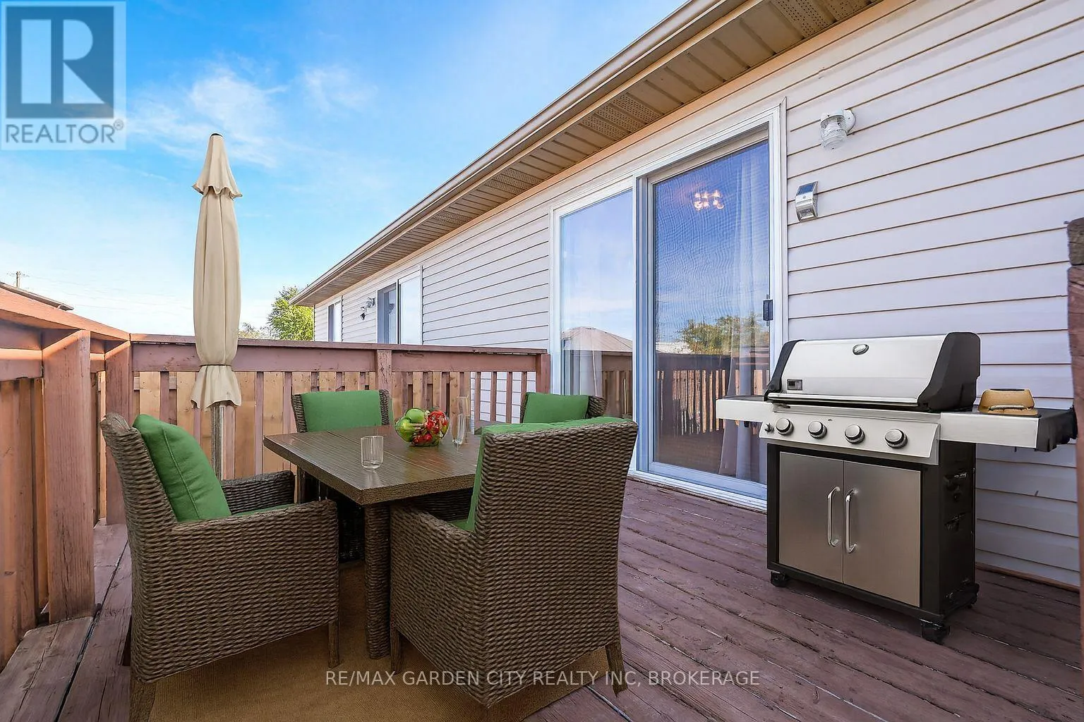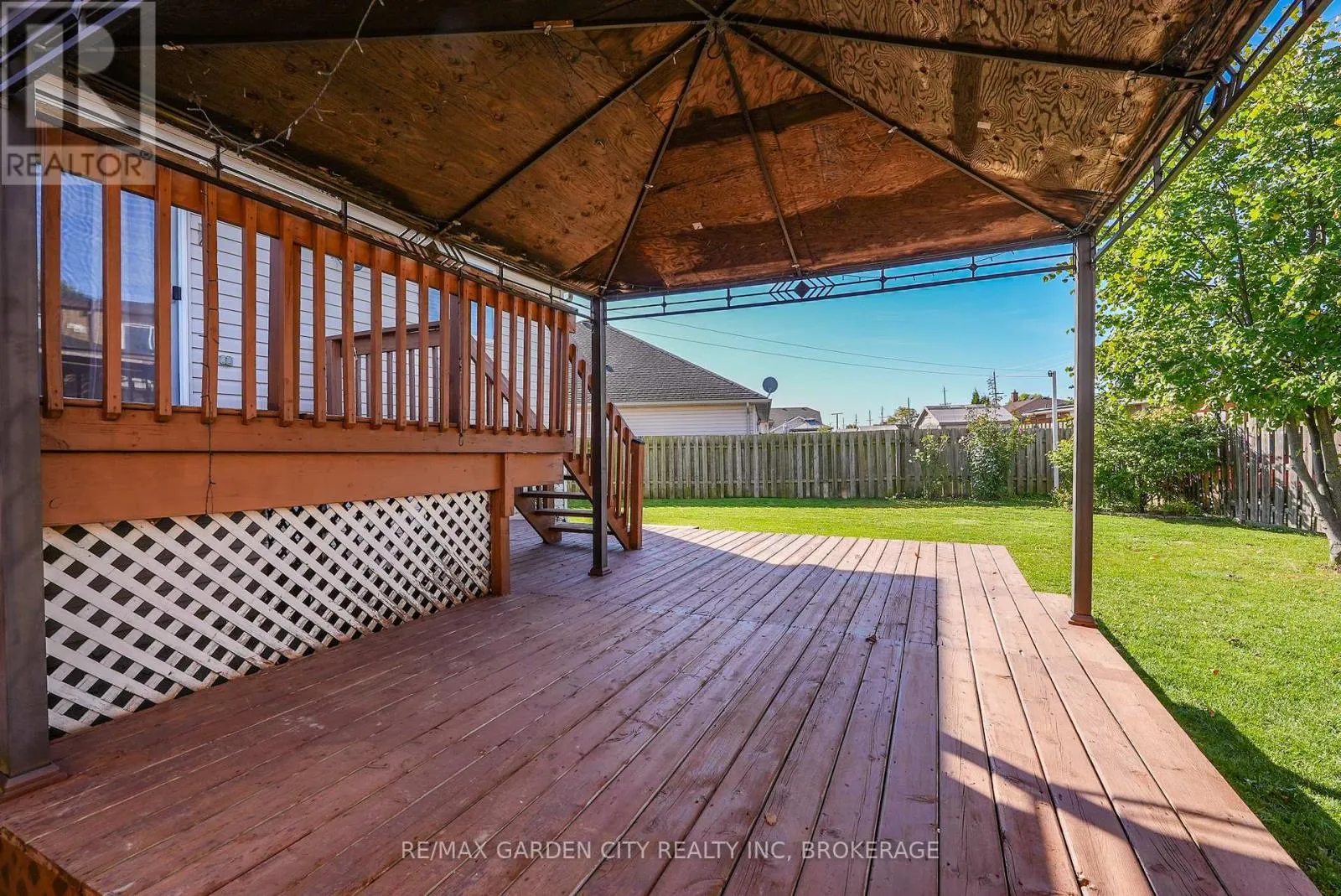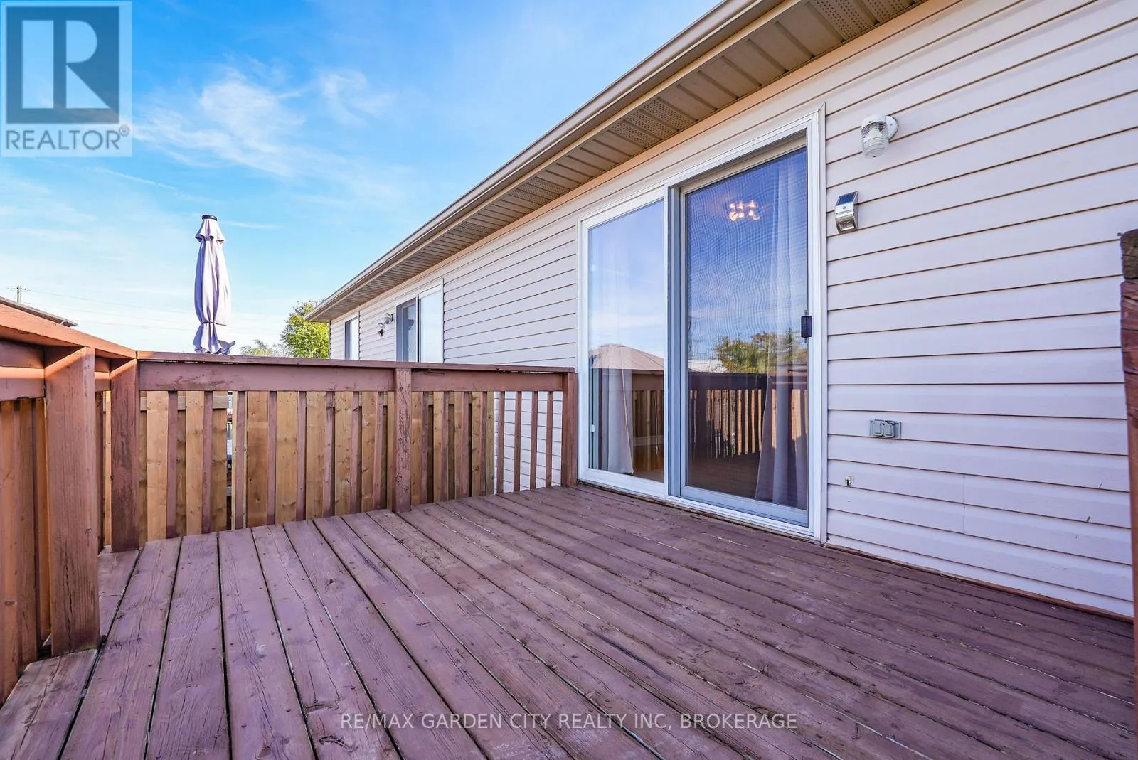 Cross Streets: Wellington and Promenade Richelieu. ** Directions: Main Street to Wellington head South on Wellington to Promenade Richelieu the left on Nathalie. Searching for a move-in condition home located on a court for the kids to play, close to both French and English language schools - plus 406 access in just 1 minute? Or maybe a multi-generation home for the grandparents or older kids that with minor changes, allows the creation of a separate unit? Here it is! This original owner, completely finished raised bungalow semi on a pie shaped lot is absolutely immaculate and so well maintained, you can simply move in! As you approach the peaceful court, notice how well each home is maintained with pride. This home features a concrete driveway for 2 cars plus an attached 1 car garage with door opener, fully fenced yard for the kids or pets and plenty of room for a pool. As you step into this lovely home, take notice of how bright it is with East facing front, side windows to South and rear with westerly light. There are no carpets - the main floor features gleaming hardwood that flows seamlessly throughout, including both bedrooms. The open floorplan features a beautiful living room/dining area separated by a kitchen peninsula which offers the potential of creating a beautiful breakfast bar should you choose to add a new, wider counter top. The large kitchen/dining area includes plenty of storage space for the growing family with a patio door leading to a two tiered deck overlooking the yard. This home features 2 bedrooms, a 4 piece bath and laundry area on the main floor - no stairs to tackle when doing the laundry! The fully finished basement is clean & bright and includes a large family room for get togethers, a well-sized bedroom, 3 piece bath, office and second laundry area in the utility room for in-law suite or rental income possibilities. Extras include: central vacuum & garage door opener, as well as shopping, places of worship, public transit, parks and much more are all a short drive away. Don't miss this one, it is a MUST see! (id:27476)